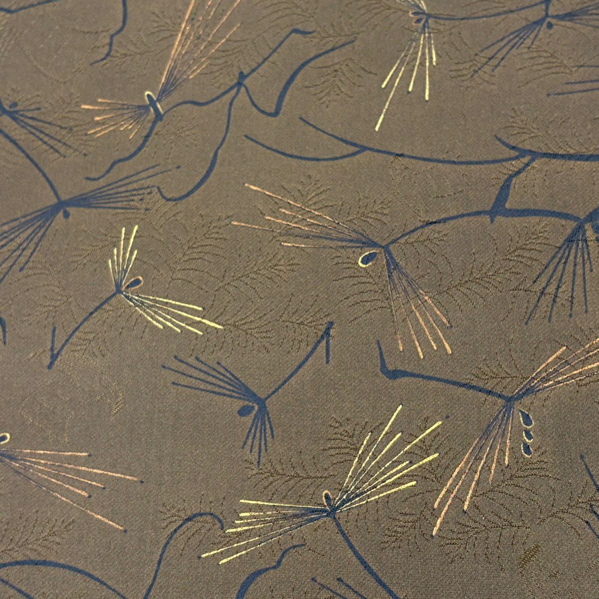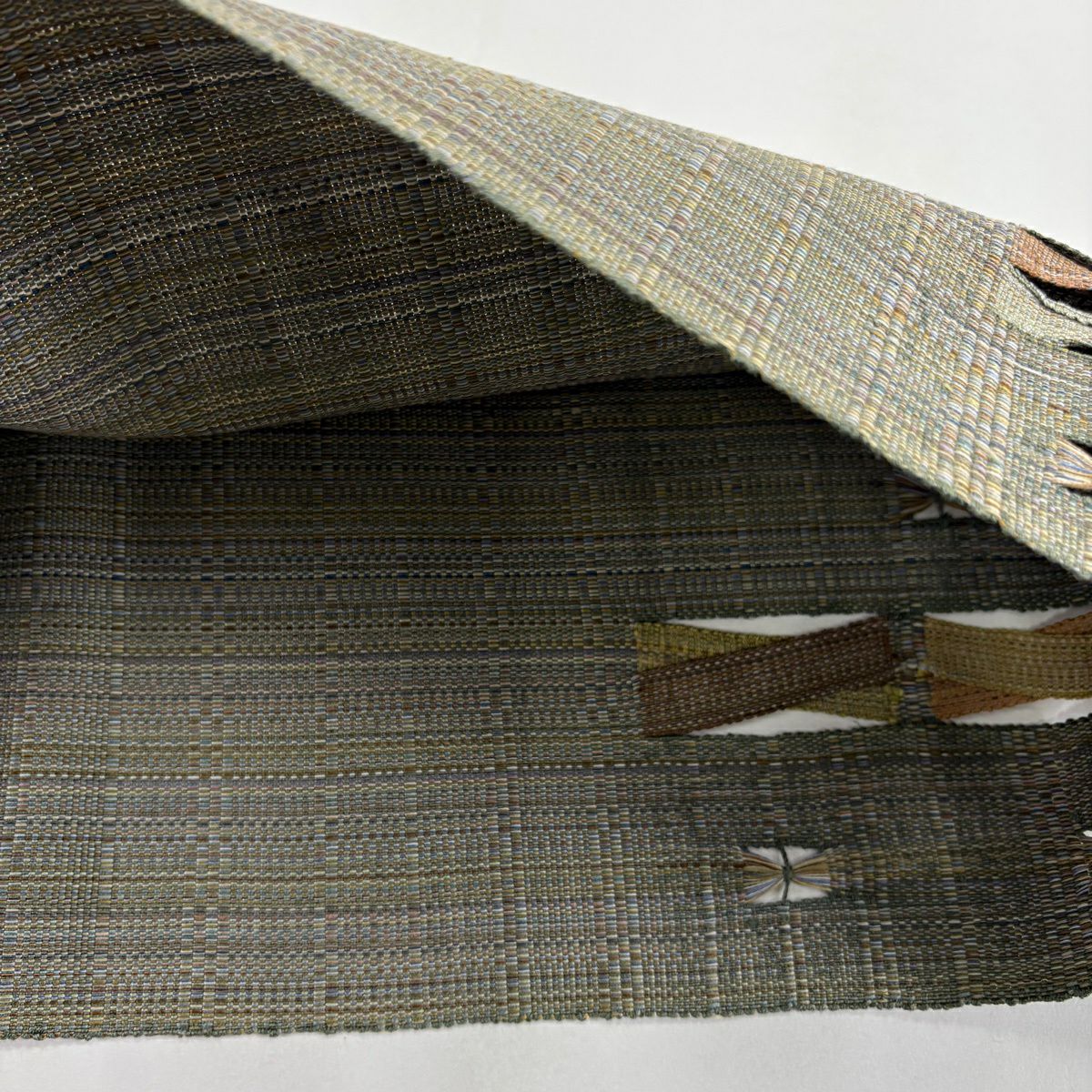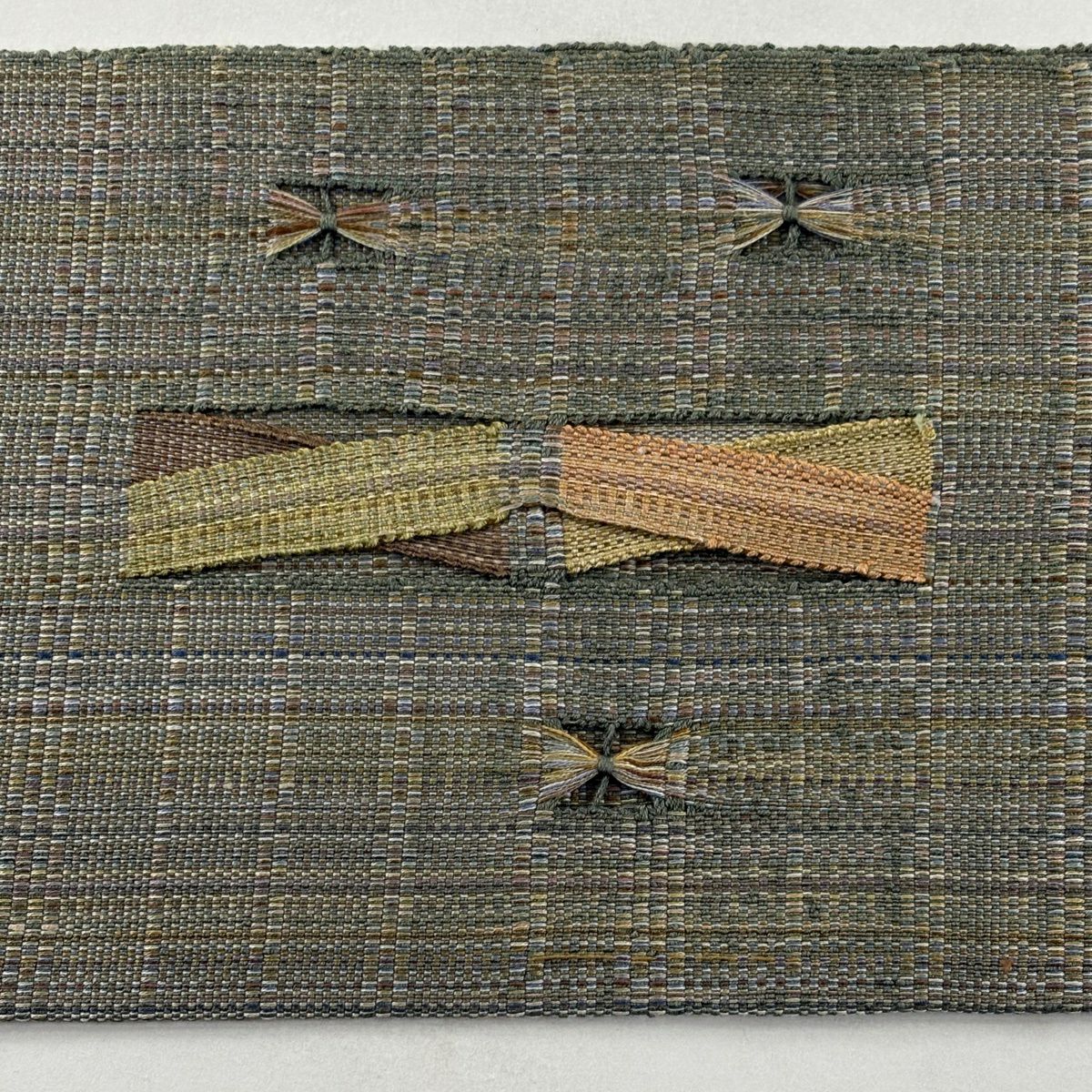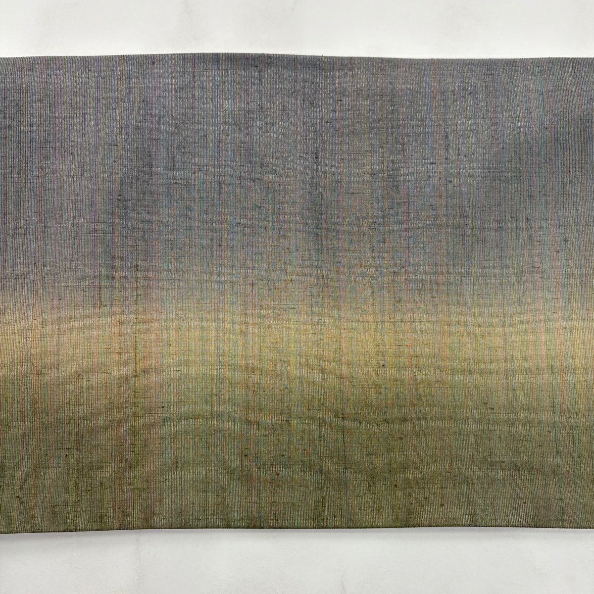 袋帯 秀品 草花 斜格子 金銀糸 箔 青灰色 六通 正絹