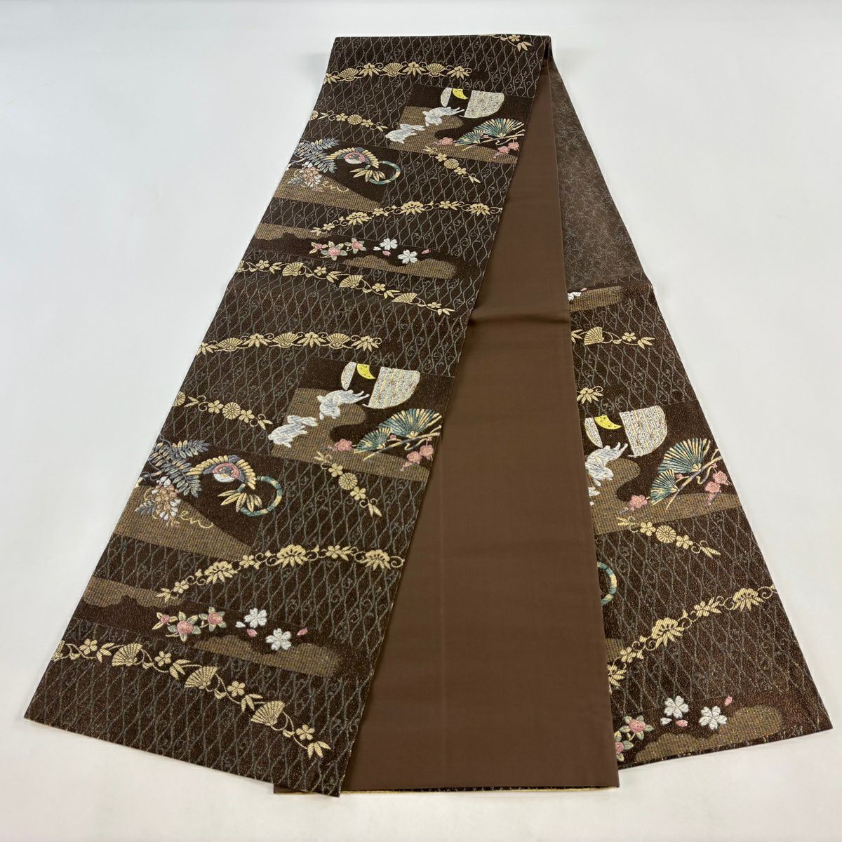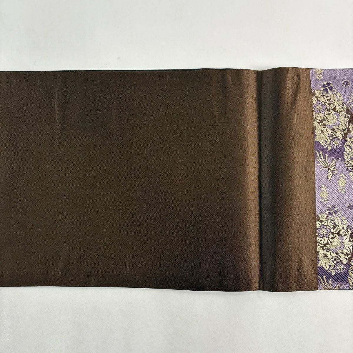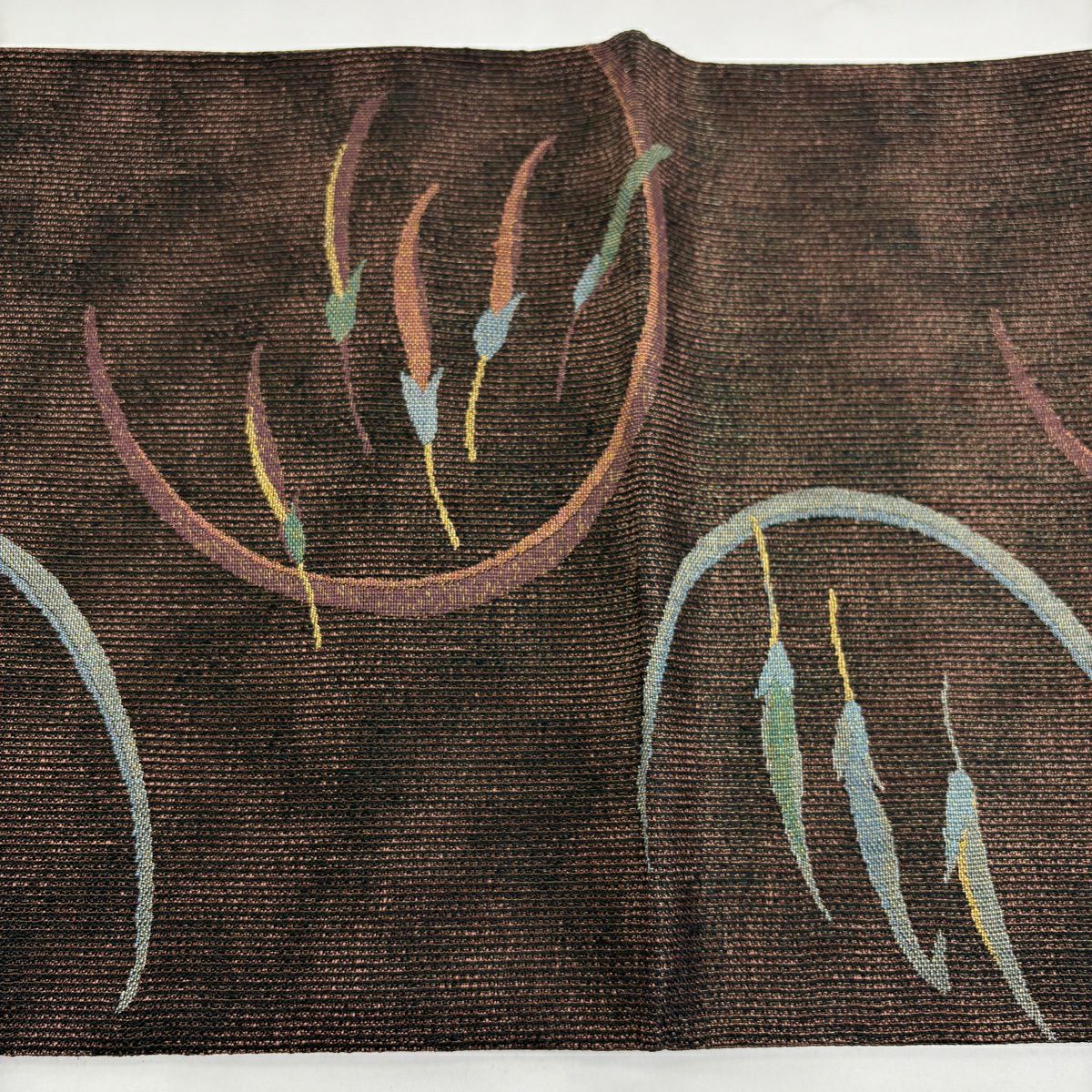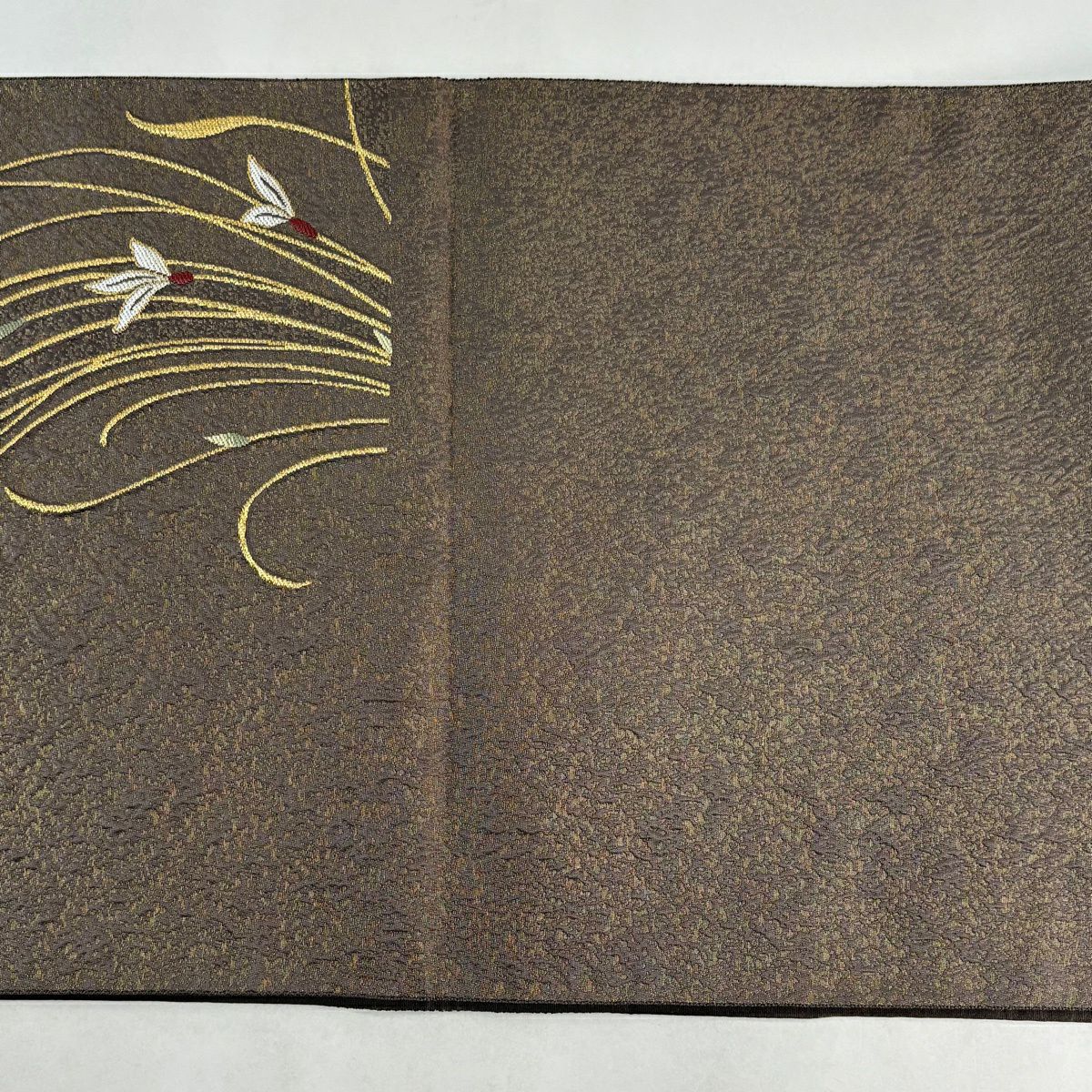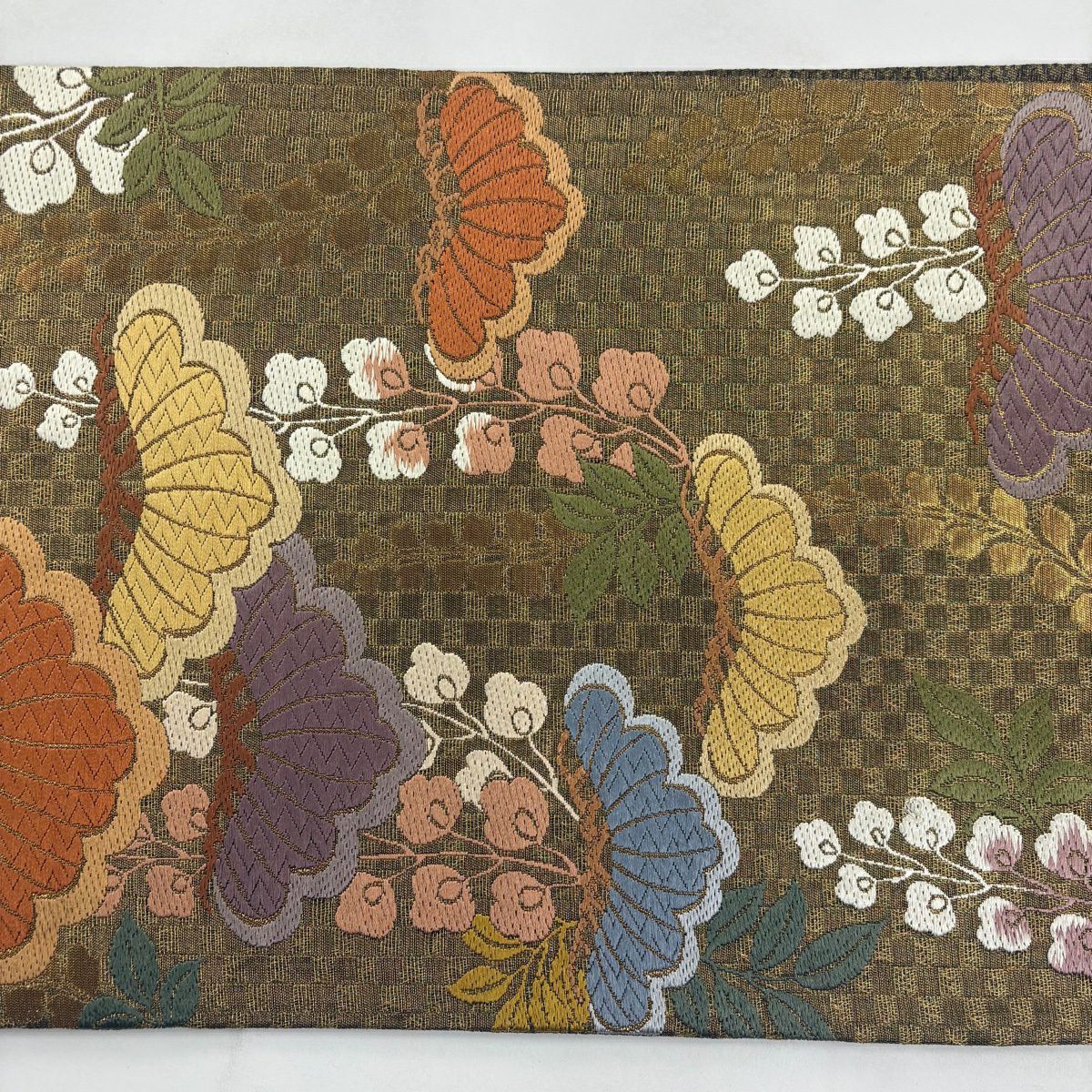 【美品】 袋帯 秀品 花器 草花 金糸 茶色 六通 正絹