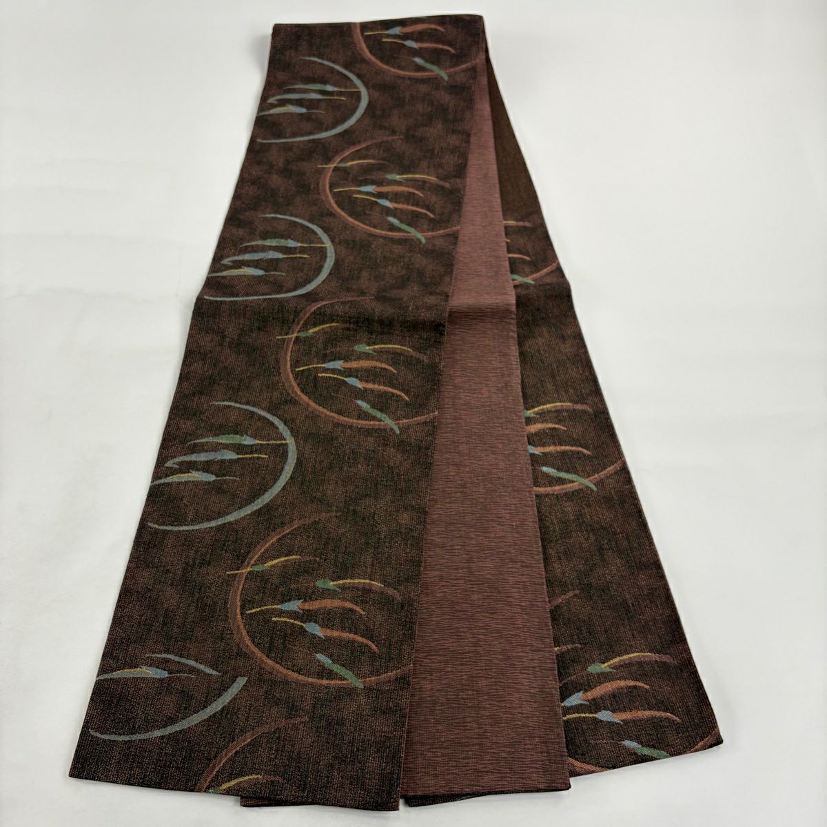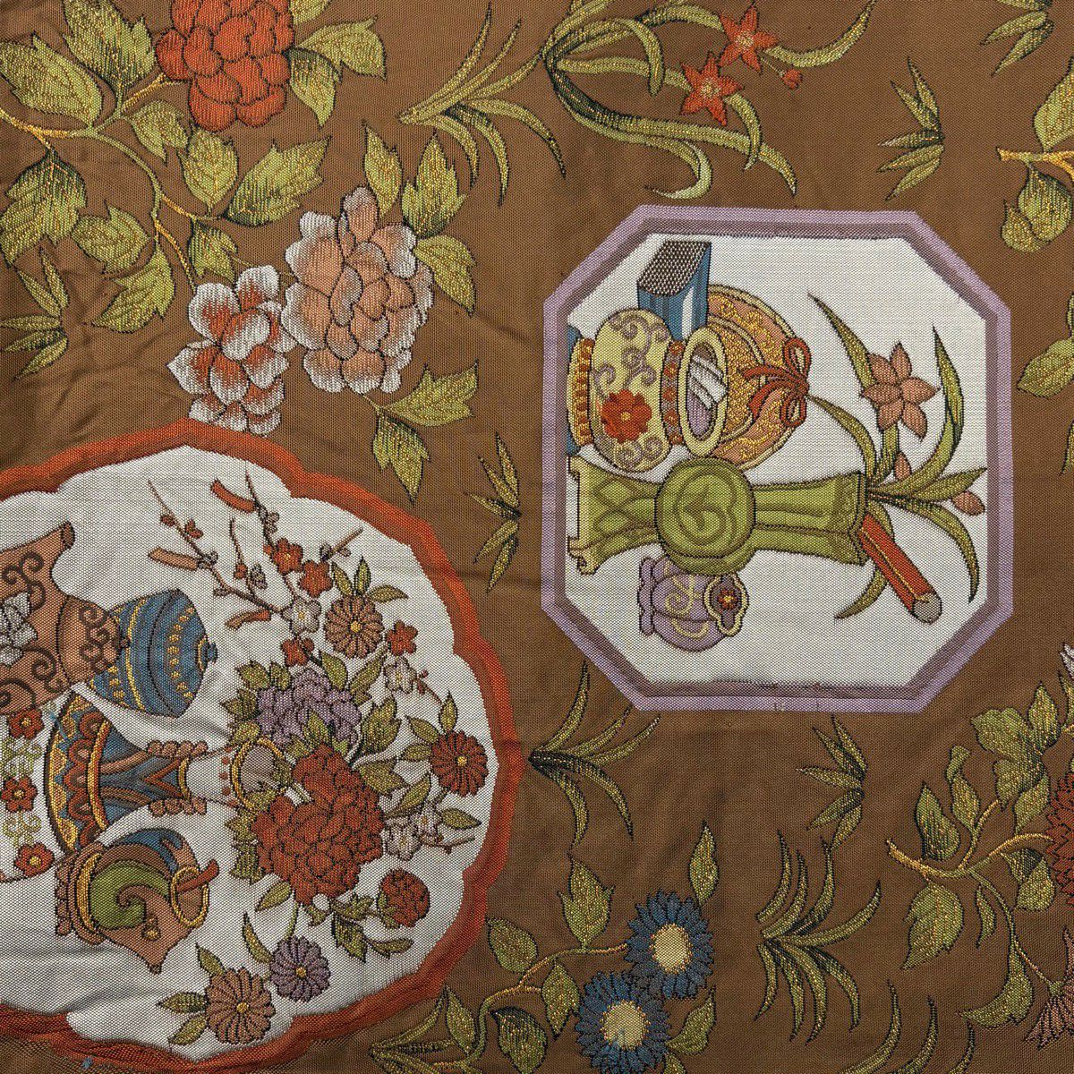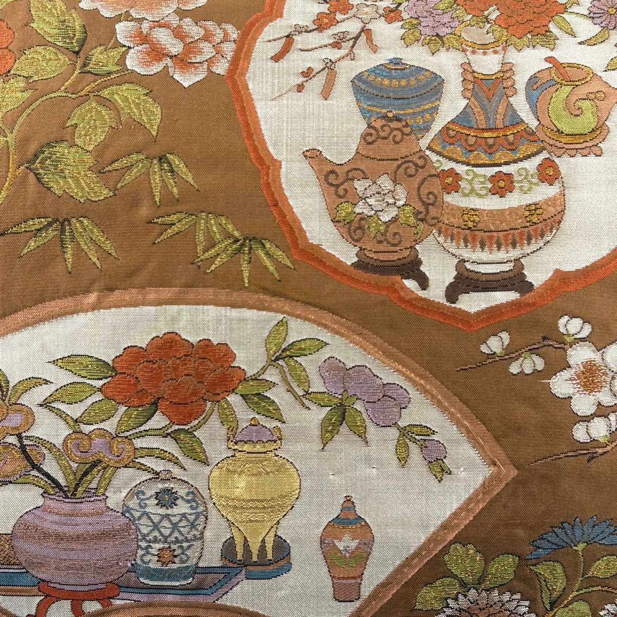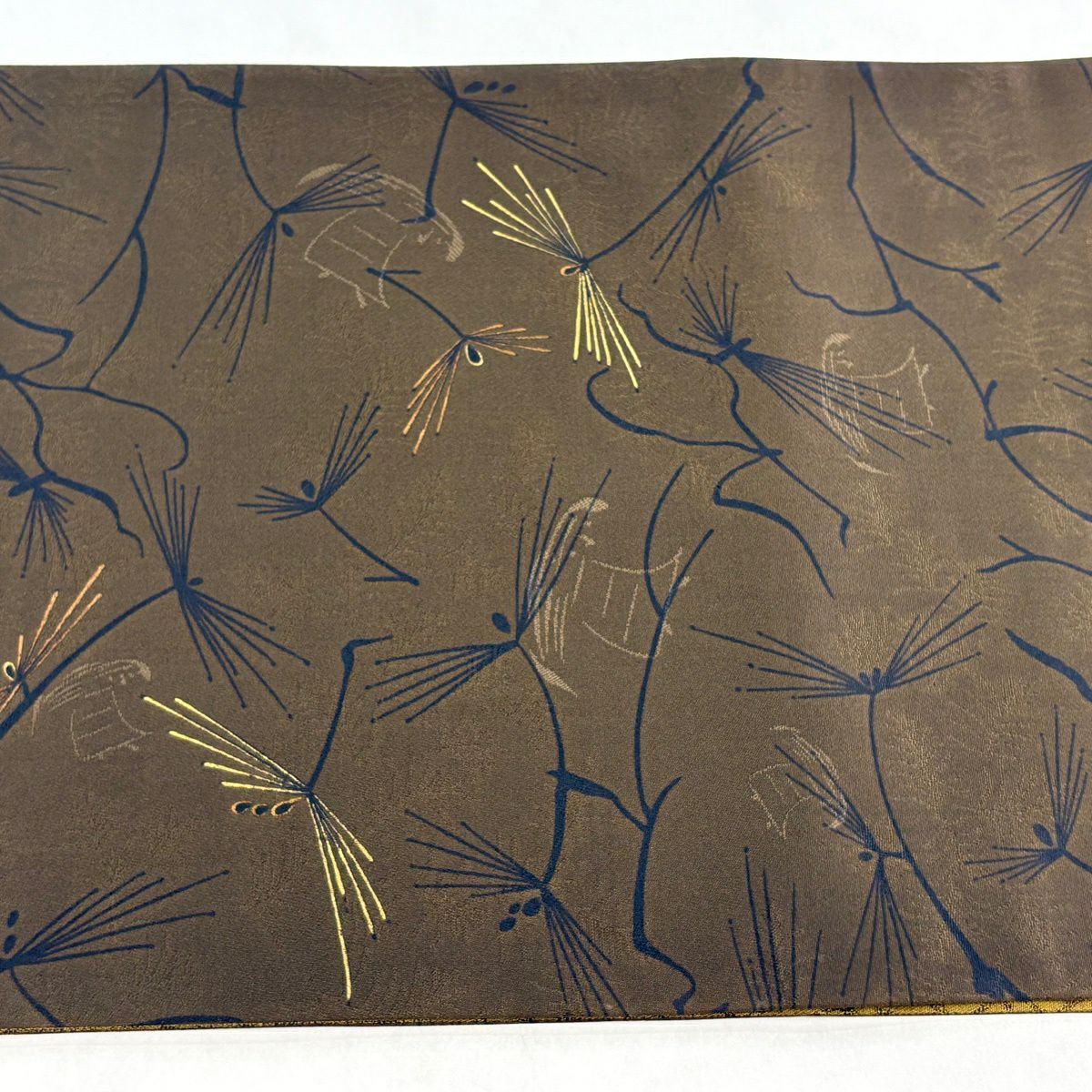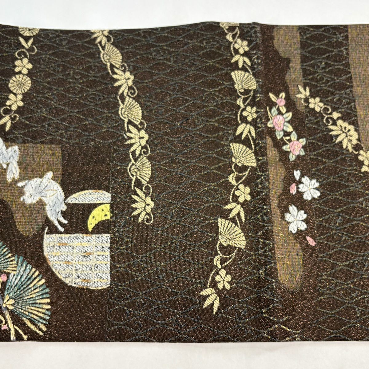【美品】 袋帯 秀品 花器 草花 金糸 茶色 六通 正絹
