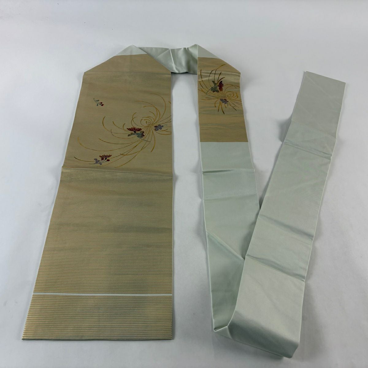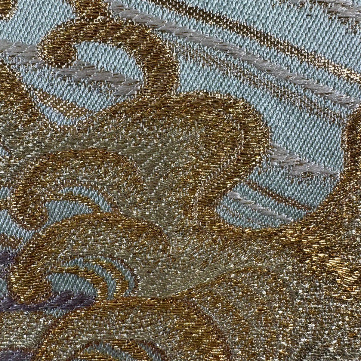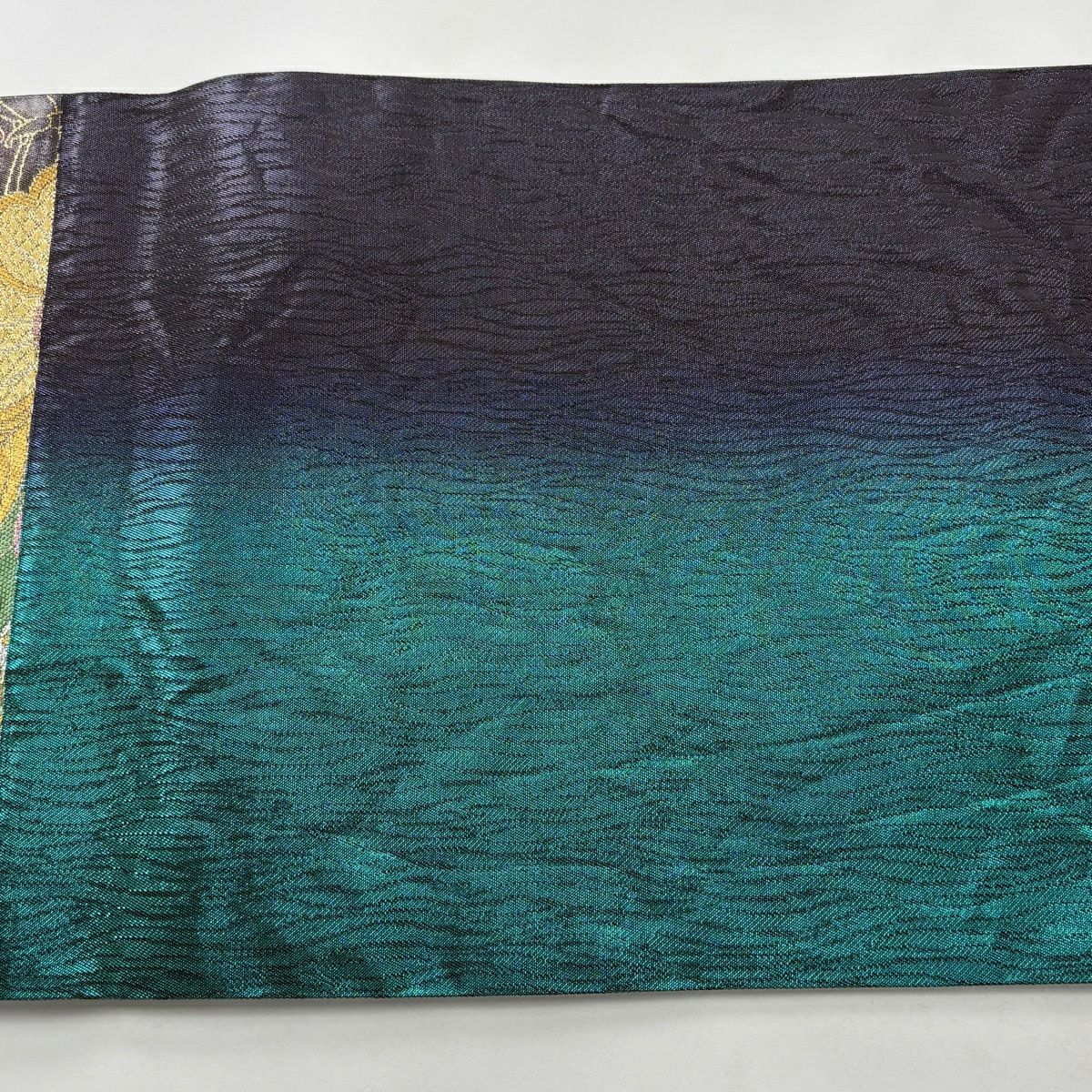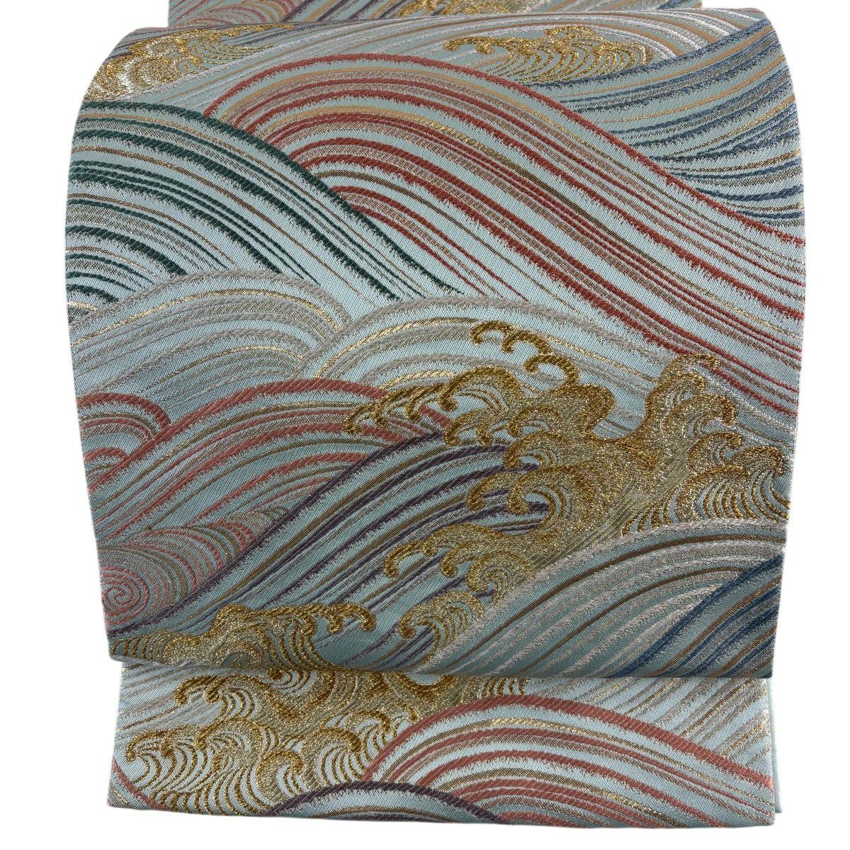 【美品】 袋帯 秀品 波頭 金糸 刺繍 薄緑 六通 正絹