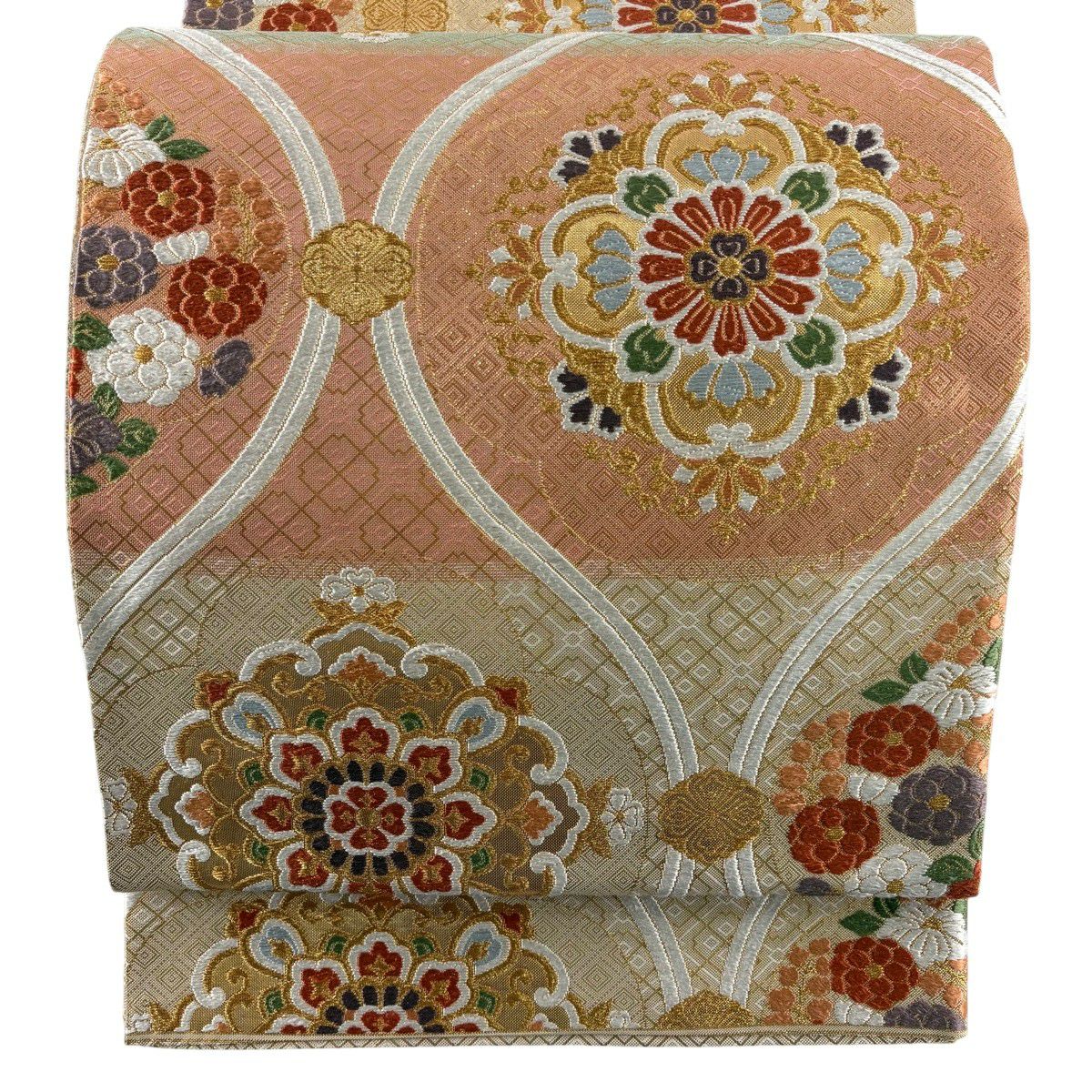 袋帯 秀品 華文 立涌 刺繍 金糸 ピンク 六通 正絹
