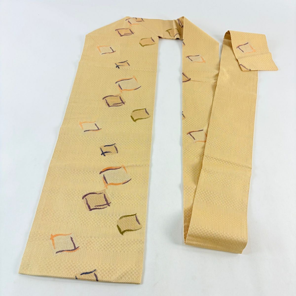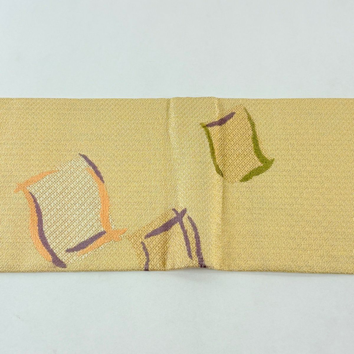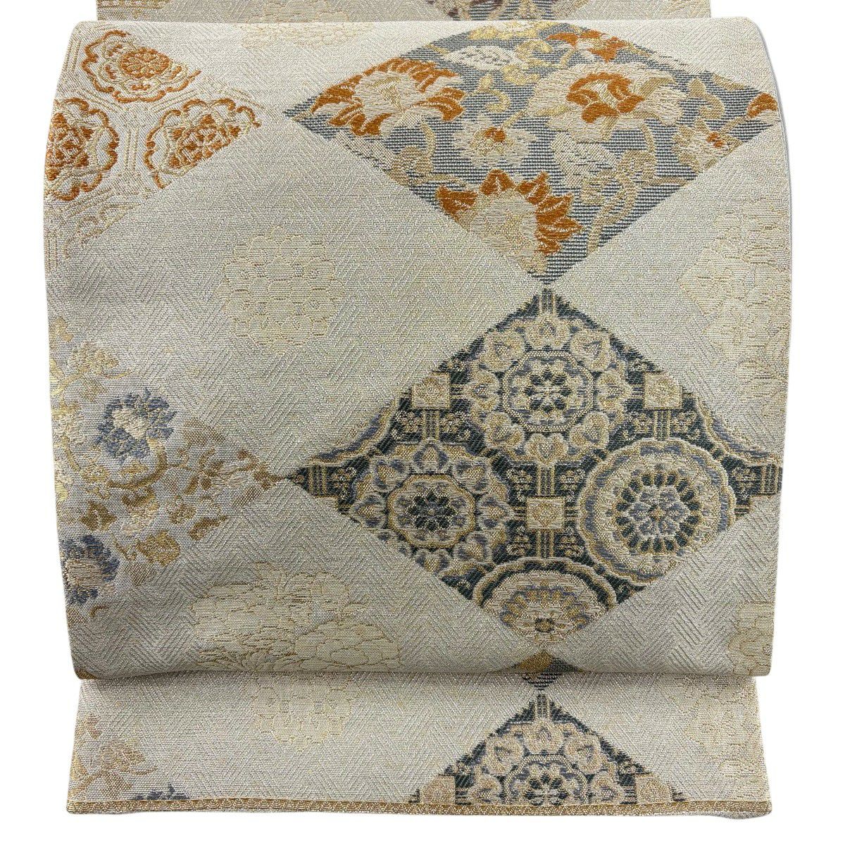 名古屋帯 秀品 幾何学模様 金糸 箔 ベージュ 正絹