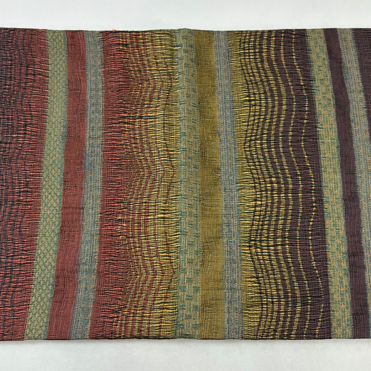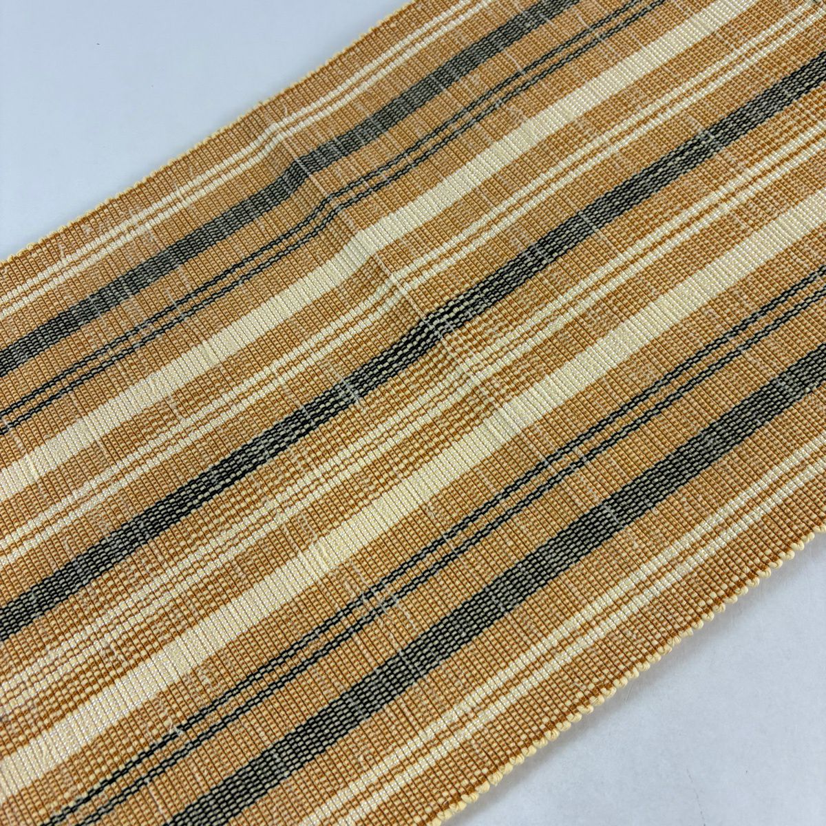 【美品】 名古屋帯 秀品 八寸名古屋帯 紬地 縞 黄土色 正絹