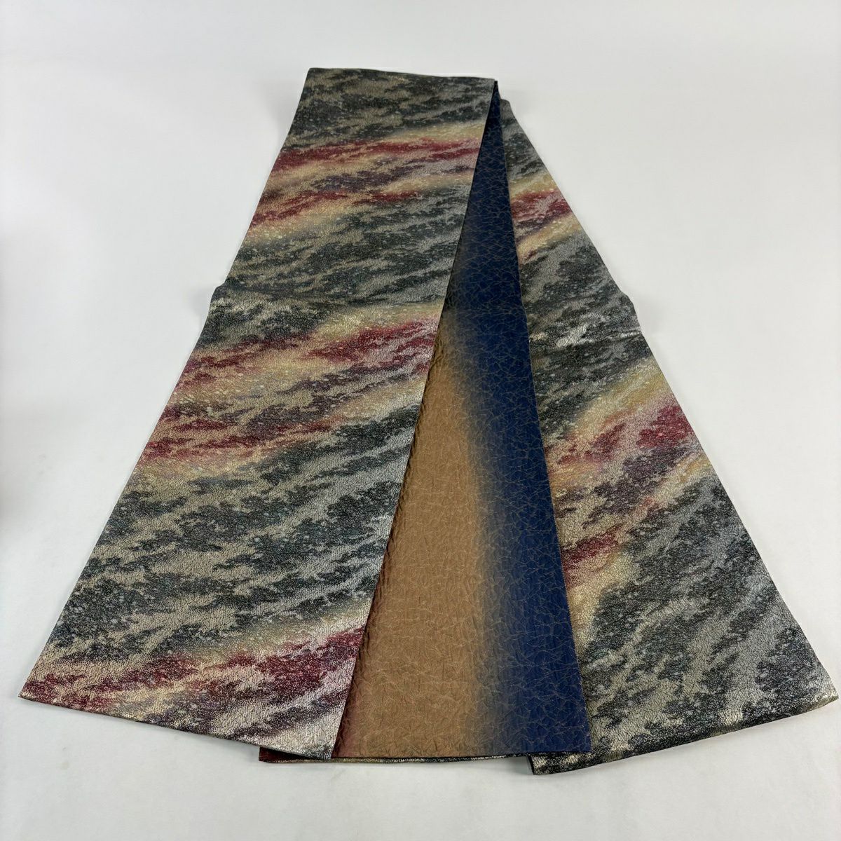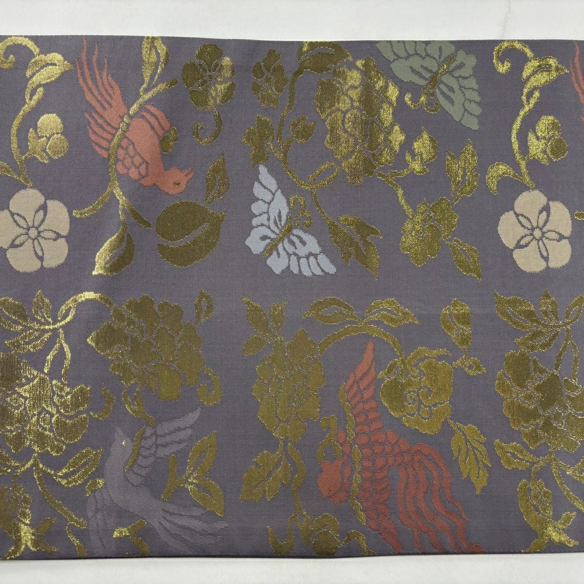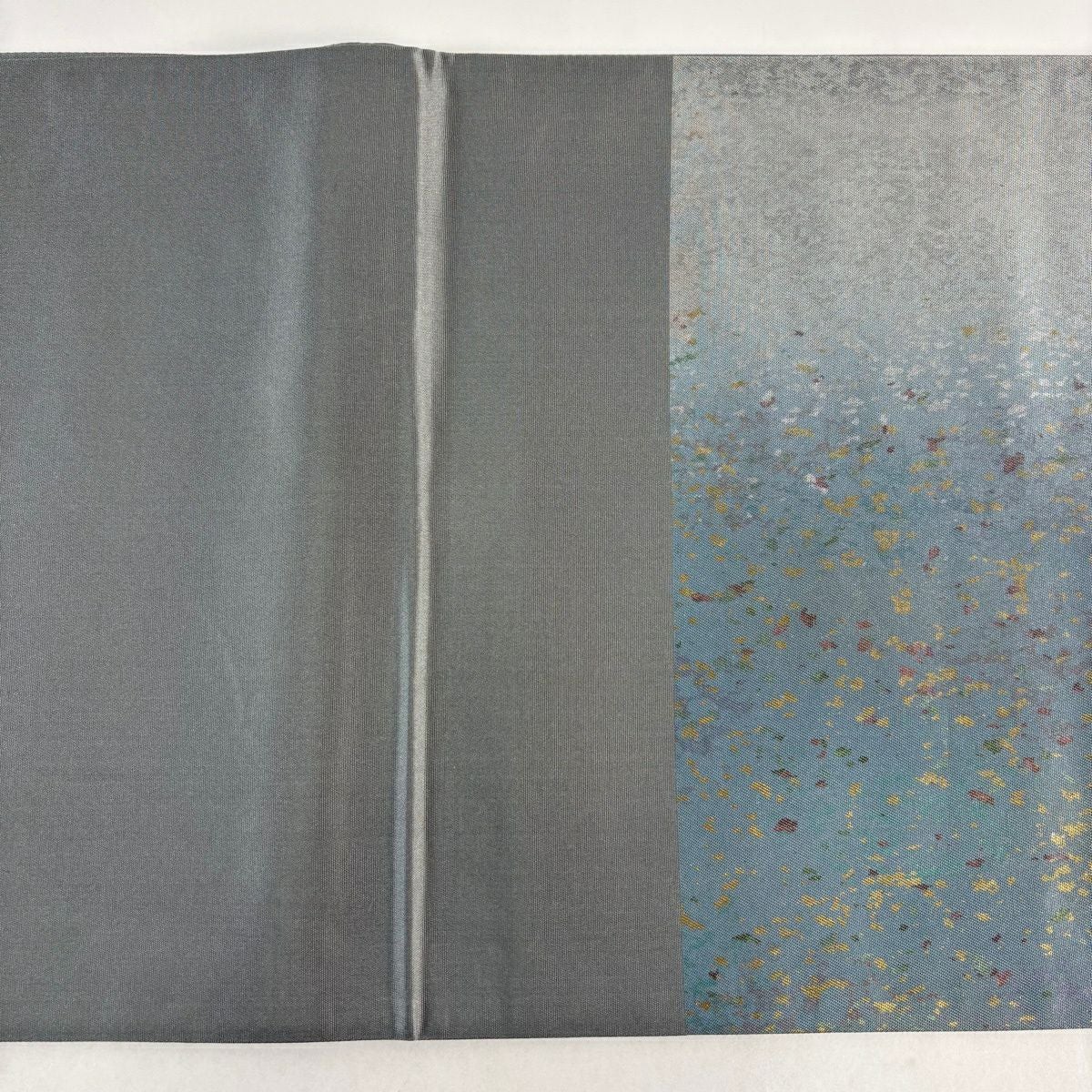 袋帯 秀品 宝尽くし 草花 ぼかし 灰色 お太鼓柄 正絹