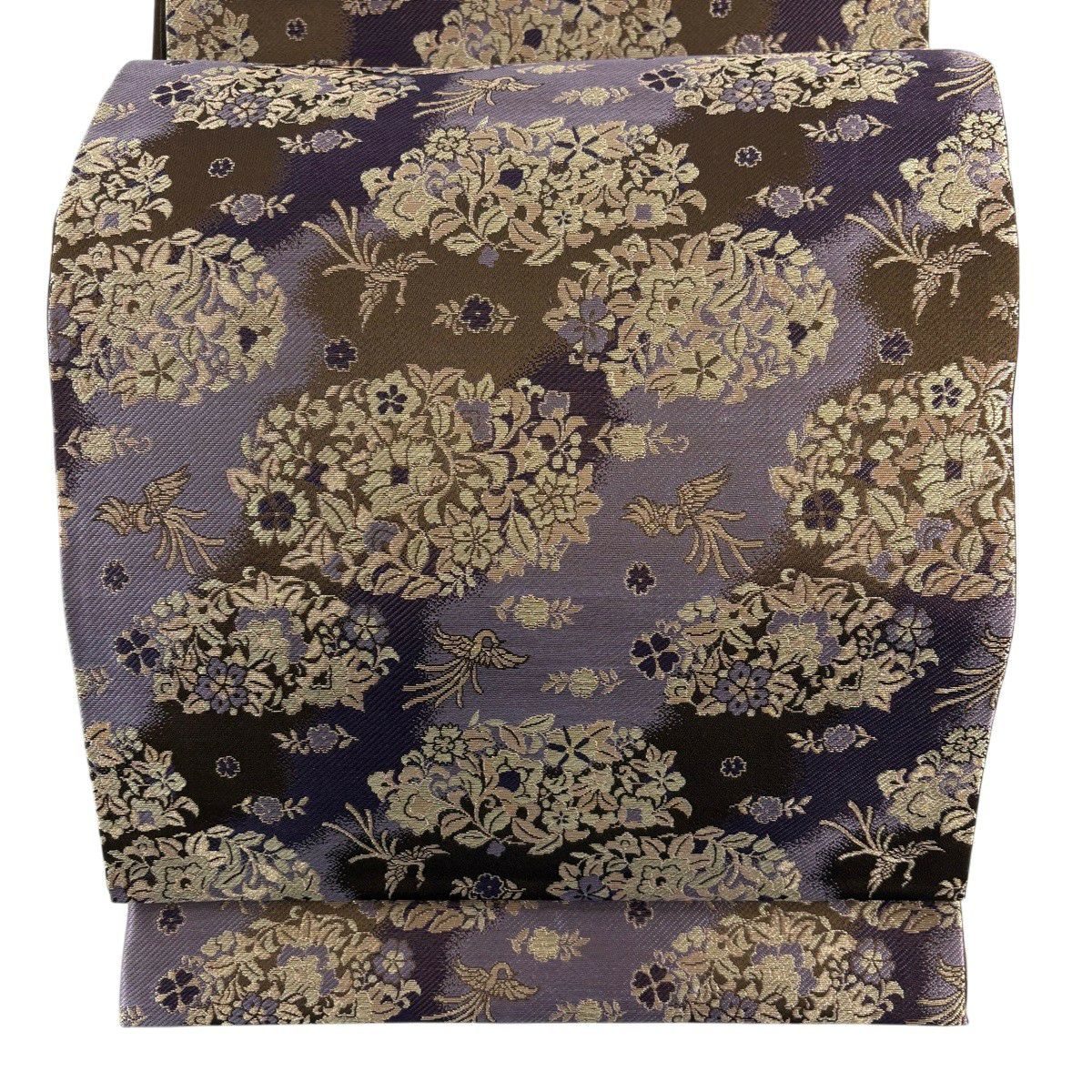 袋帯 秀品 鴛鴦 草花 金銀彩 箔 青紫 お太鼓柄 正絹