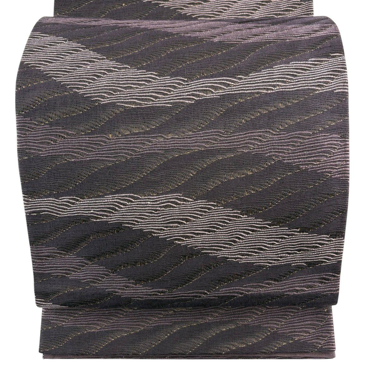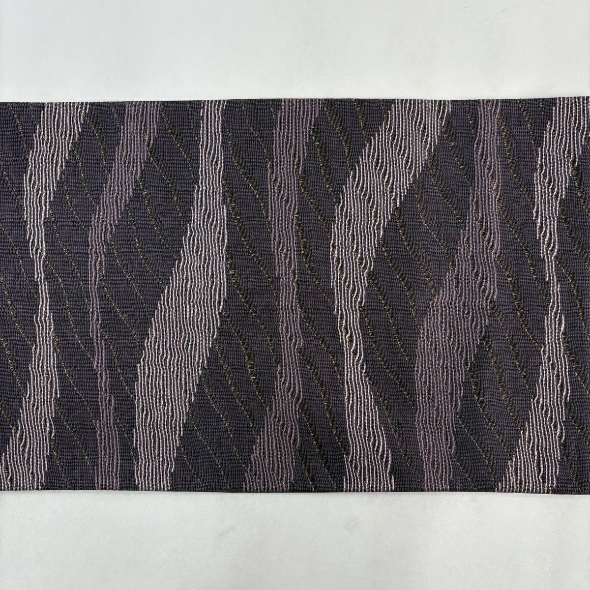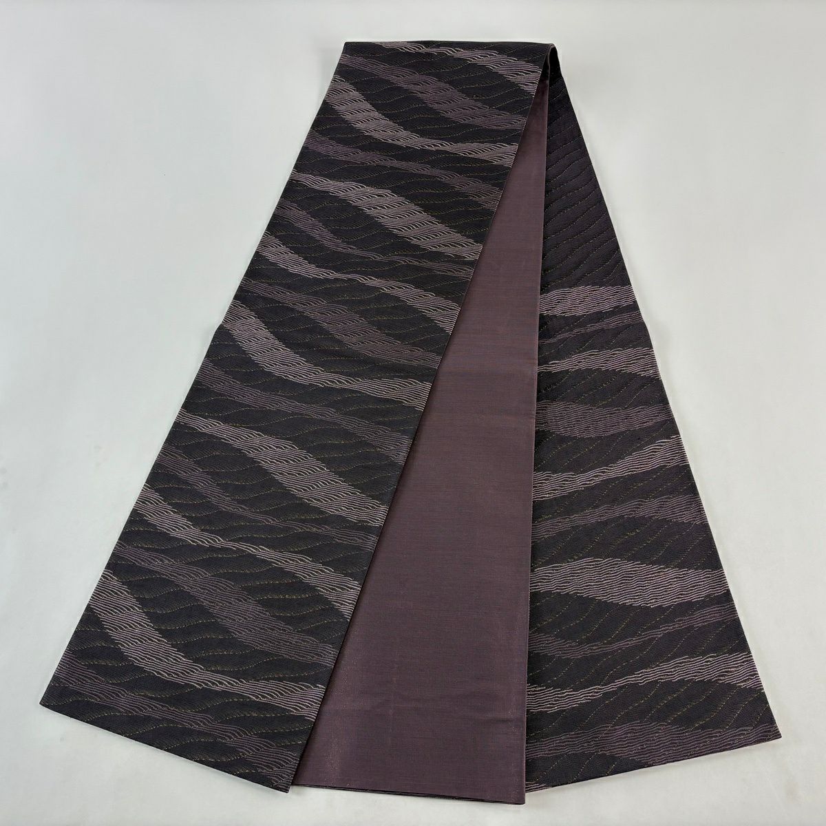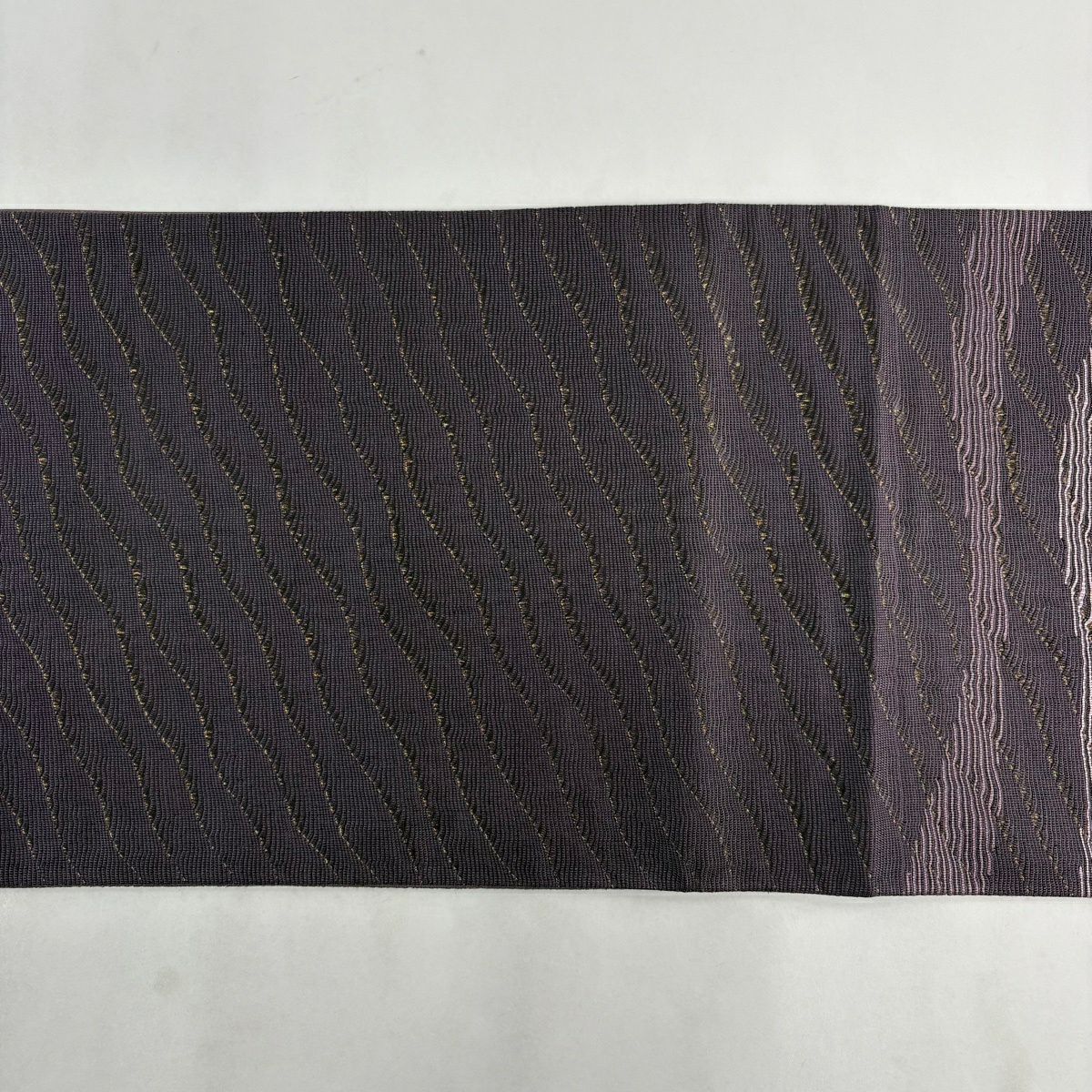【美品】 袋帯 秀品 本泥染袋帯 縞 金糸 紫 六通 正絹