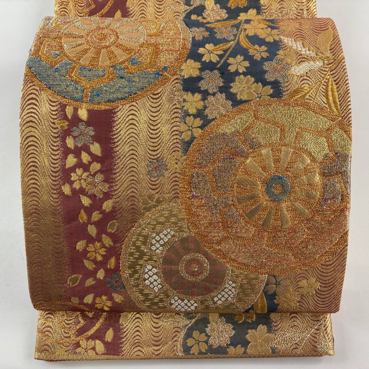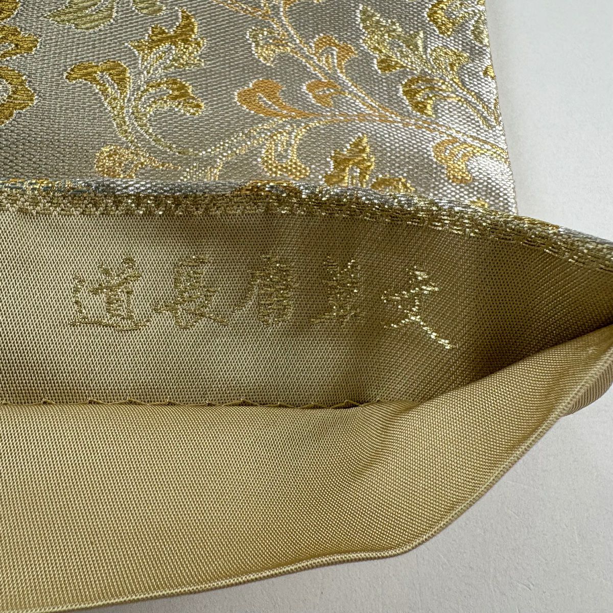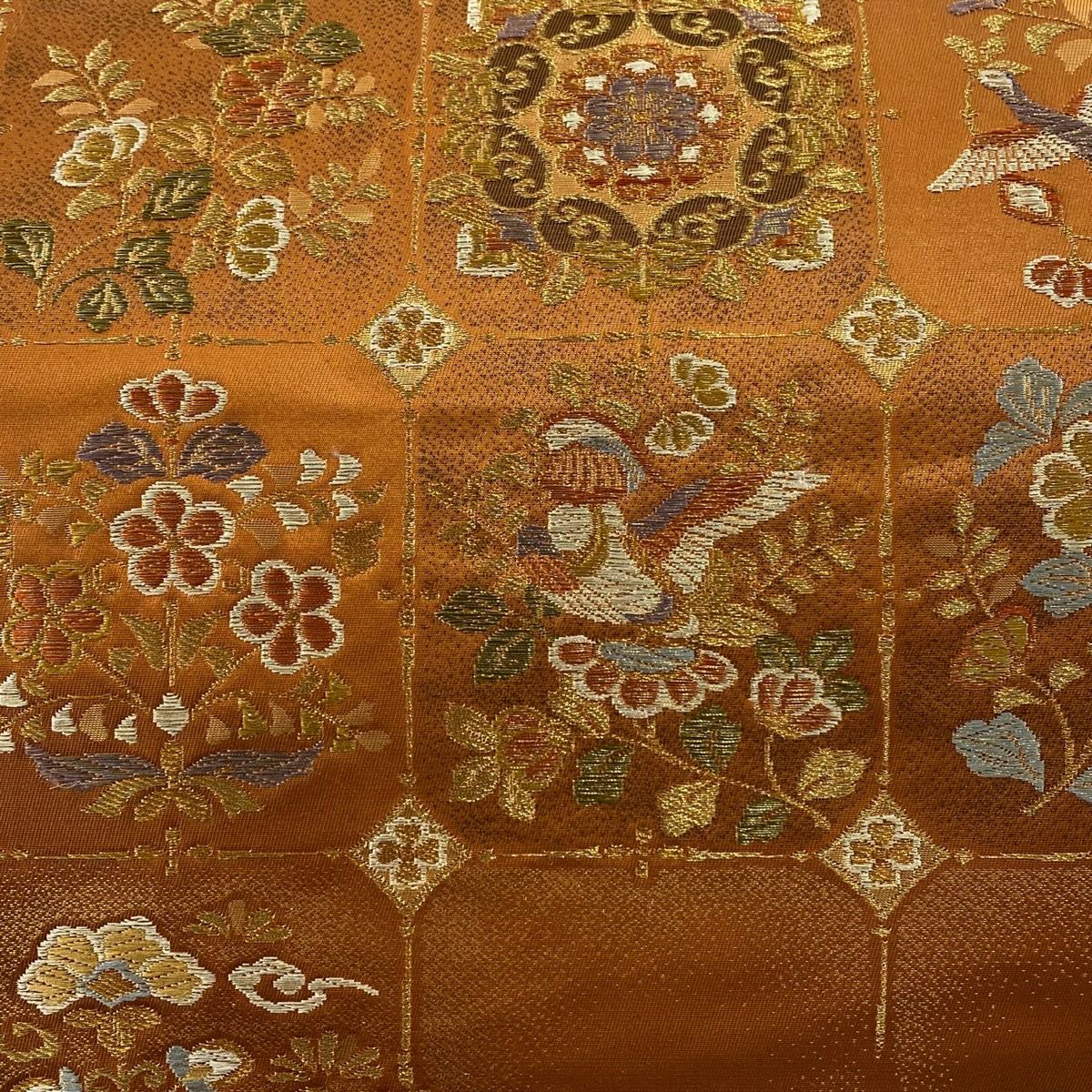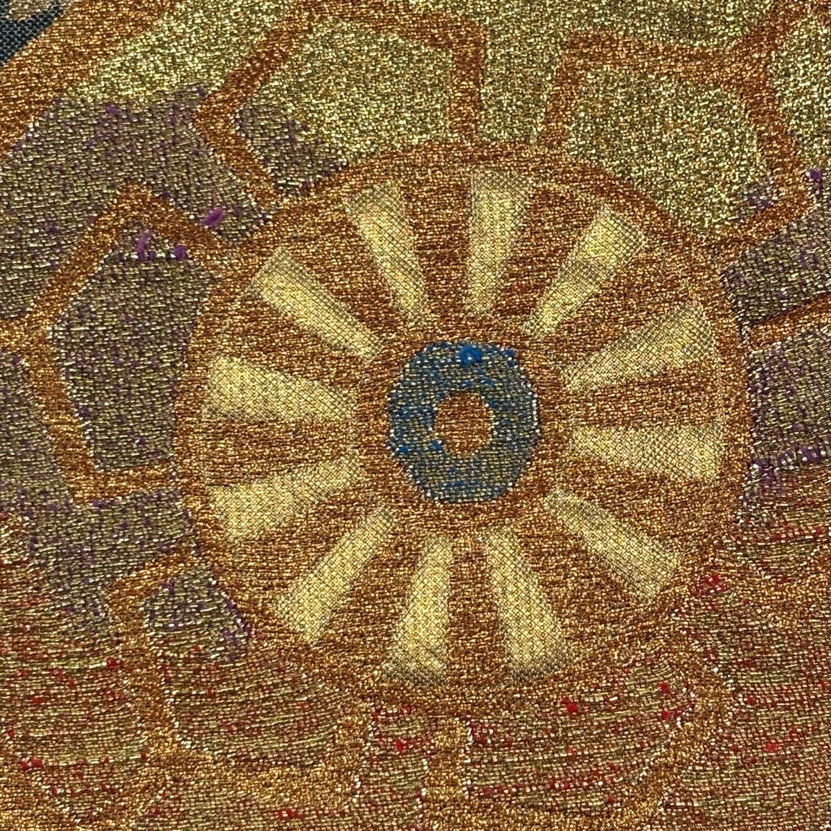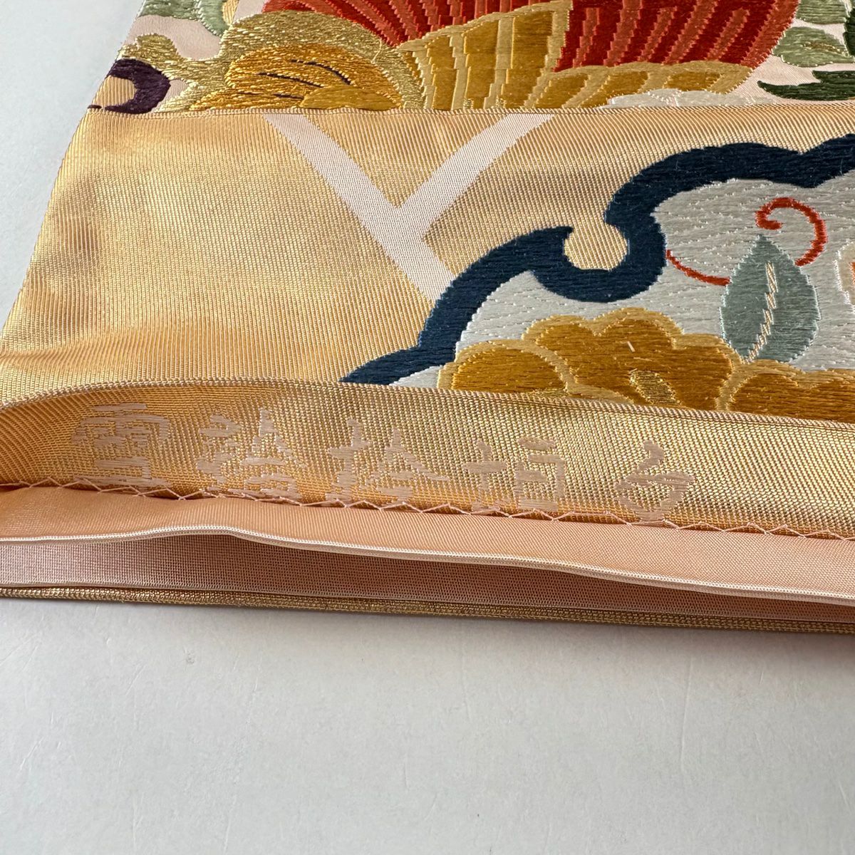 【最終値引き】 77%OFF 【美品】 袋帯 秀品 遠山菊鶴文 秋草 刺繍 金糸 金色 六通 正絹 K70