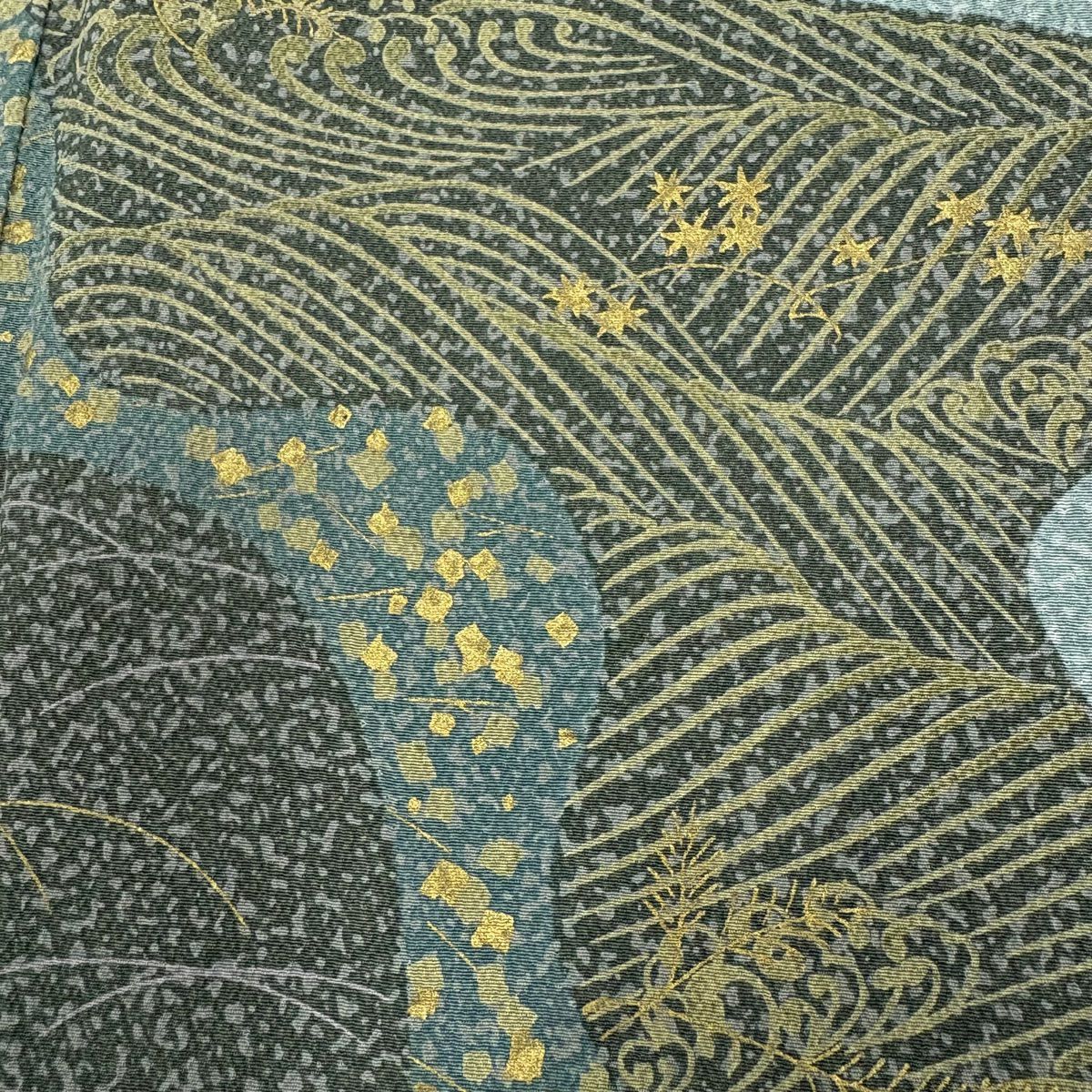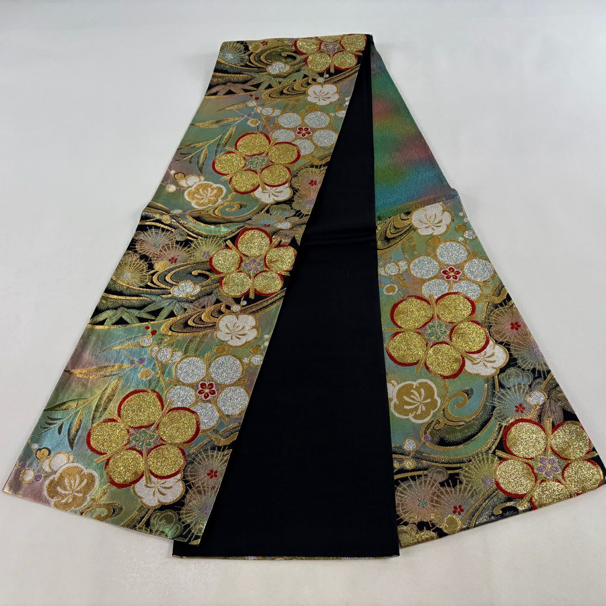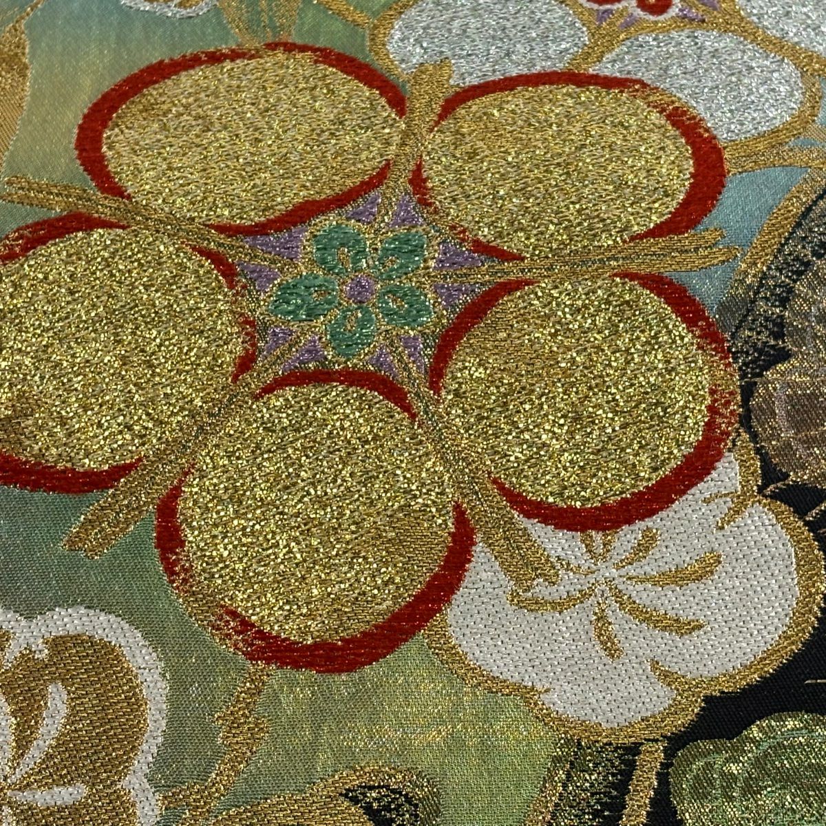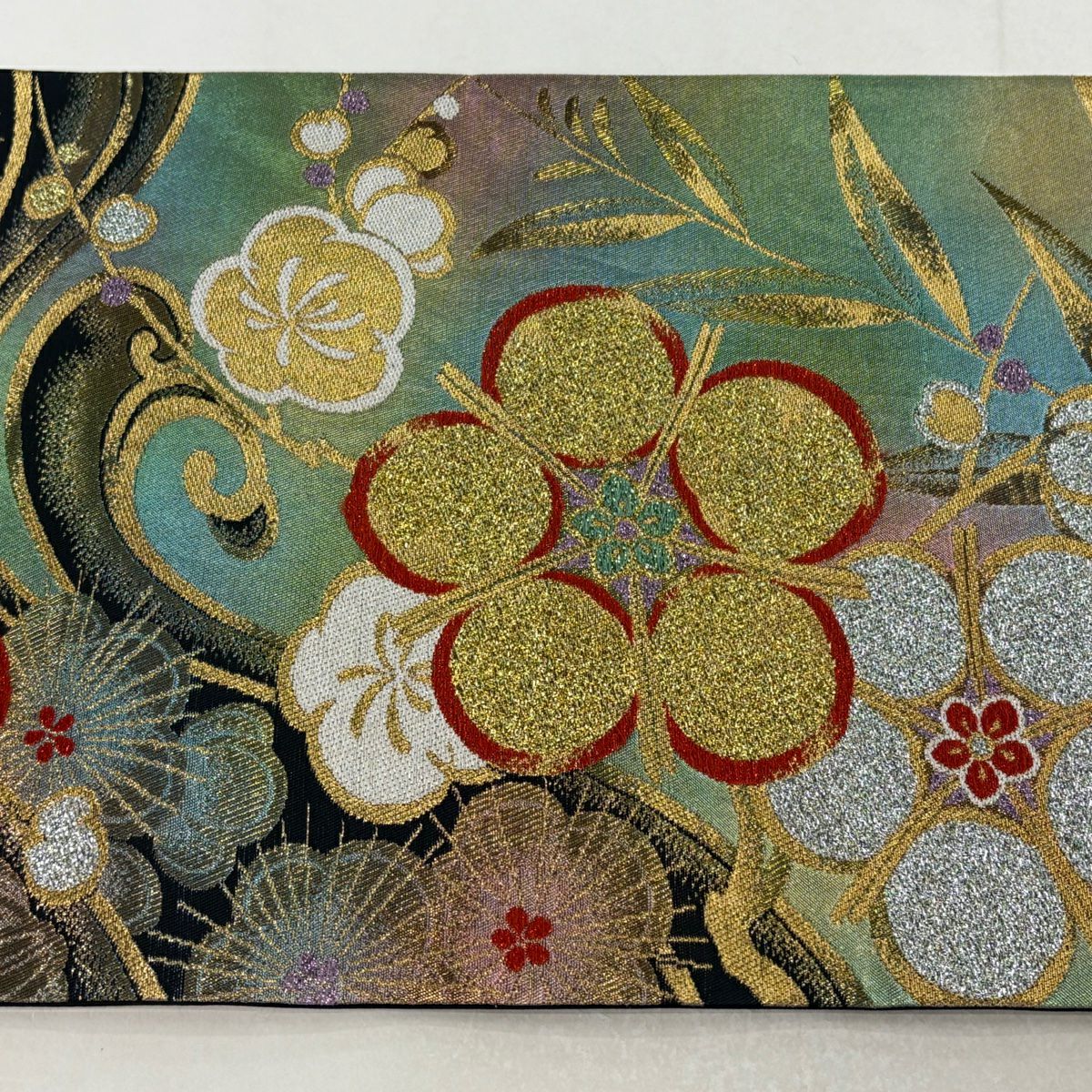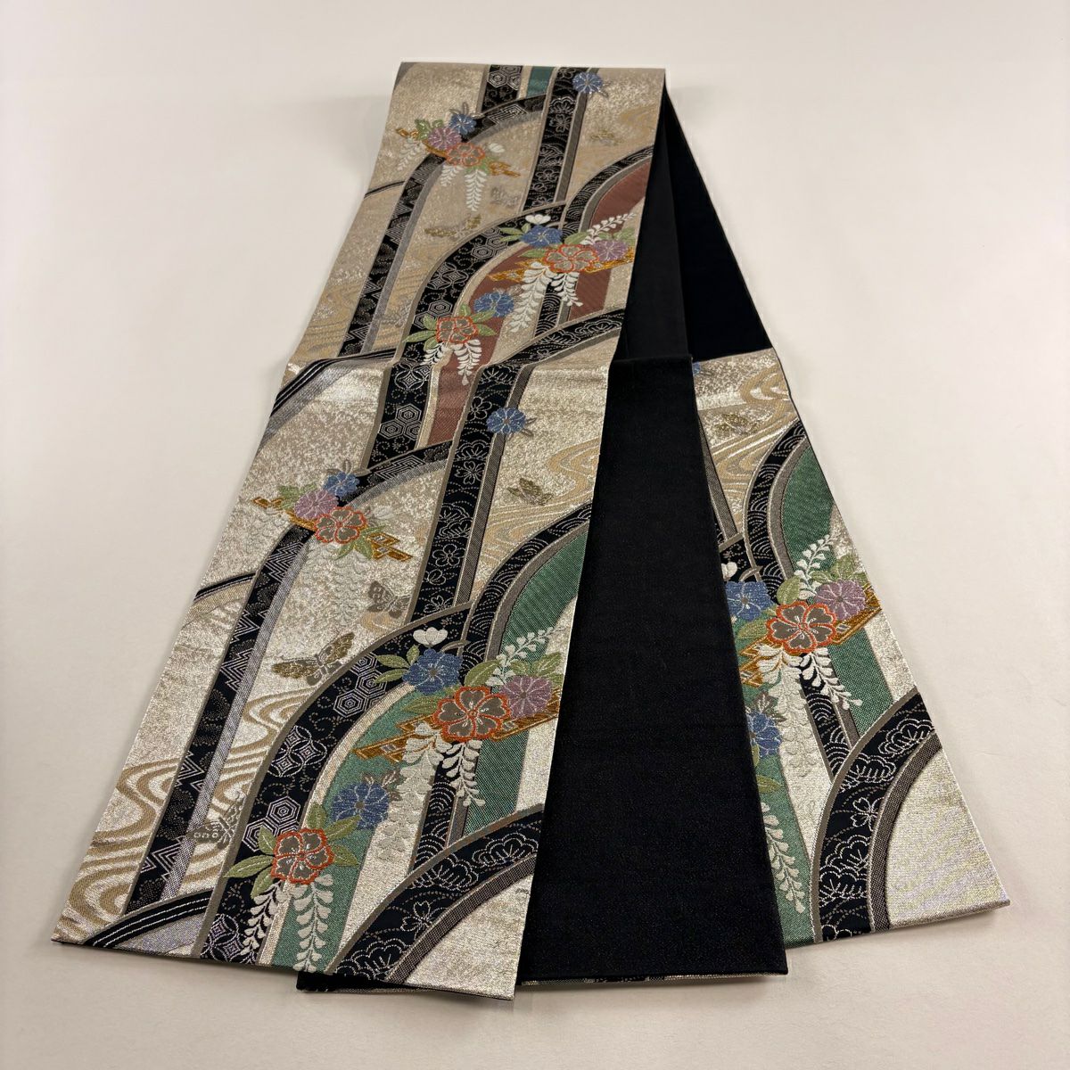 【最終値引き】 77%OFF 【美品】 袋帯 秀品 遠山菊鶴文 秋草 刺繍 金糸 金色 六通 正絹 K70
