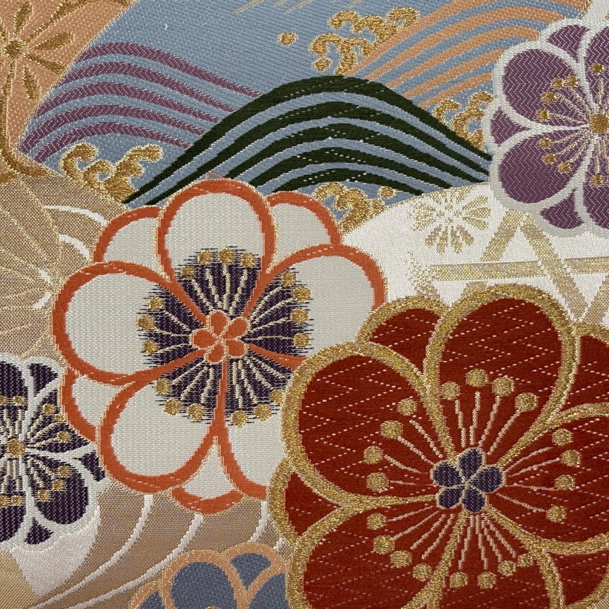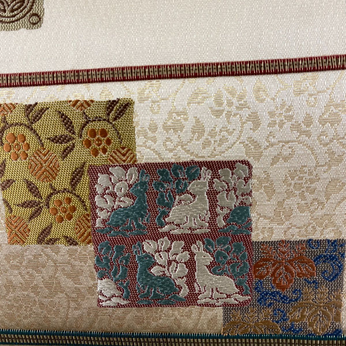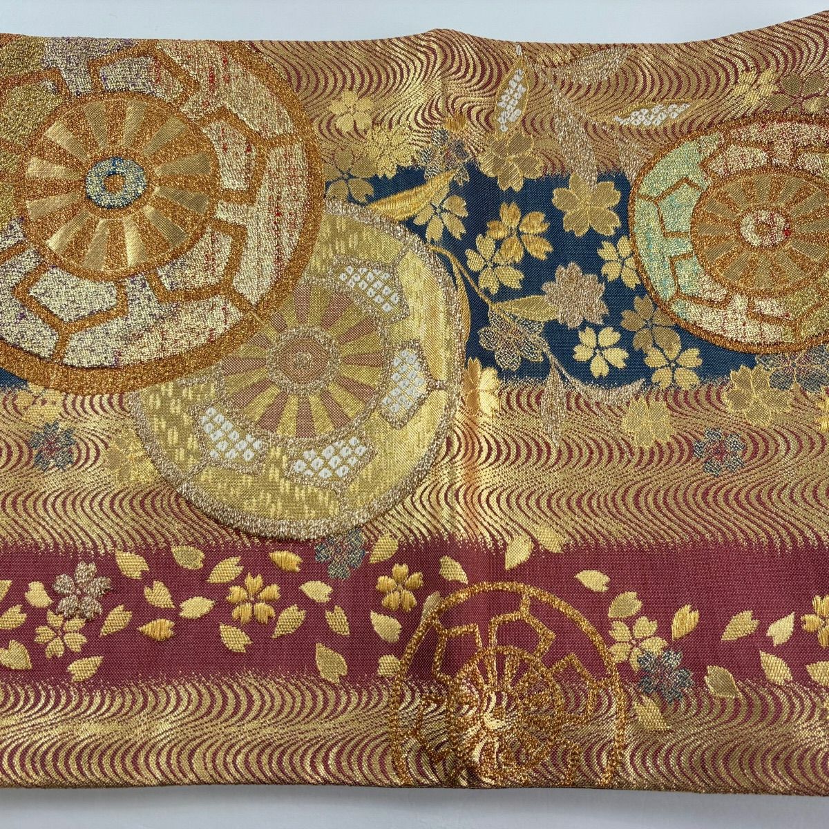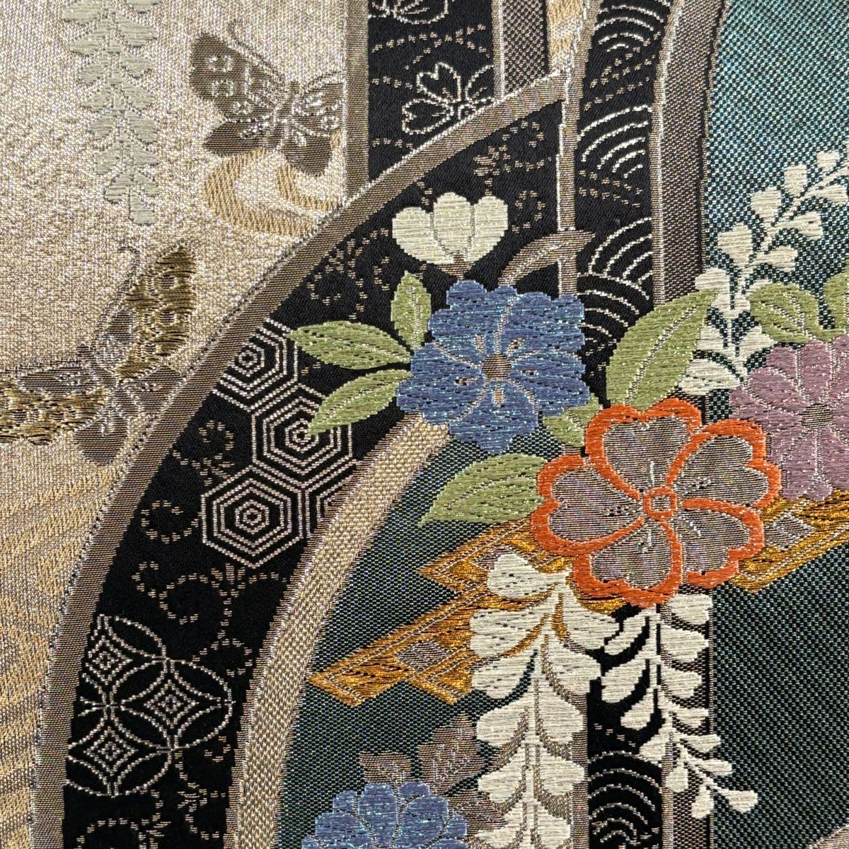【最終値引き】 77%OFF 【美品】 袋帯 秀品 遠山菊鶴文 秋草 刺繍 金糸 金色 六通 正絹 K70