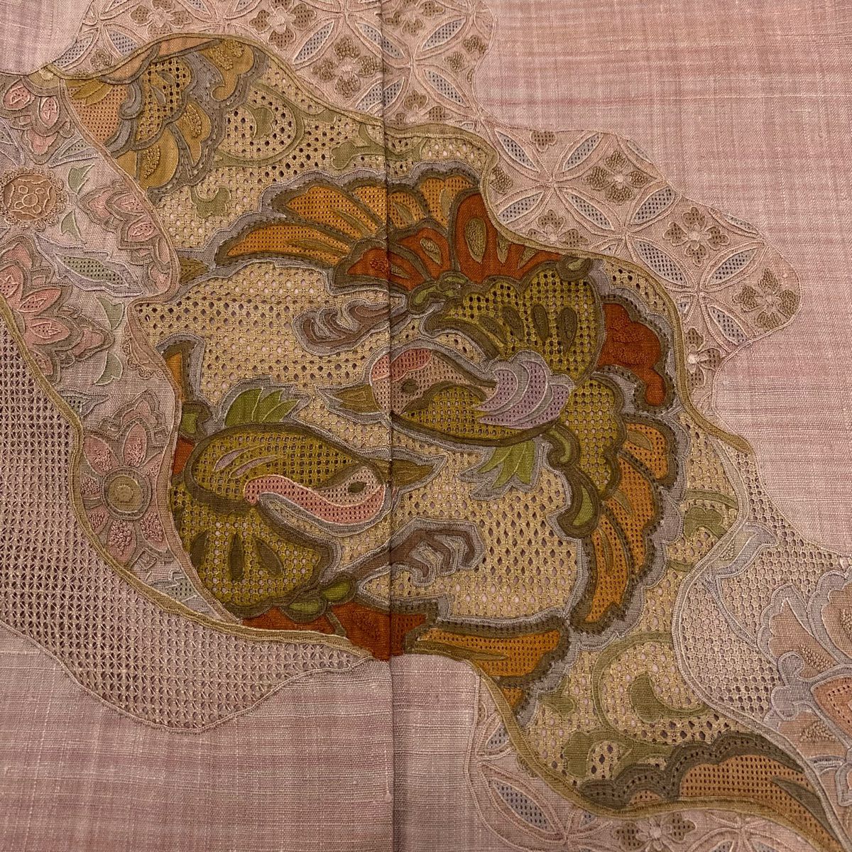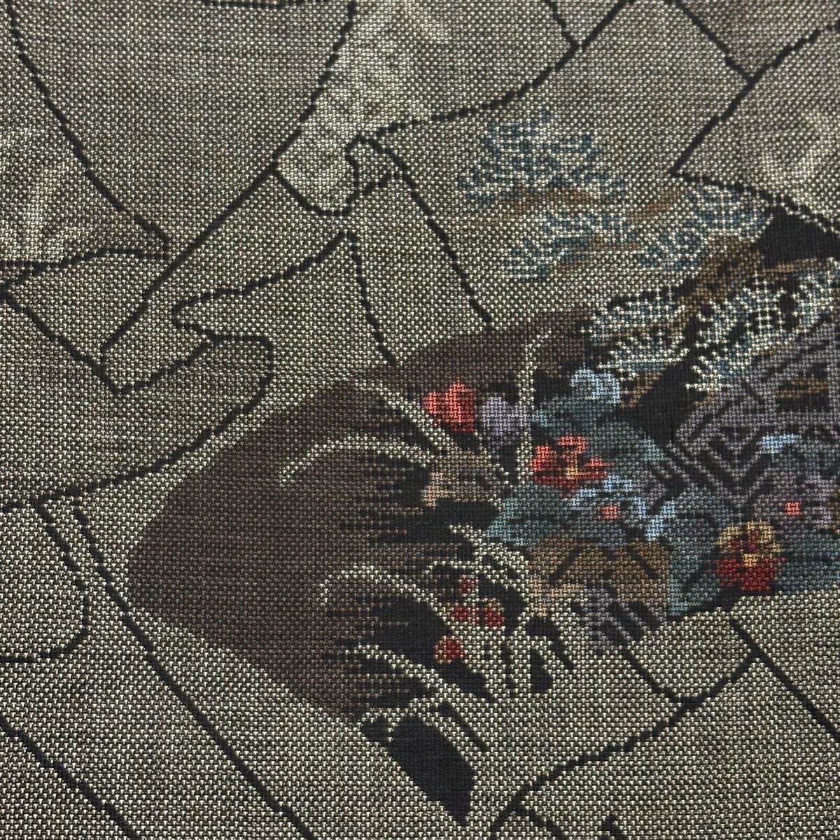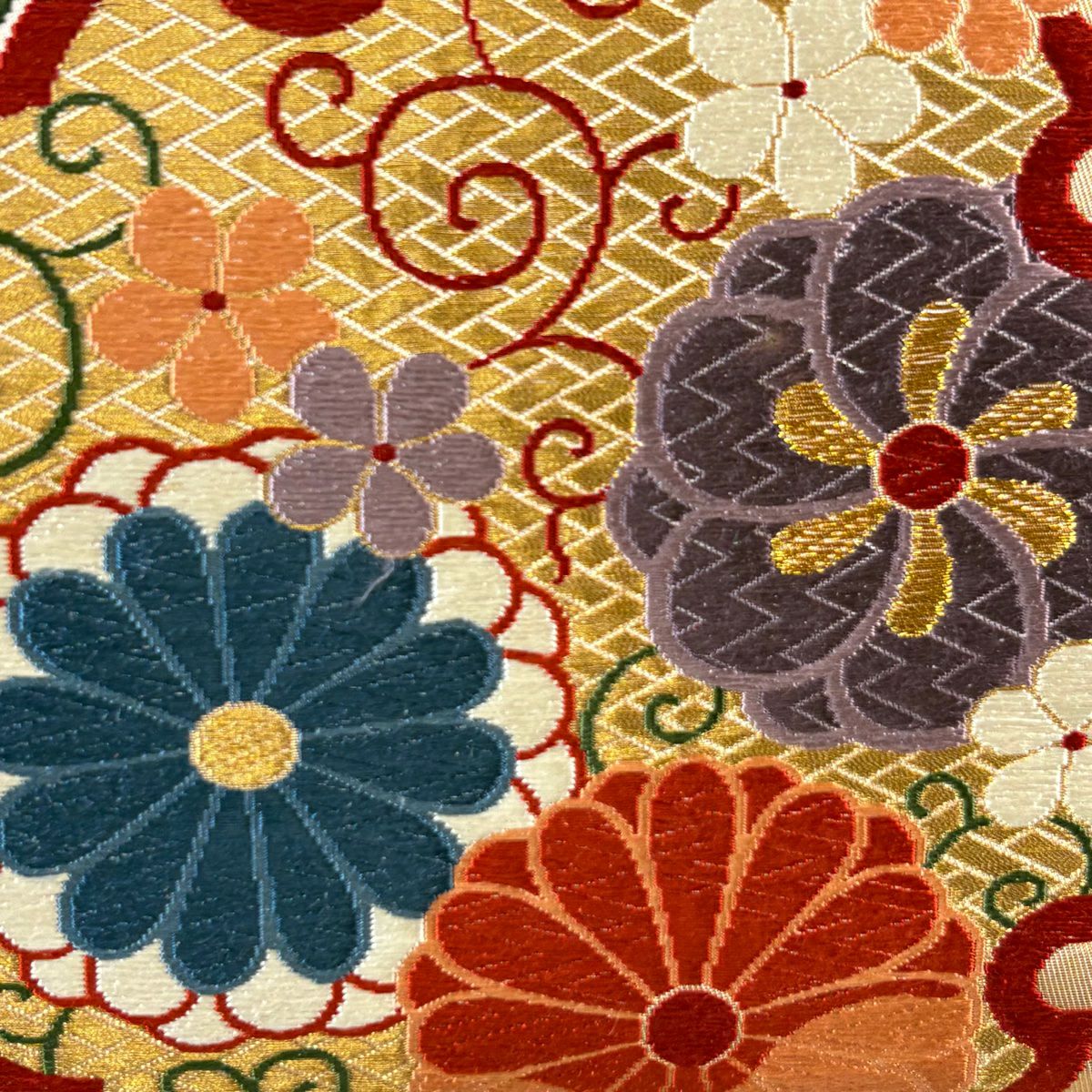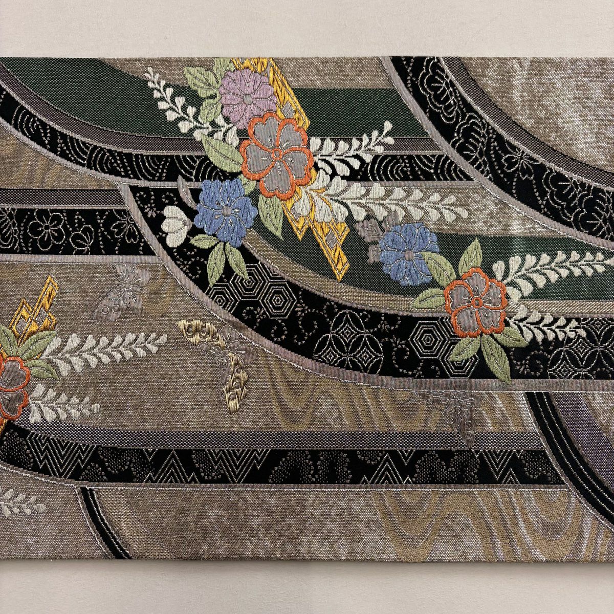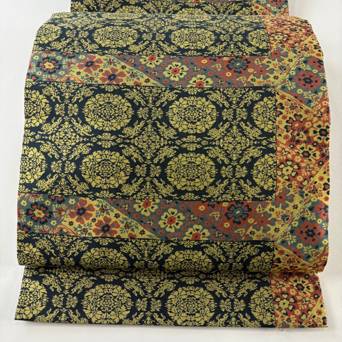 【最終値引き】 77%OFF 【美品】 袋帯 秀品 遠山菊鶴文 秋草 刺繍 金糸 金色 六通 正絹 K70