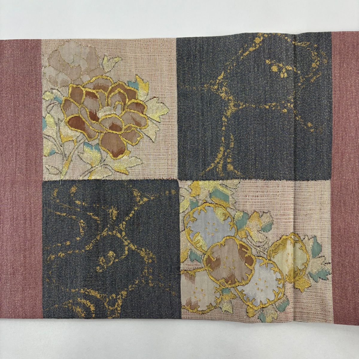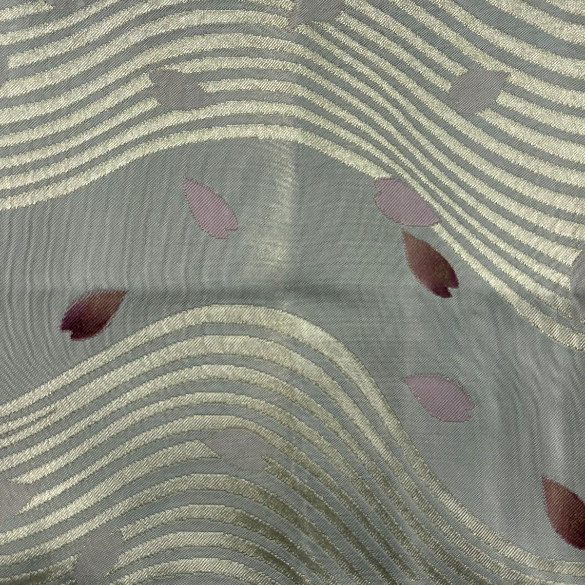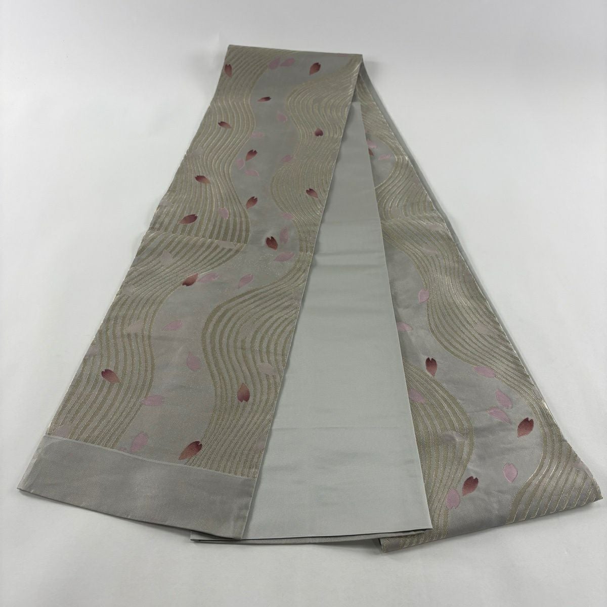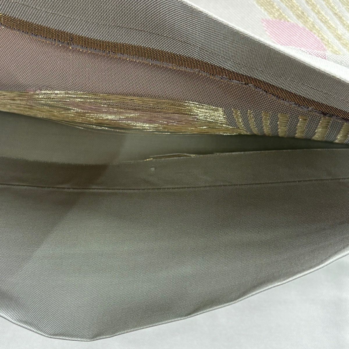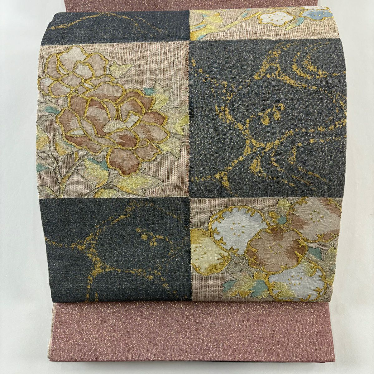 【在庫一掃】 【美品】 袋帯 秀品 証紙あり 州浜裂取波文 花唐草 波頭 金糸 箔 灰紫 お太鼓柄 正絹