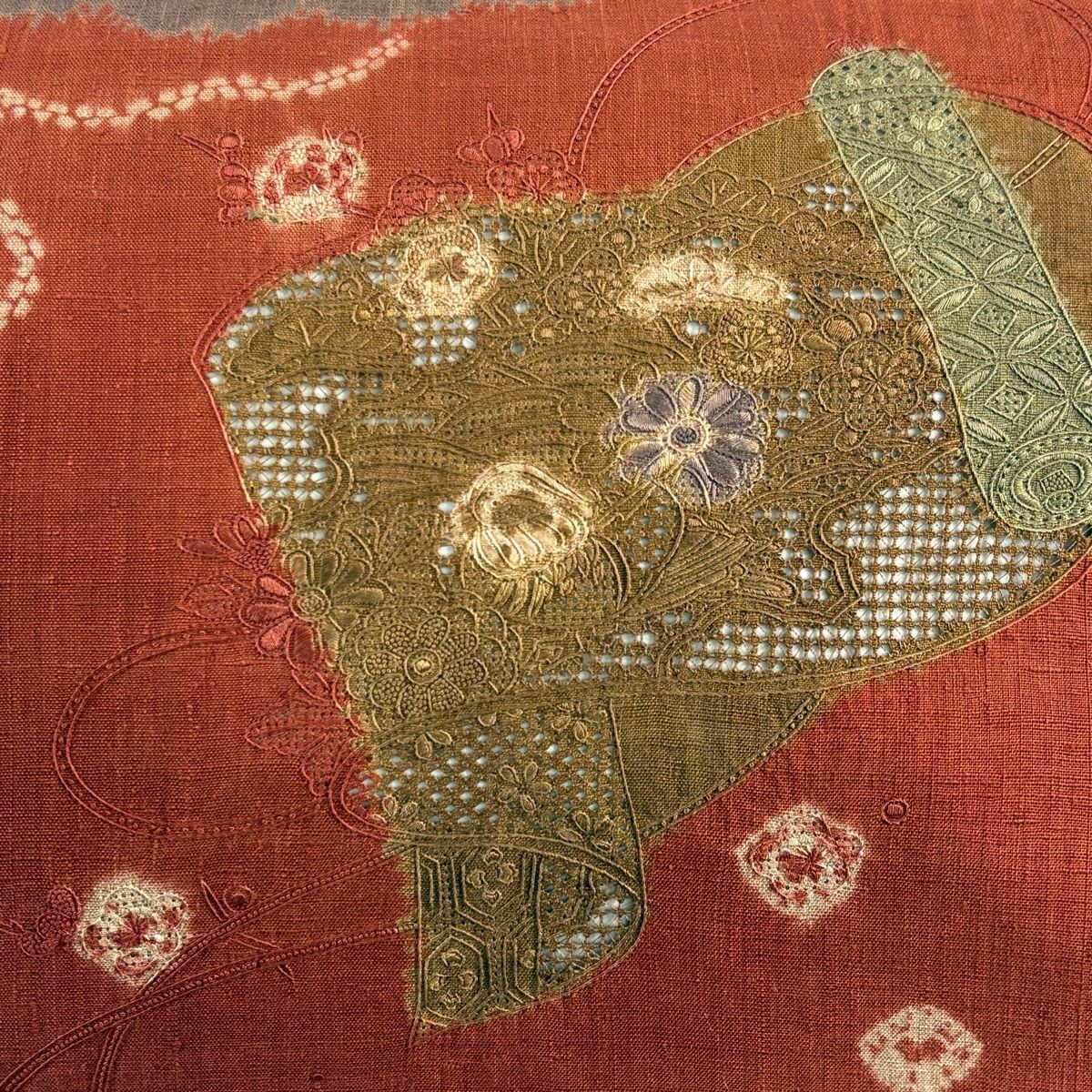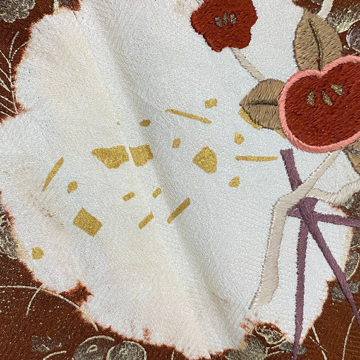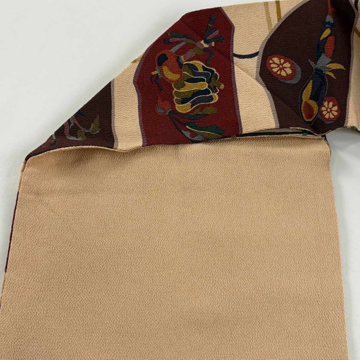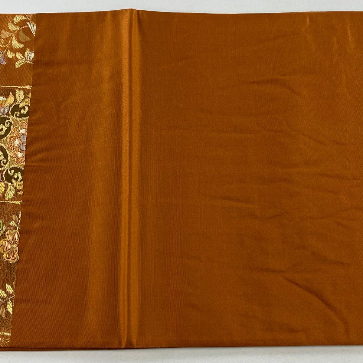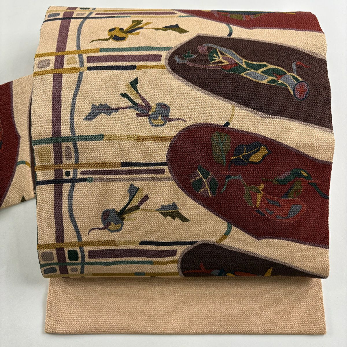 【最終値引き】 83%OFF 【美品】 名古屋帯 秀品 紬地 反物 花鳥 絞り 刺繍 赤茶 正絹 K70