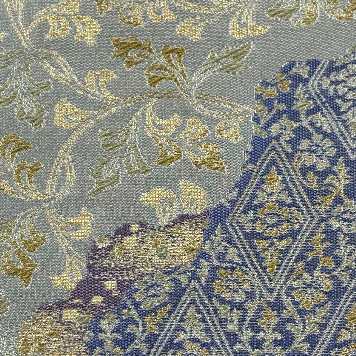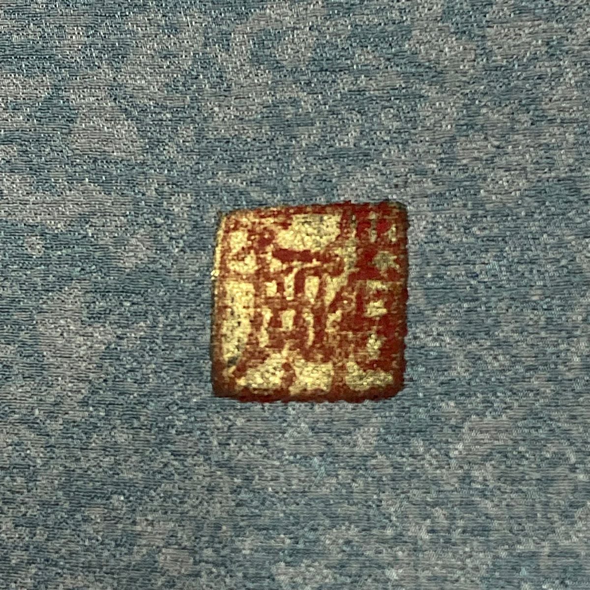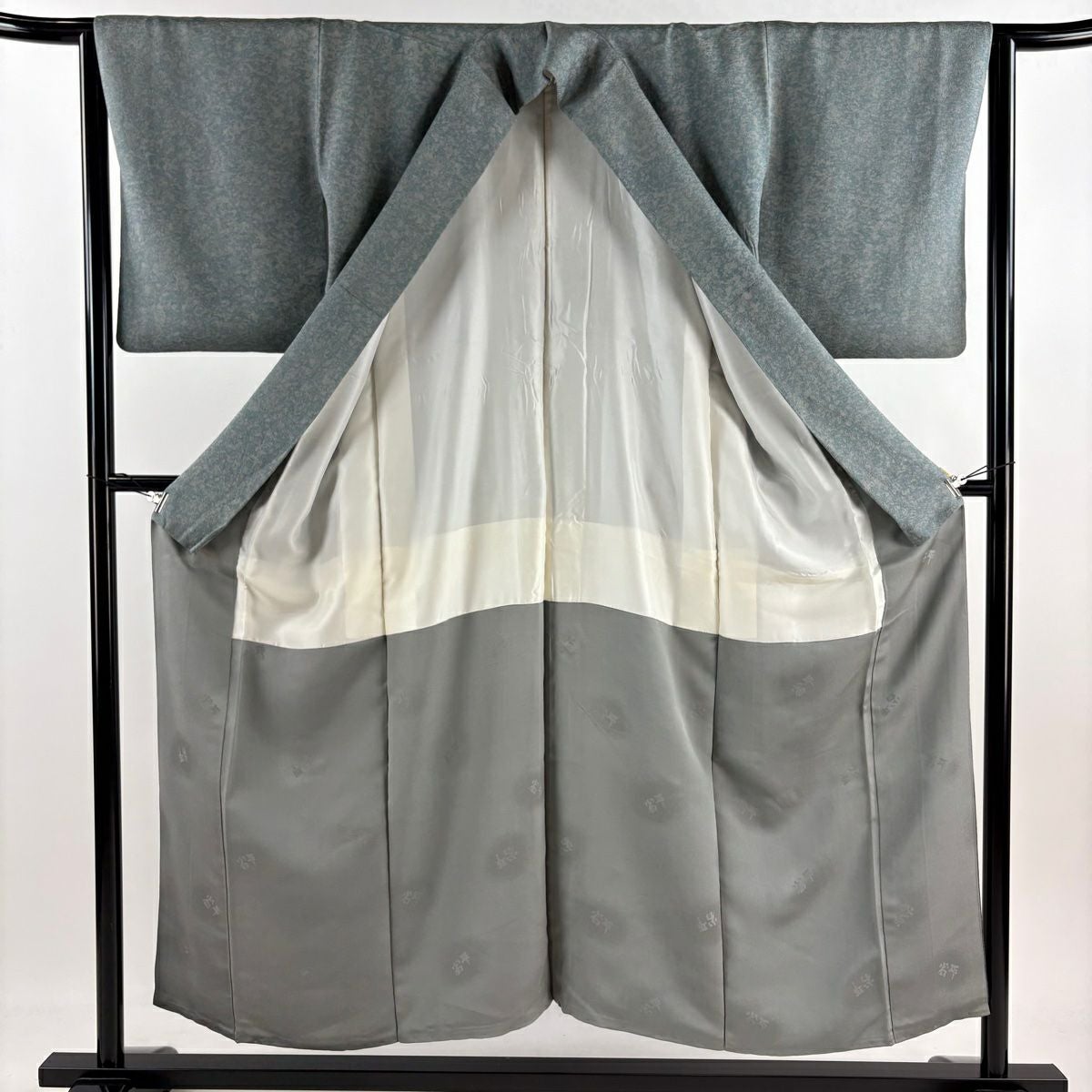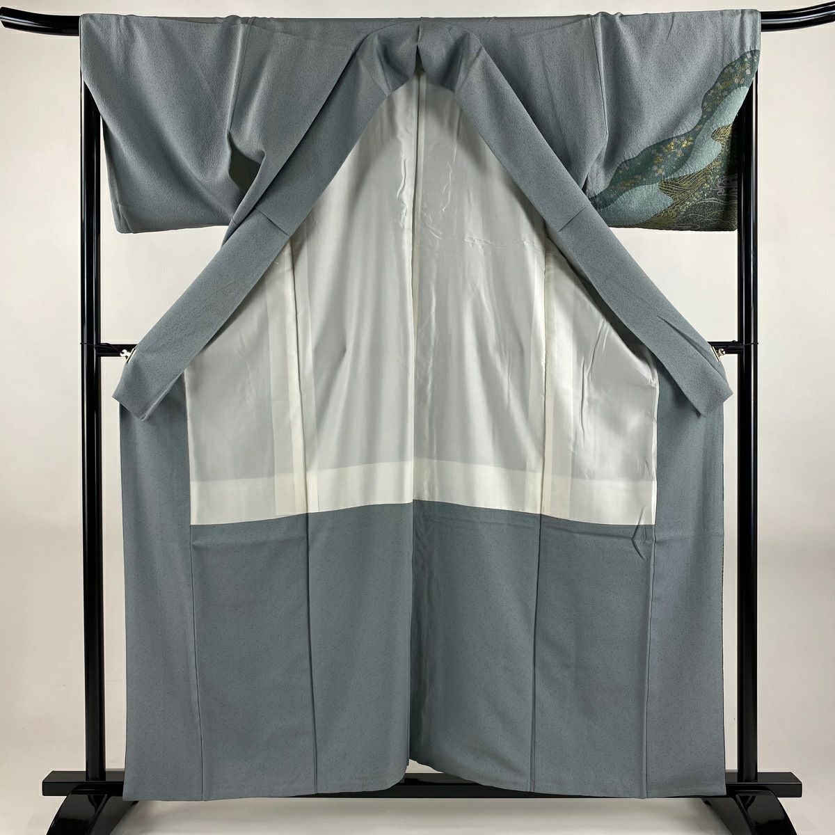 【在庫一掃】 訪問着 身丈156cm 裄丈64cm M 袷 草花 有職文様 金糸 金彩 青灰色 正絹 秀品