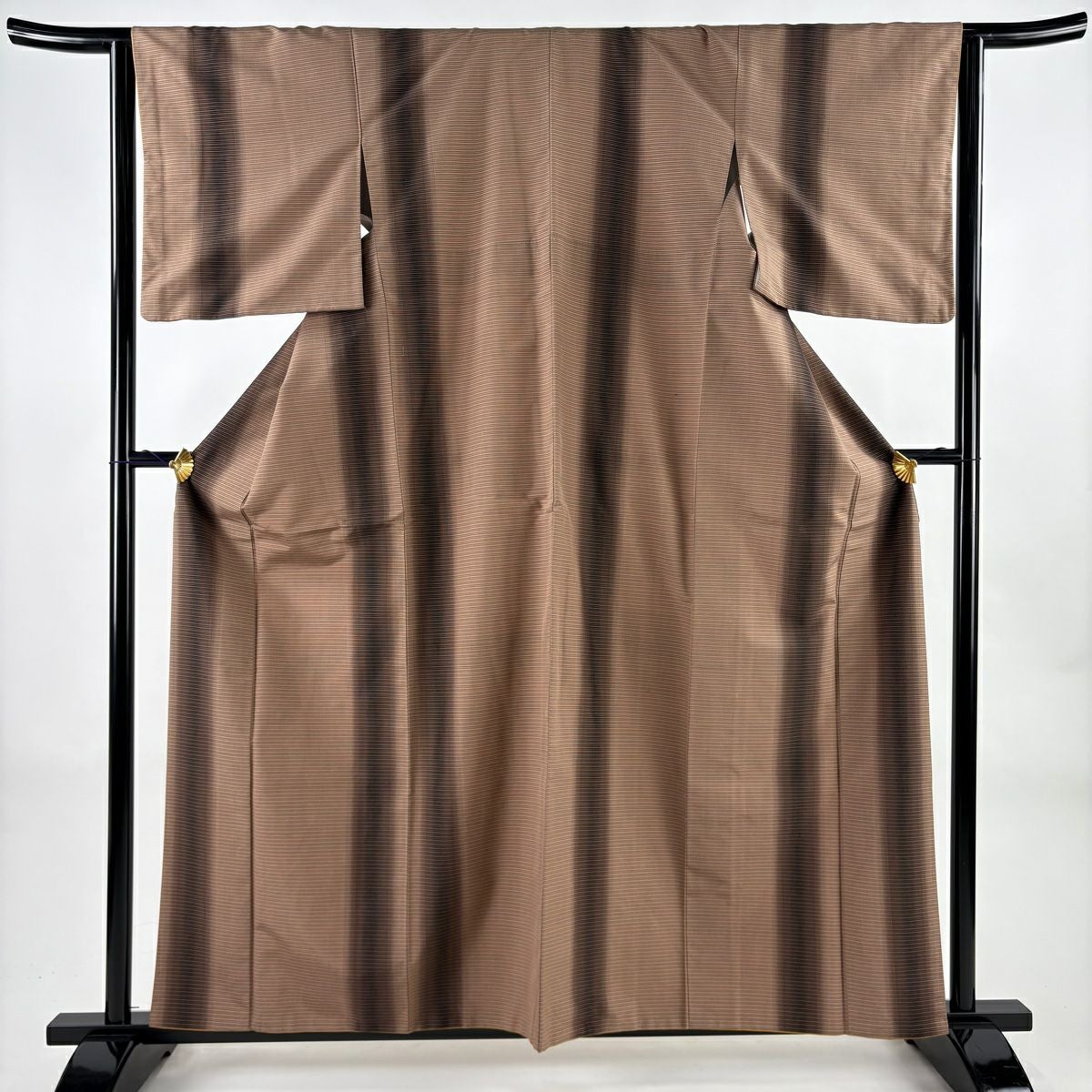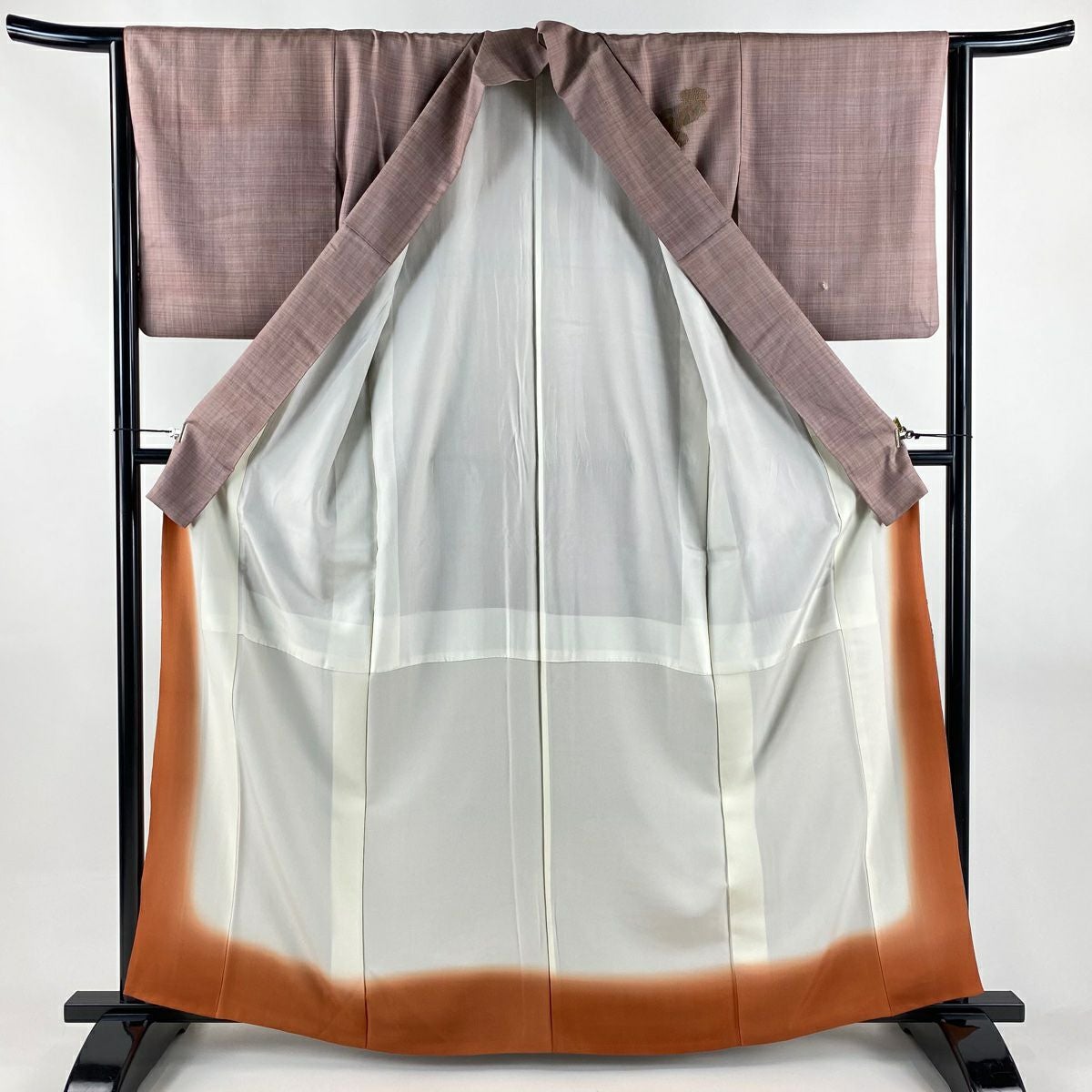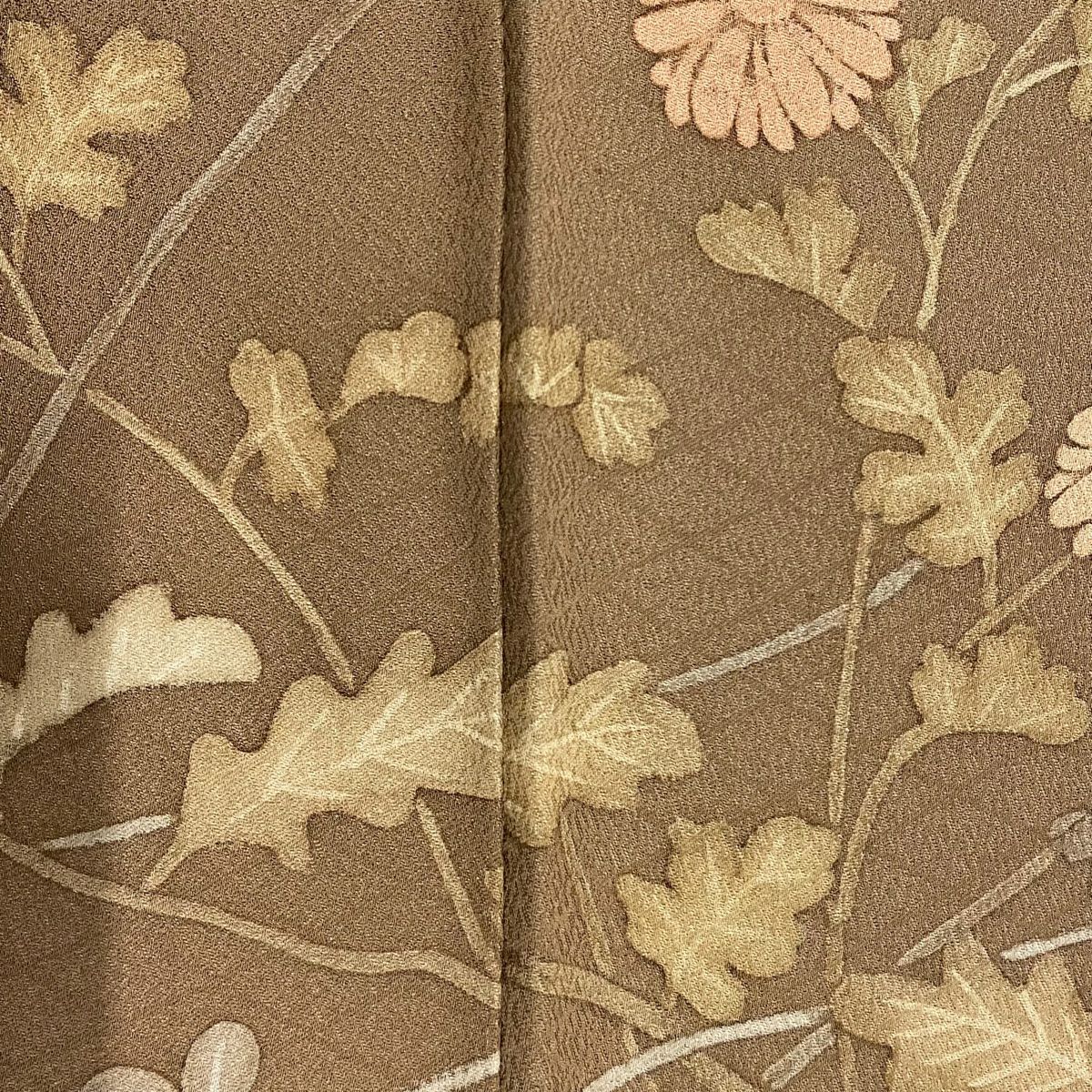 【在庫一掃】 小紋 身丈159.5cm 裄丈63cm S 袷 葉柄 地紋 金彩 ぼかし 茶色 正絹 秀品