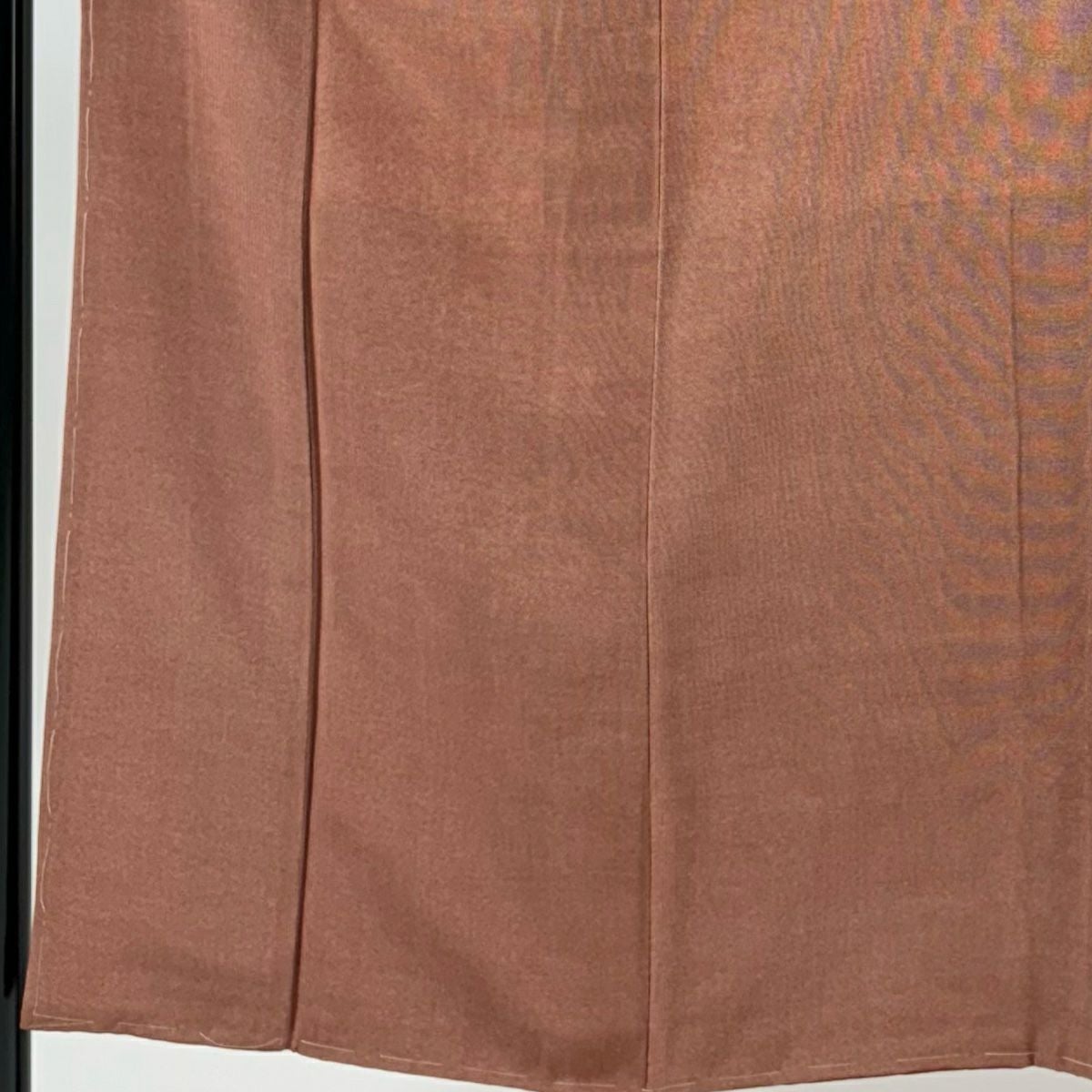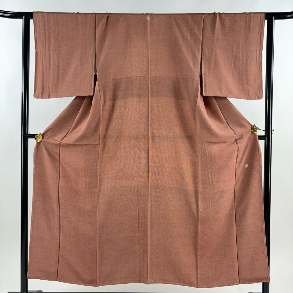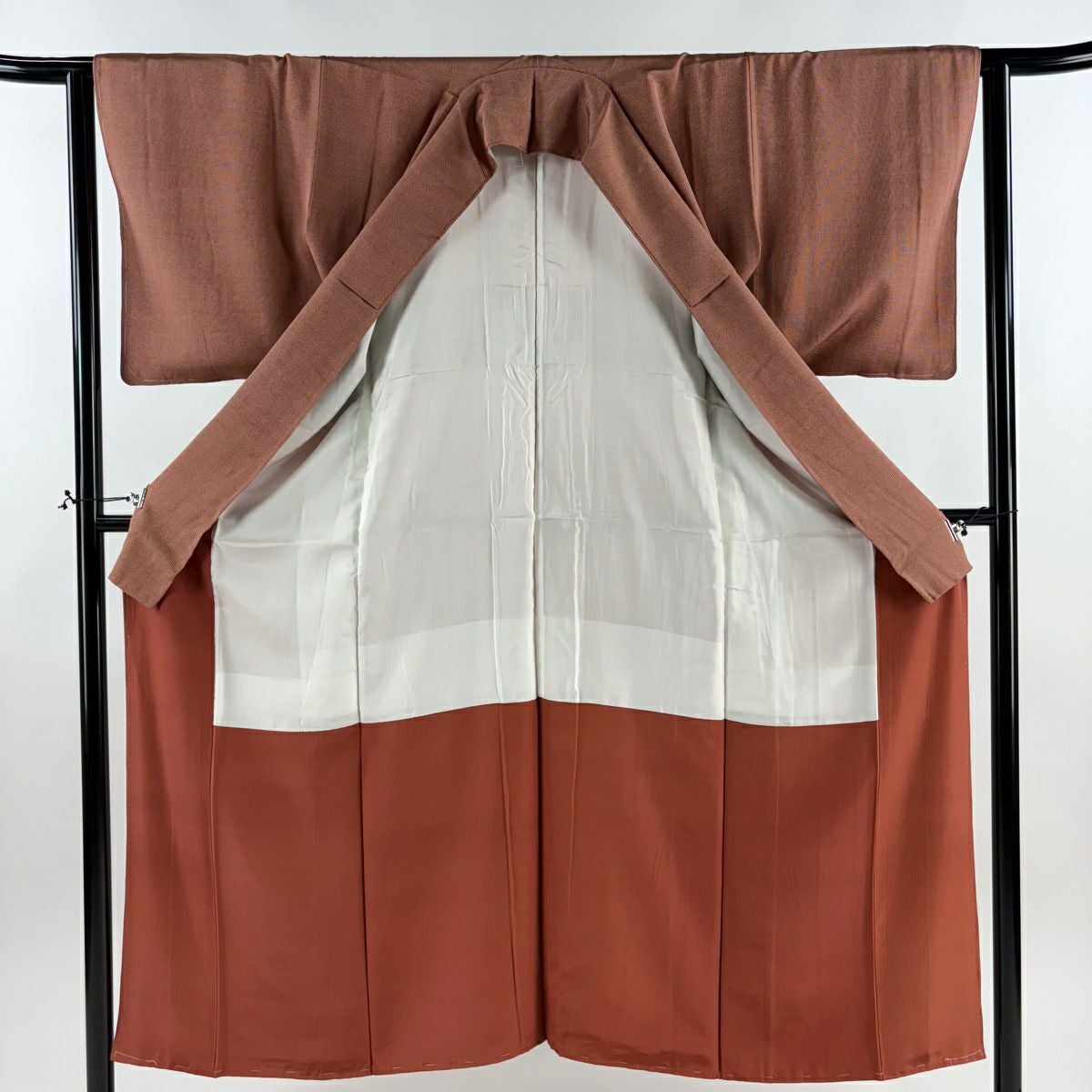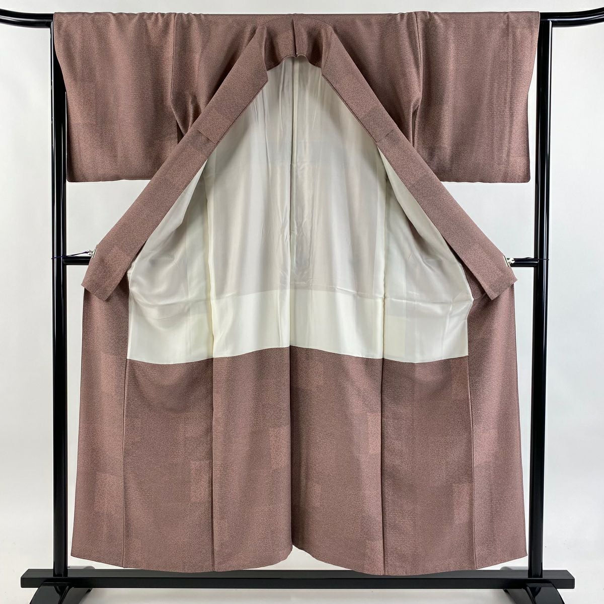 【在庫一掃】 小紋 身丈159.5cm 裄丈63cm S 袷 葉柄 地紋 金彩 ぼかし 茶色 正絹 秀品