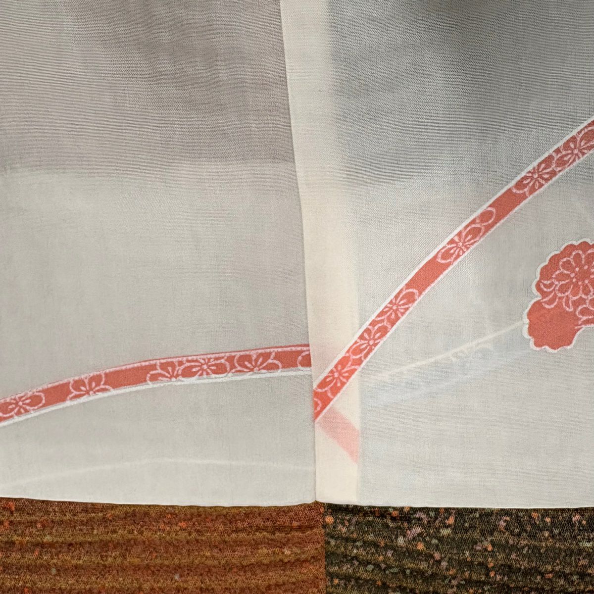 【在庫一掃】 訪問着 身丈156cm 裄丈63.5cm S 袷 扇 桜 金彩 金糸 オレンジ 正絹 秀品