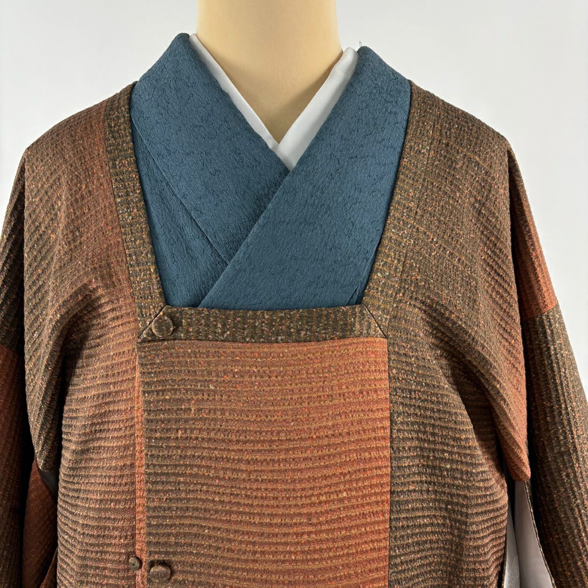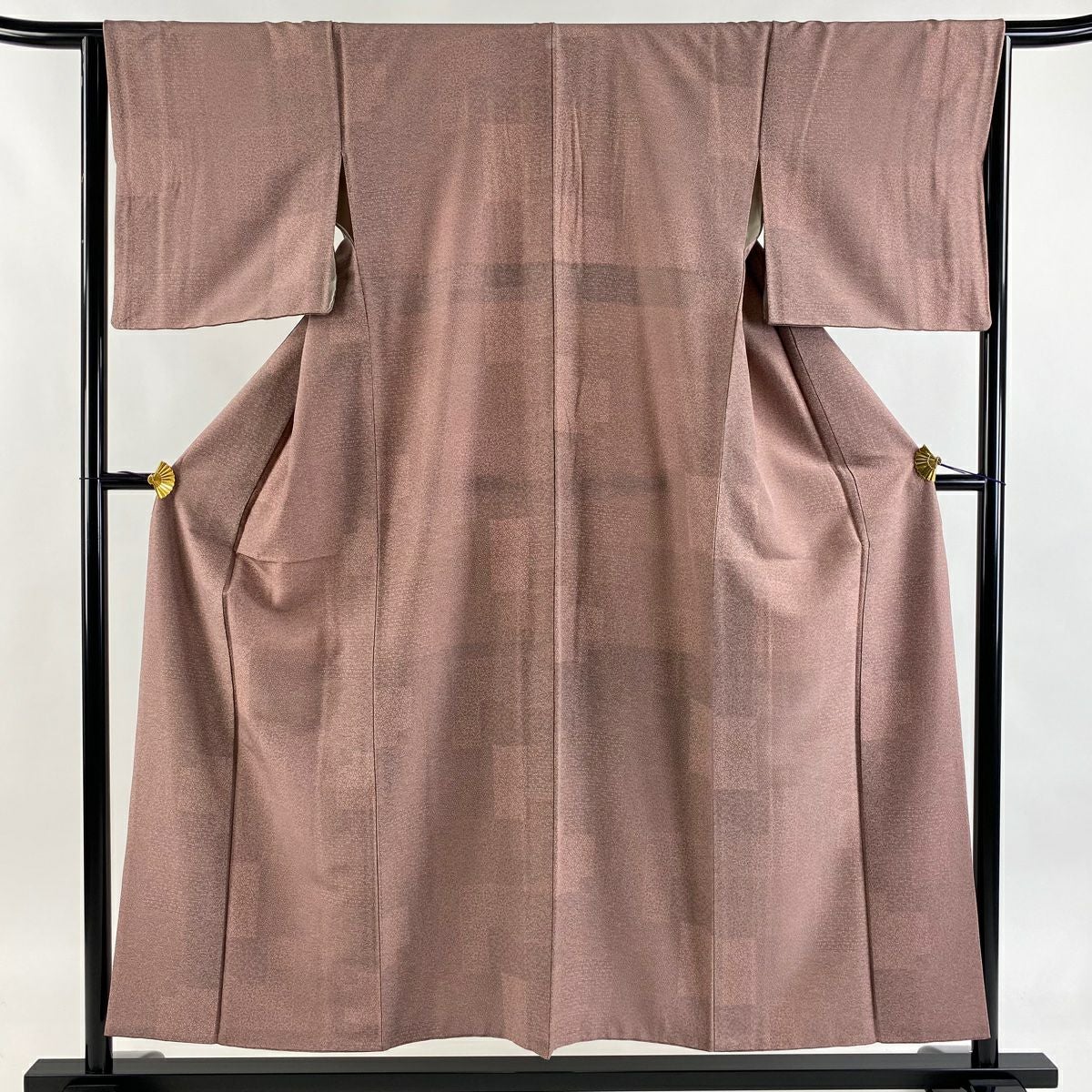 【在庫一掃】 【美品】 紬 身丈159.5cm 裄丈63cm S 袷 バチ衿 幾何学 焦茶色 正絹 秀品