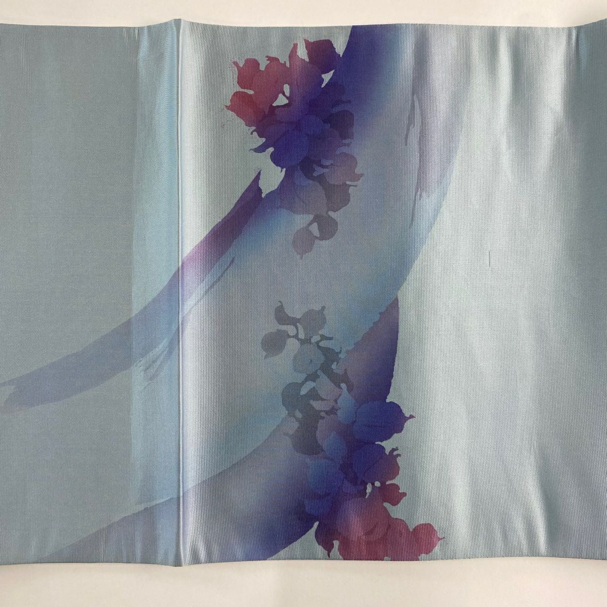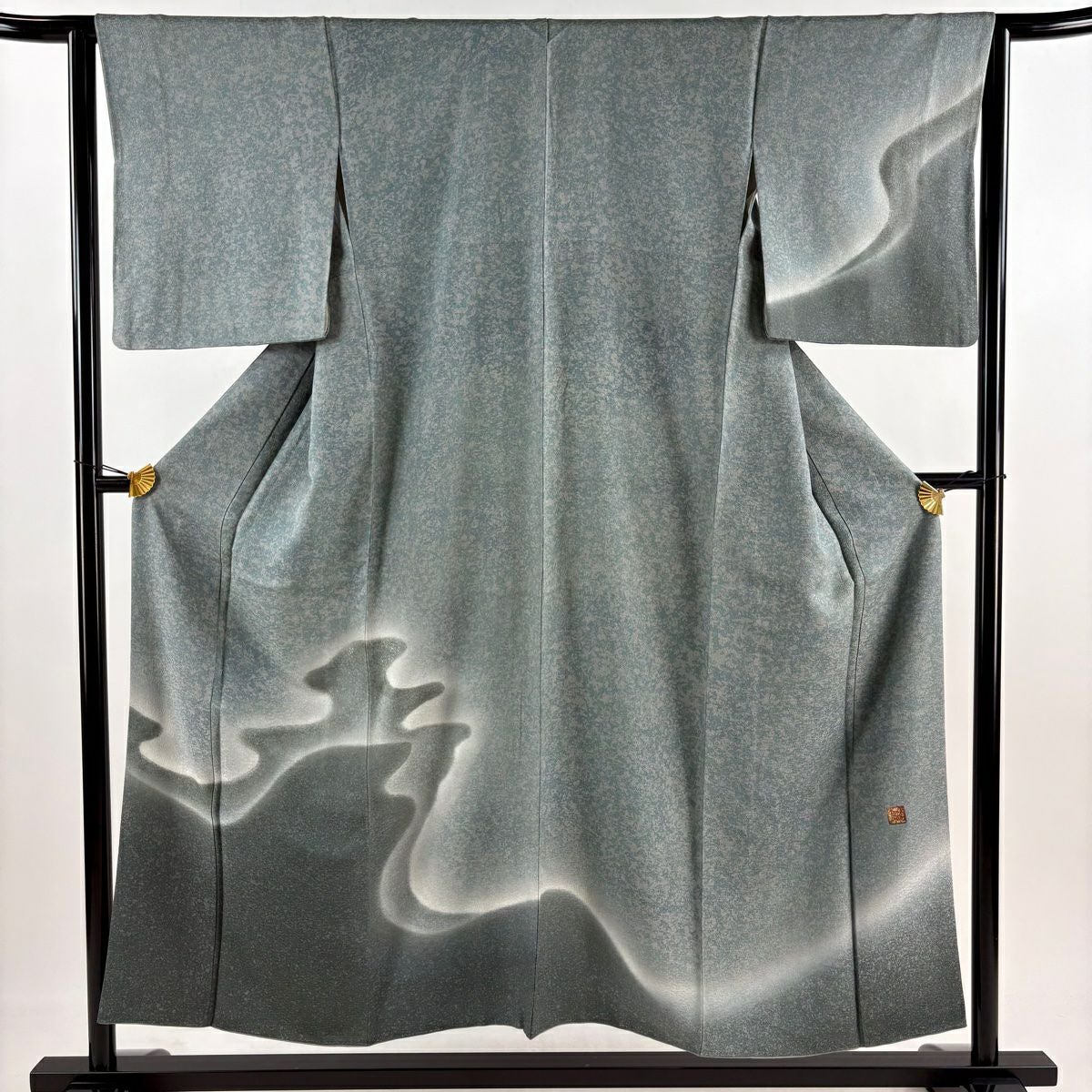 【在庫一掃】 付下げ 身丈151.5cm 裄丈64.5cm M 袷 落款あり 霞 ぼかし 青灰色 正絹 秀品