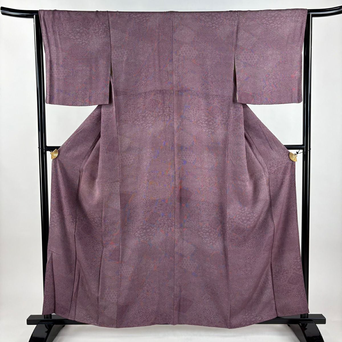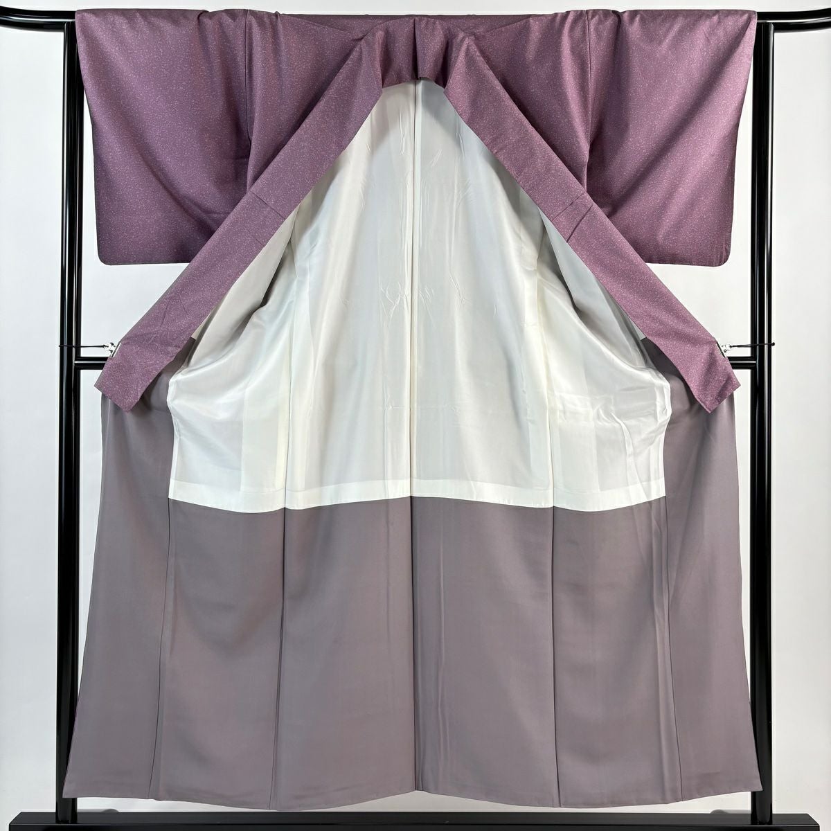 【在庫一掃】 江戸小紋 身丈159cm 裄丈63.5cm S 袷 落款あり 寄せ柄 草花 紫 正絹 秀品
