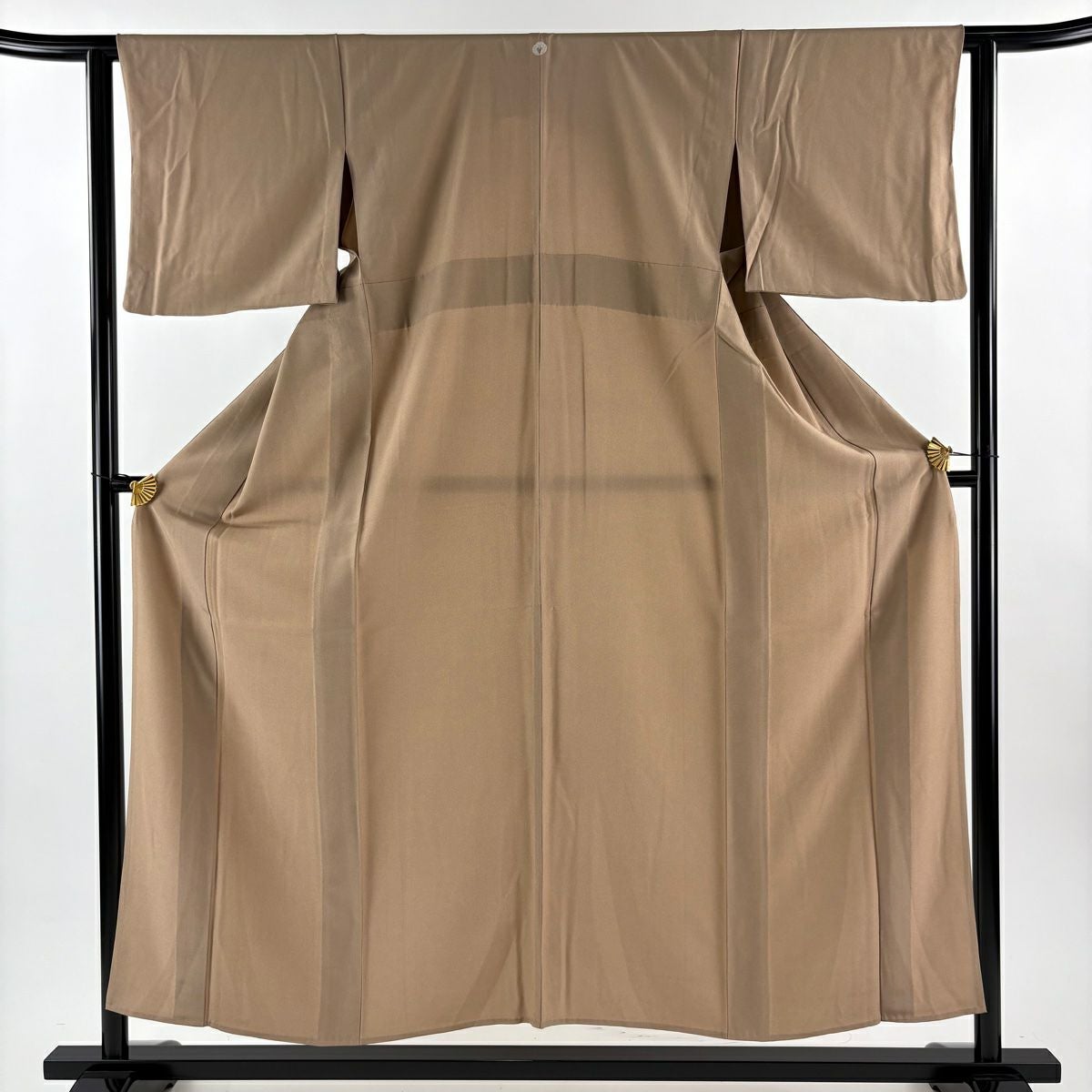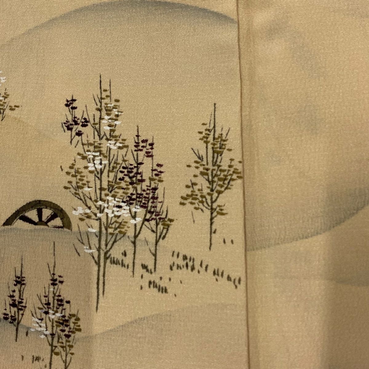 【在庫一掃】 【美品】 小紋 身丈156cm 裄丈65cm M 袷 片輪車 樹木 ベージュ 正絹 秀品