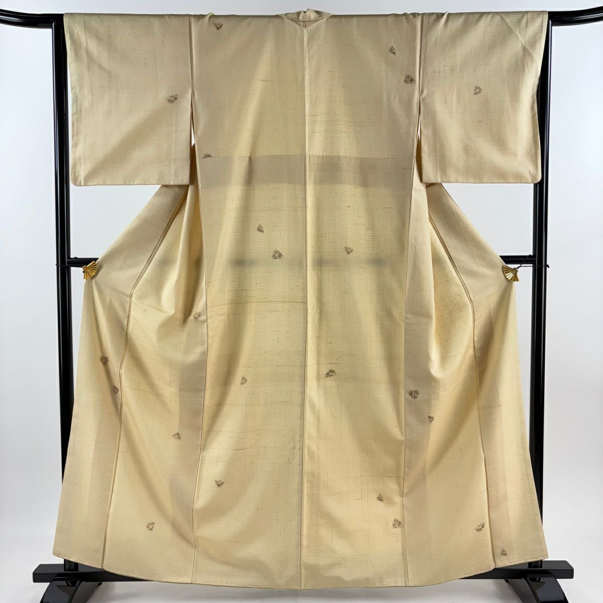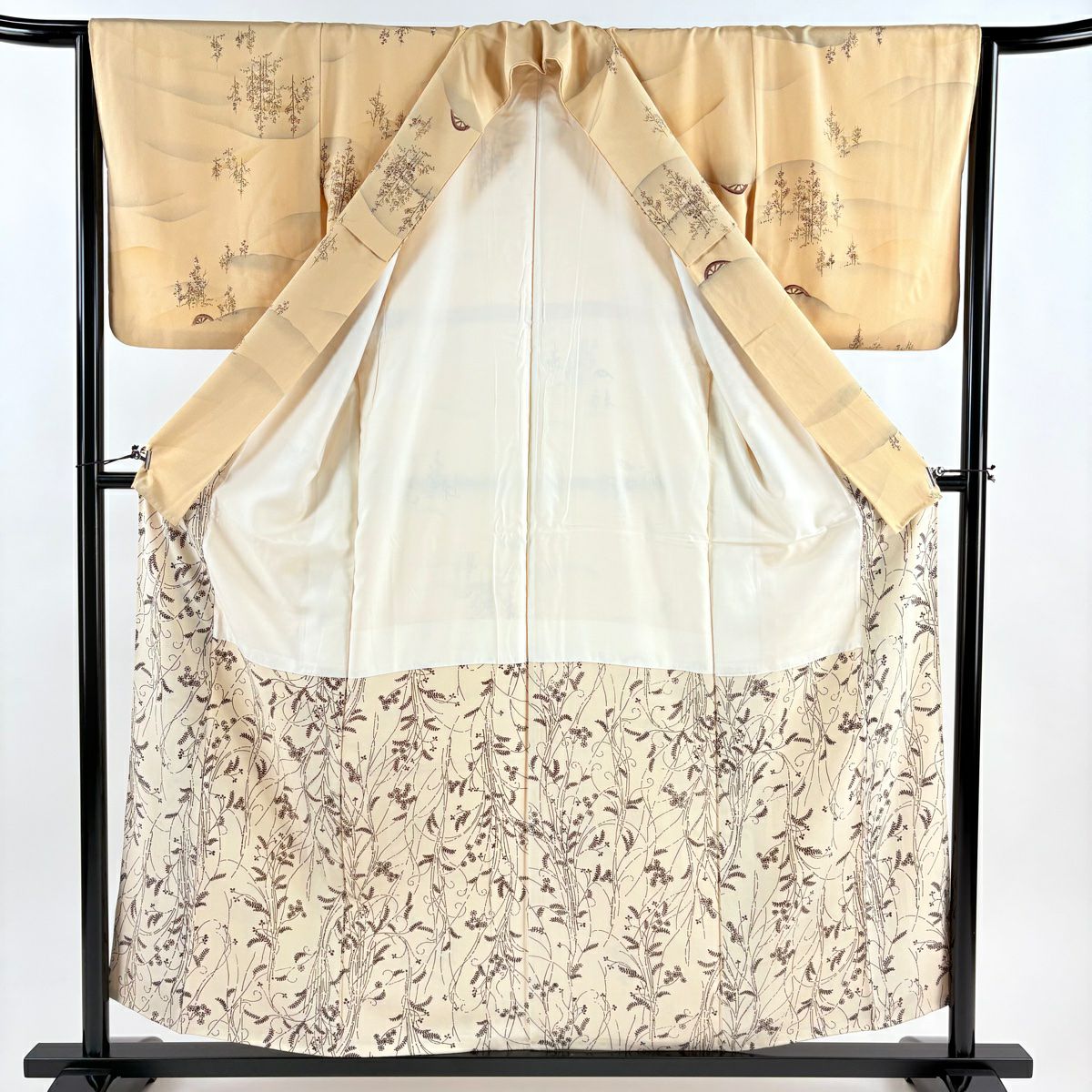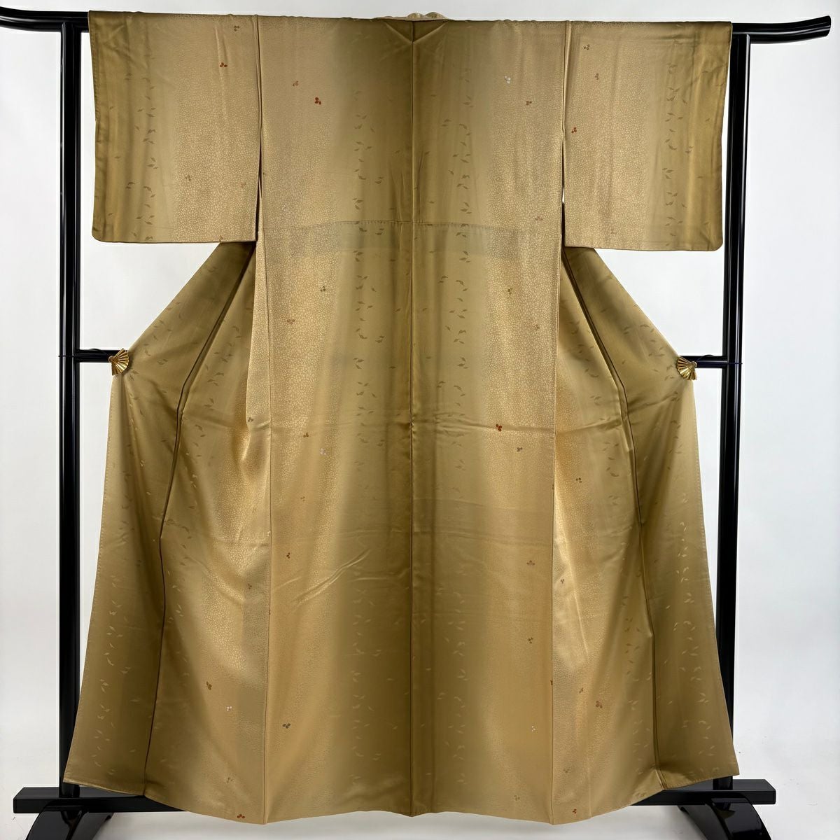 【在庫一掃】 小紋 身丈161.5cm 裄丈64.5cm M 袷 紬地 草花 金彩 ベージュ 正絹 秀品