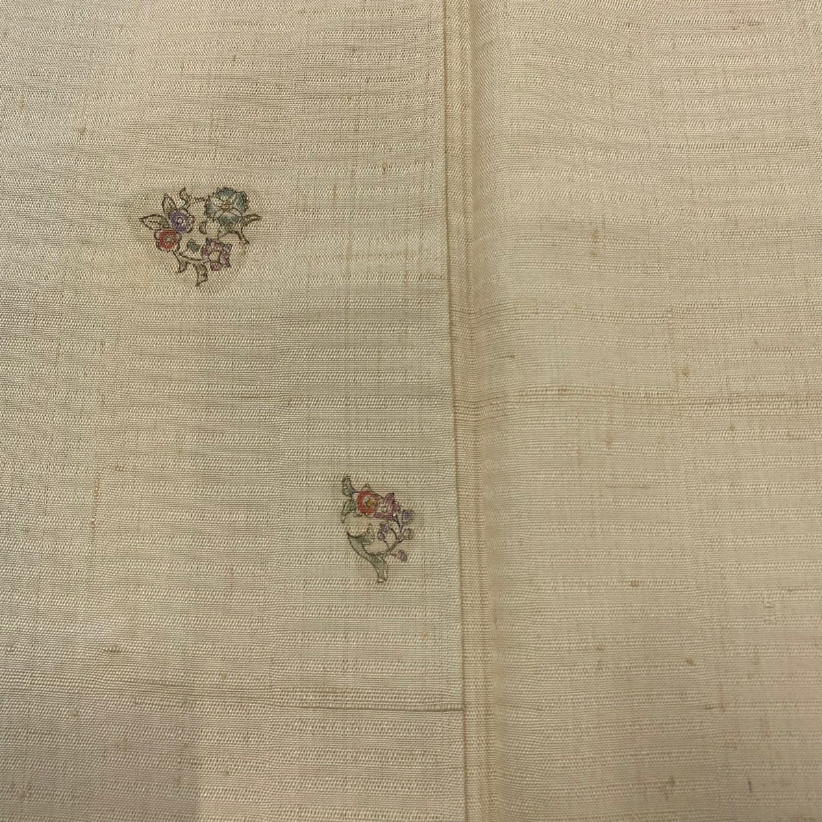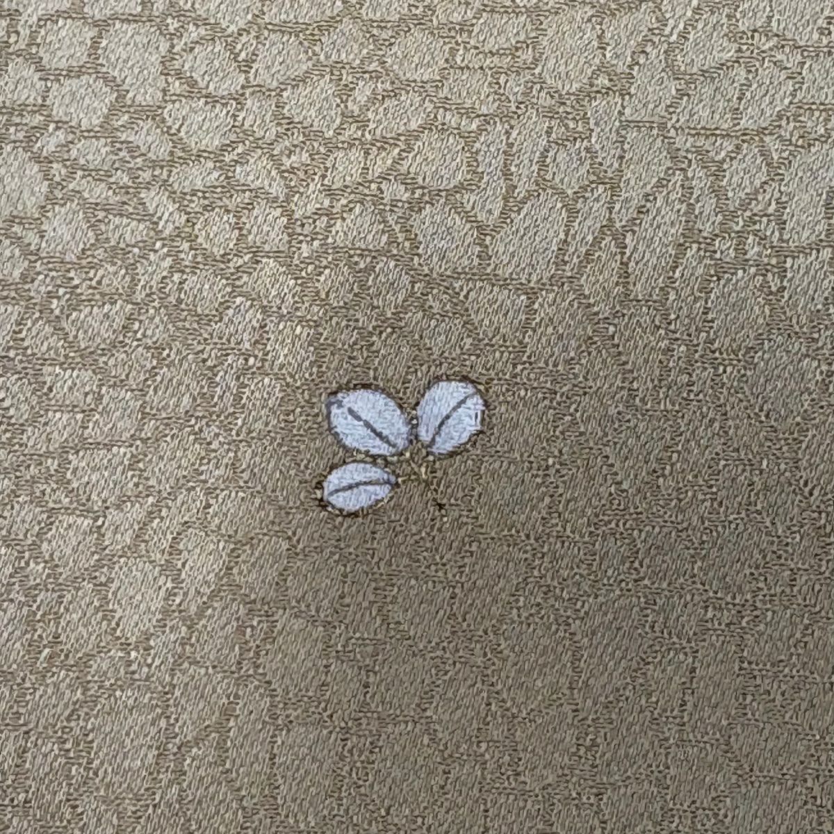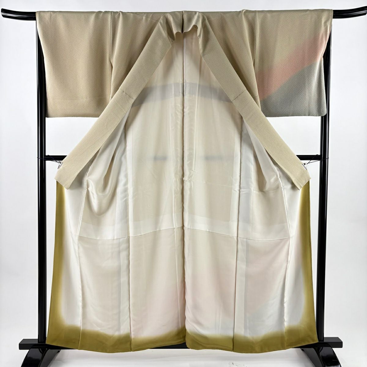【在庫一掃】 小紋 身丈161.5cm 裄丈64.5cm M 袷 紬地 草花 金彩 ベージュ 正絹 秀品