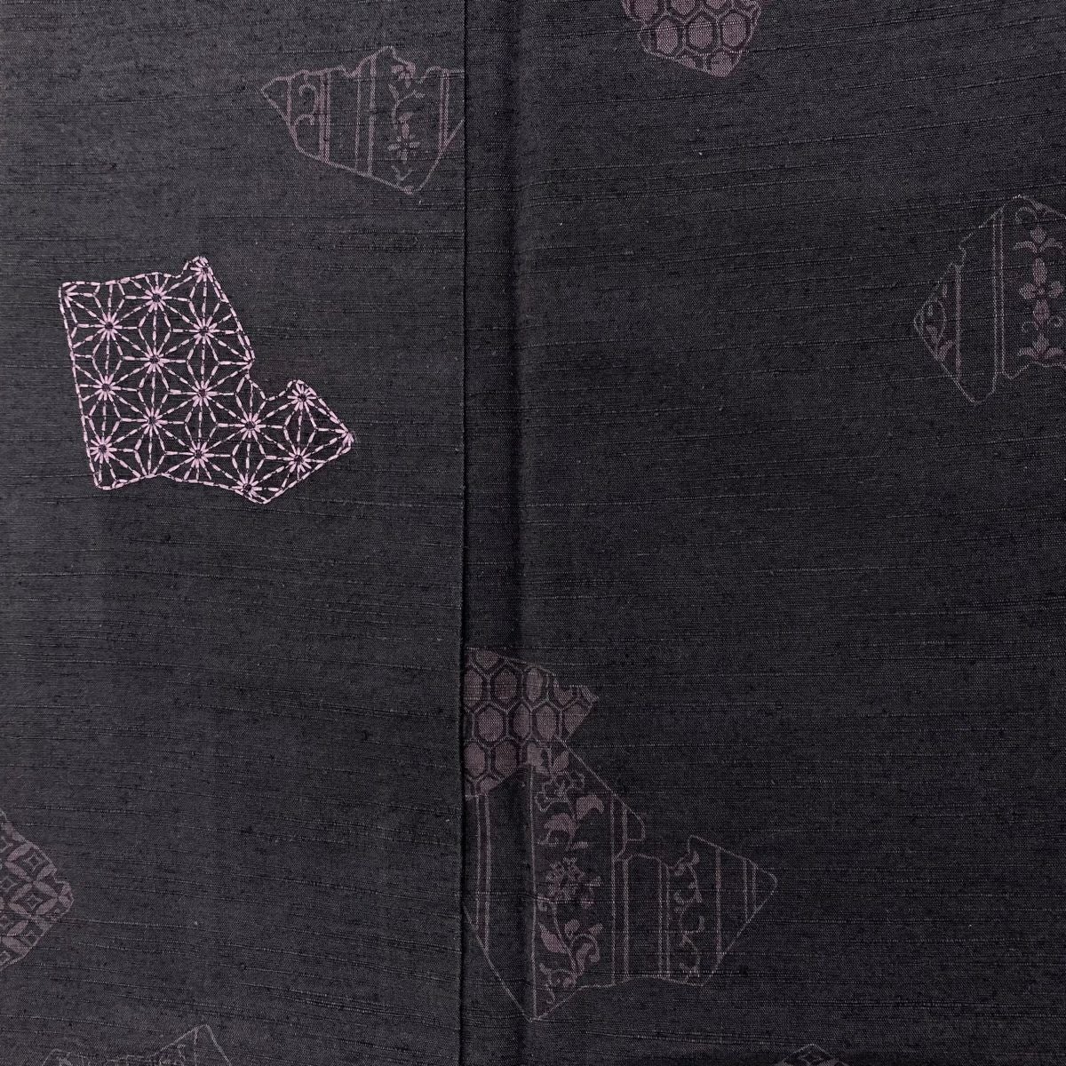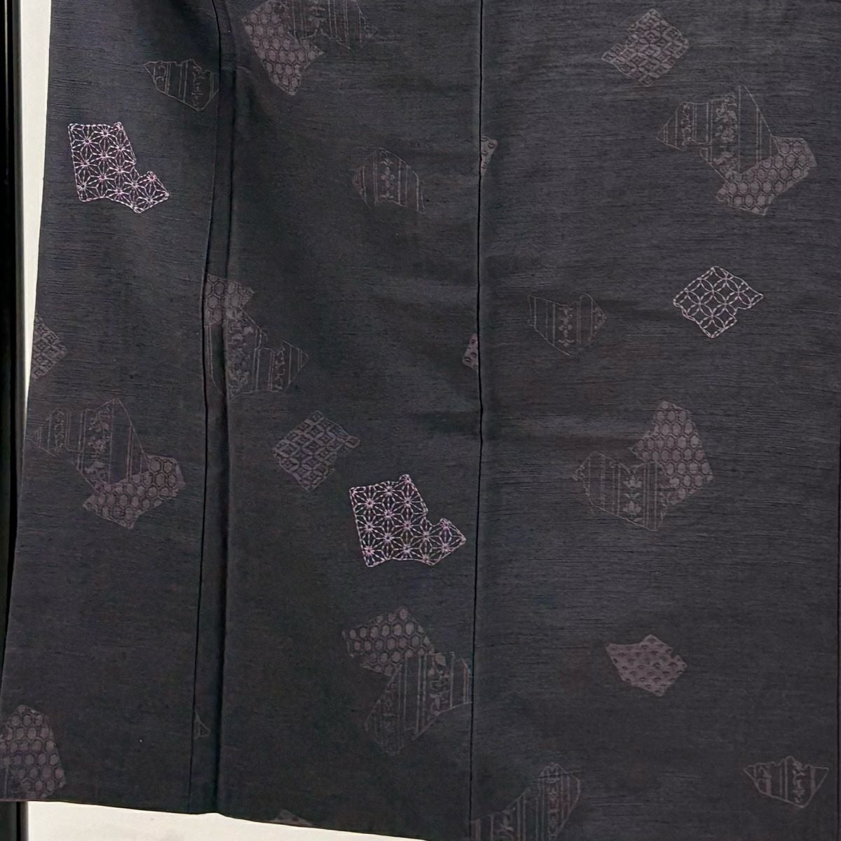 【在庫一掃】 付下げ 身丈156.5cm 裄丈62cm S 袷 紬地 樹木 幾何学模様 黒灰 正絹 秀品