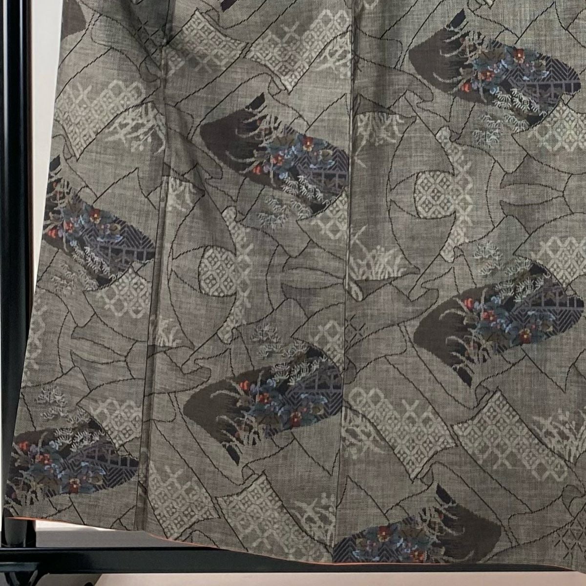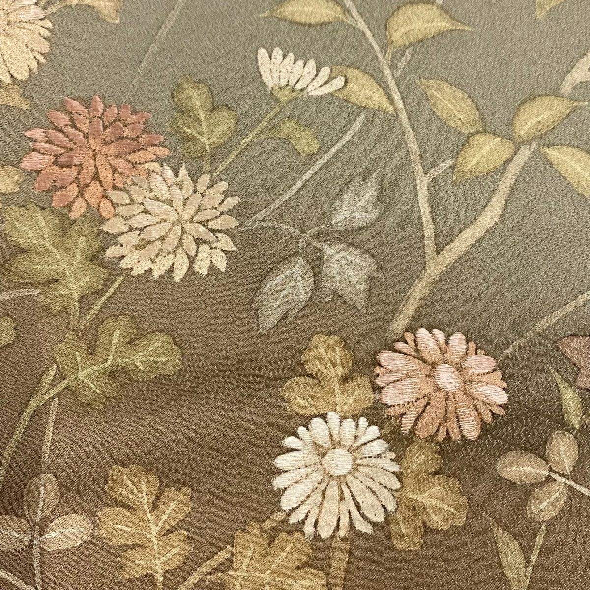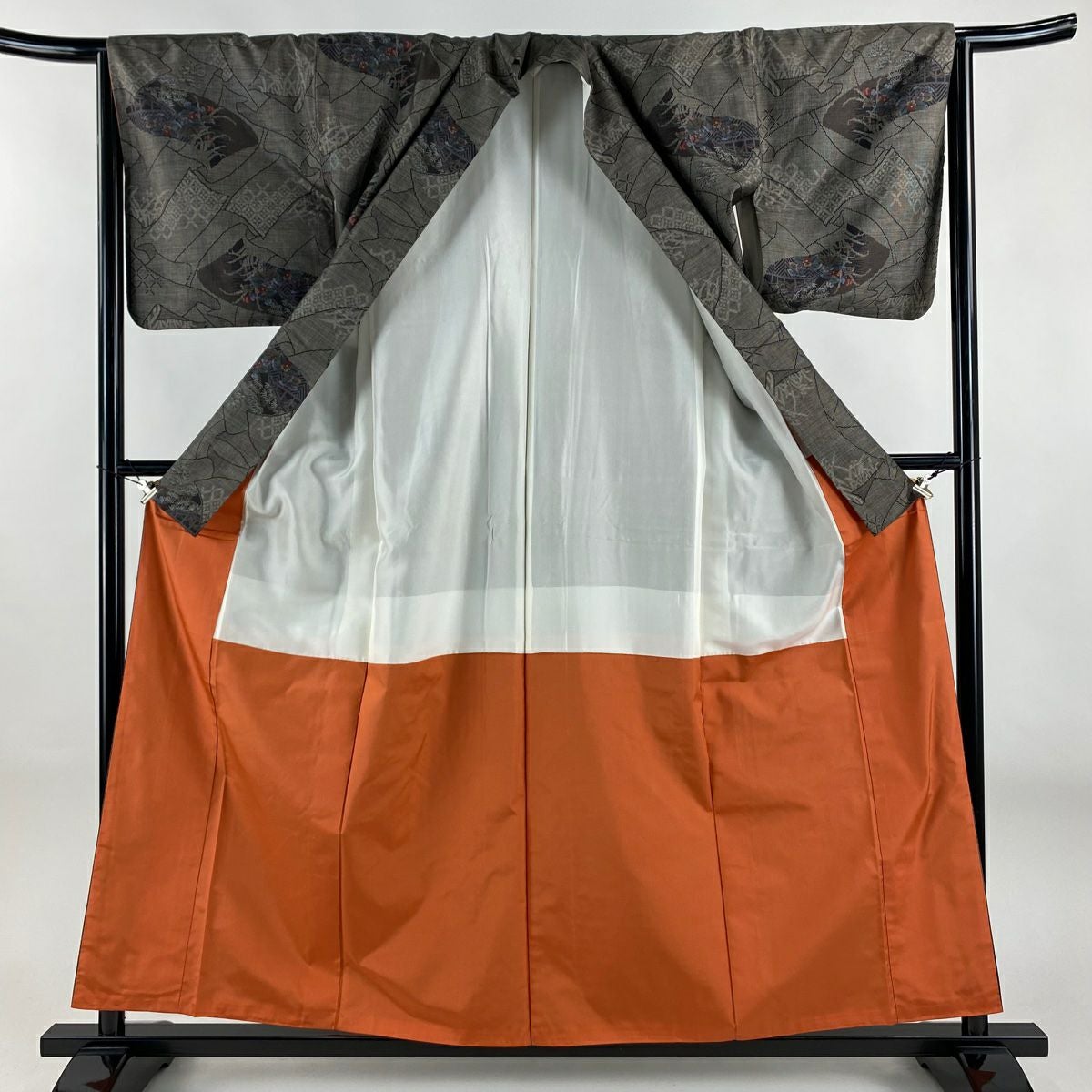 【在庫一掃】 訪問着 身丈156cm 裄丈62cm S 袷 秋草 地紋 刺繍 染め分け 灰茶 正絹 秀品