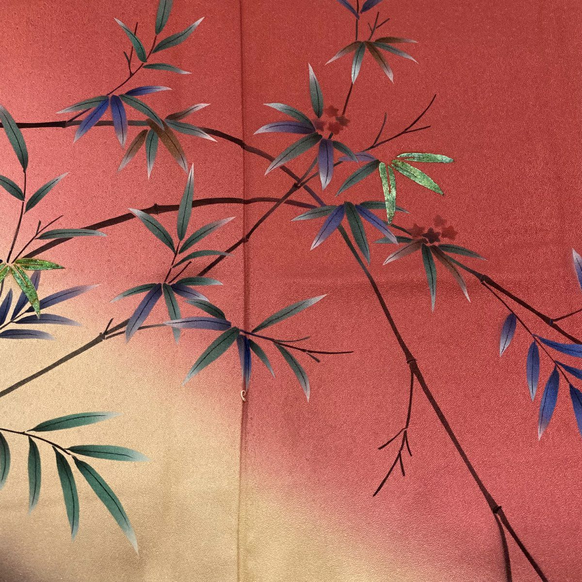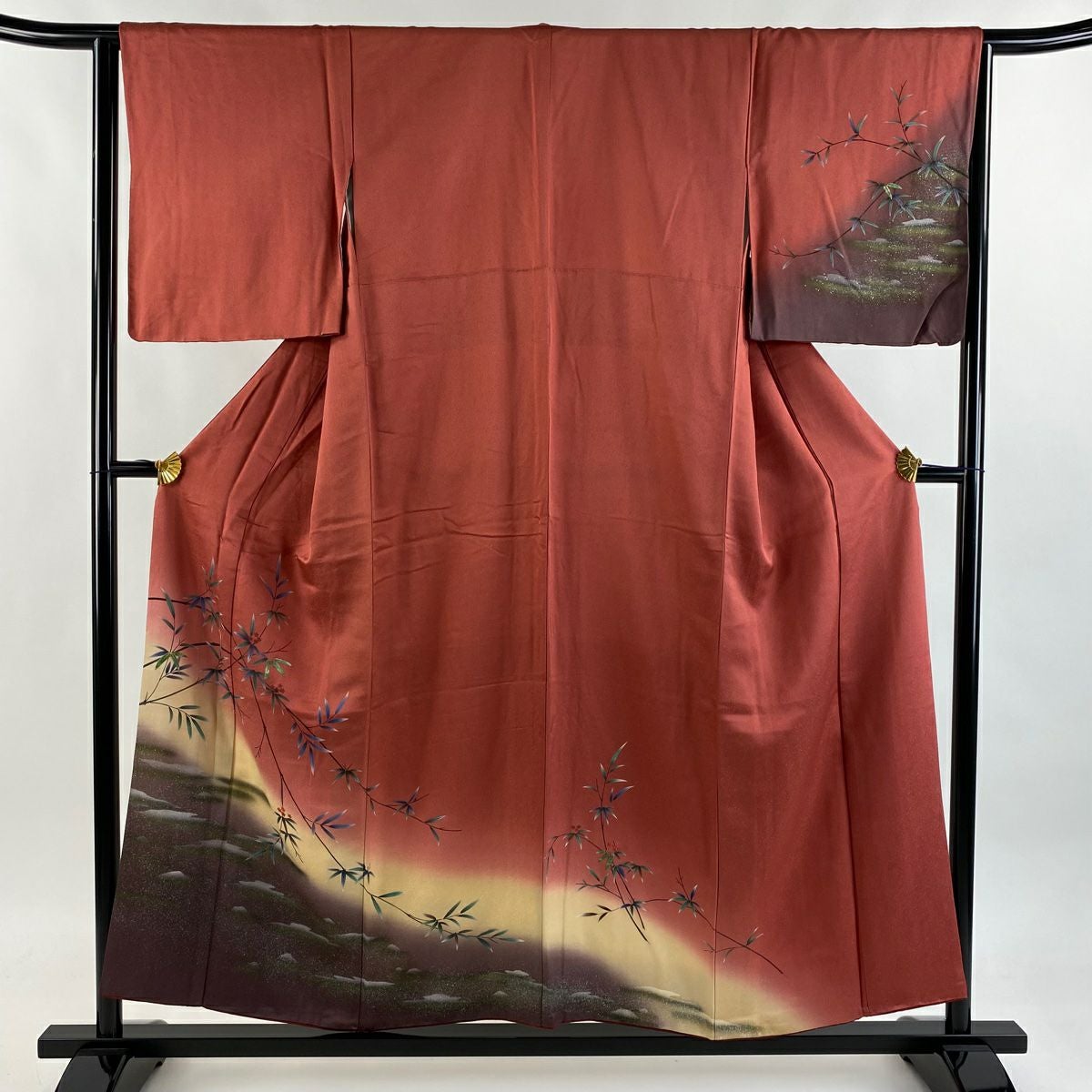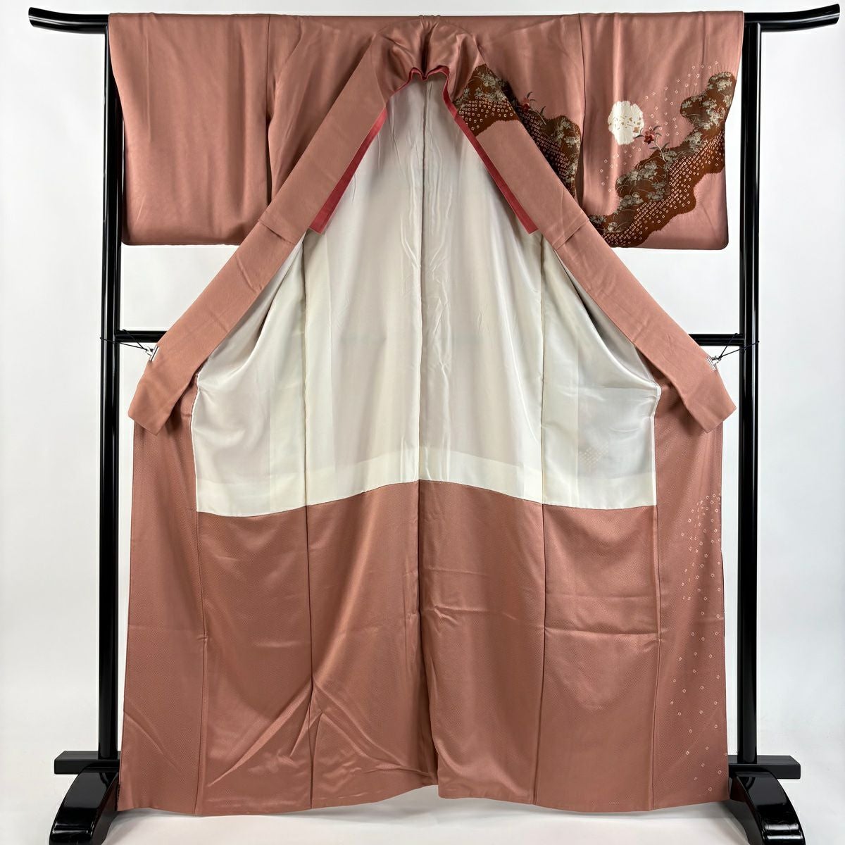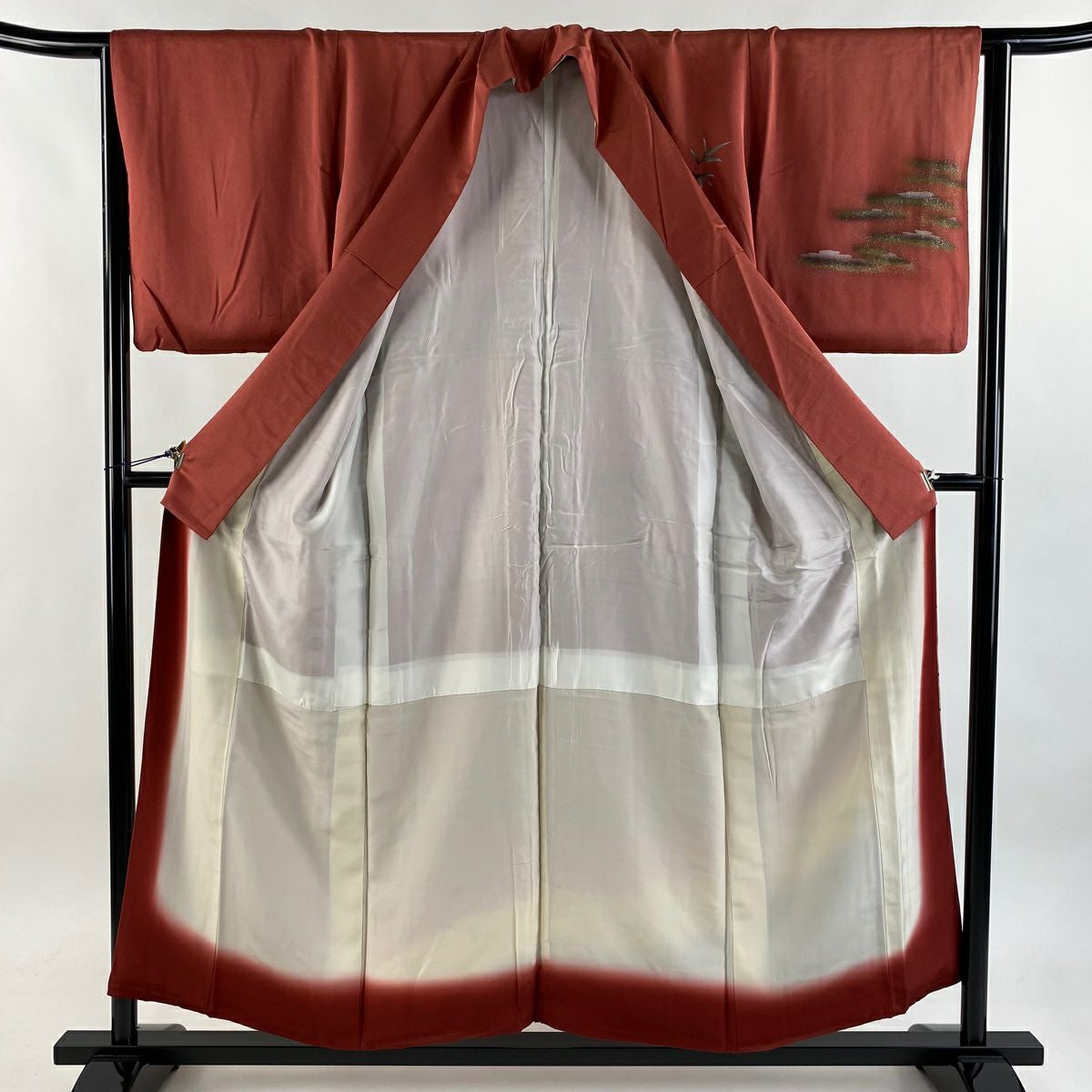 【在庫一掃】 訪問着 身丈157.5cm 裄丈64.5cm M 袷 花束 蝶 金彩 ぼかし 赤茶 正絹 秀品