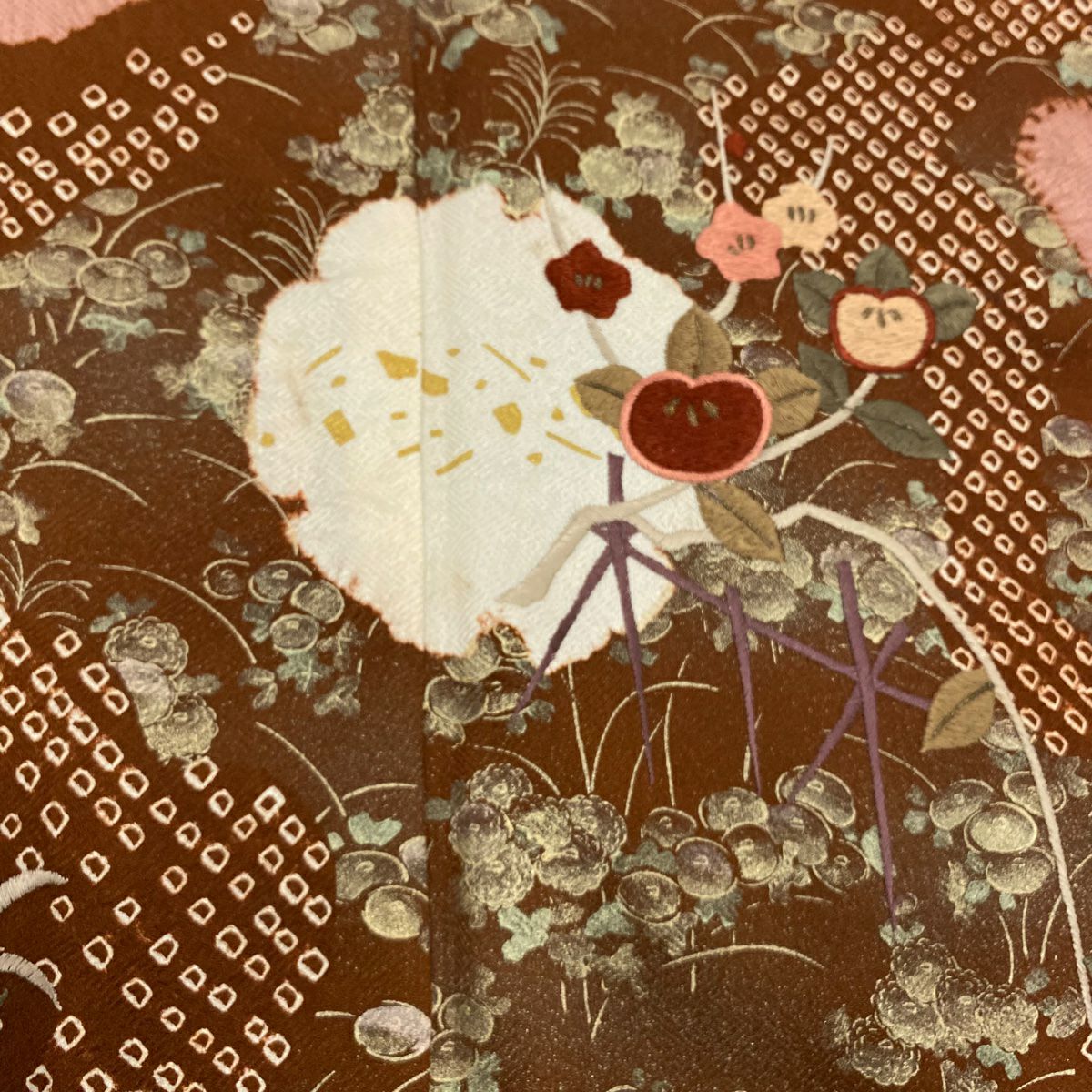 【在庫一掃】 付下げ 身丈163.5cm 裄丈62cm S 袷 紬地 鳥 草花 刺繍 小豆色 正絹 秀品