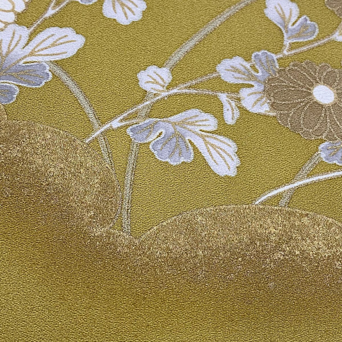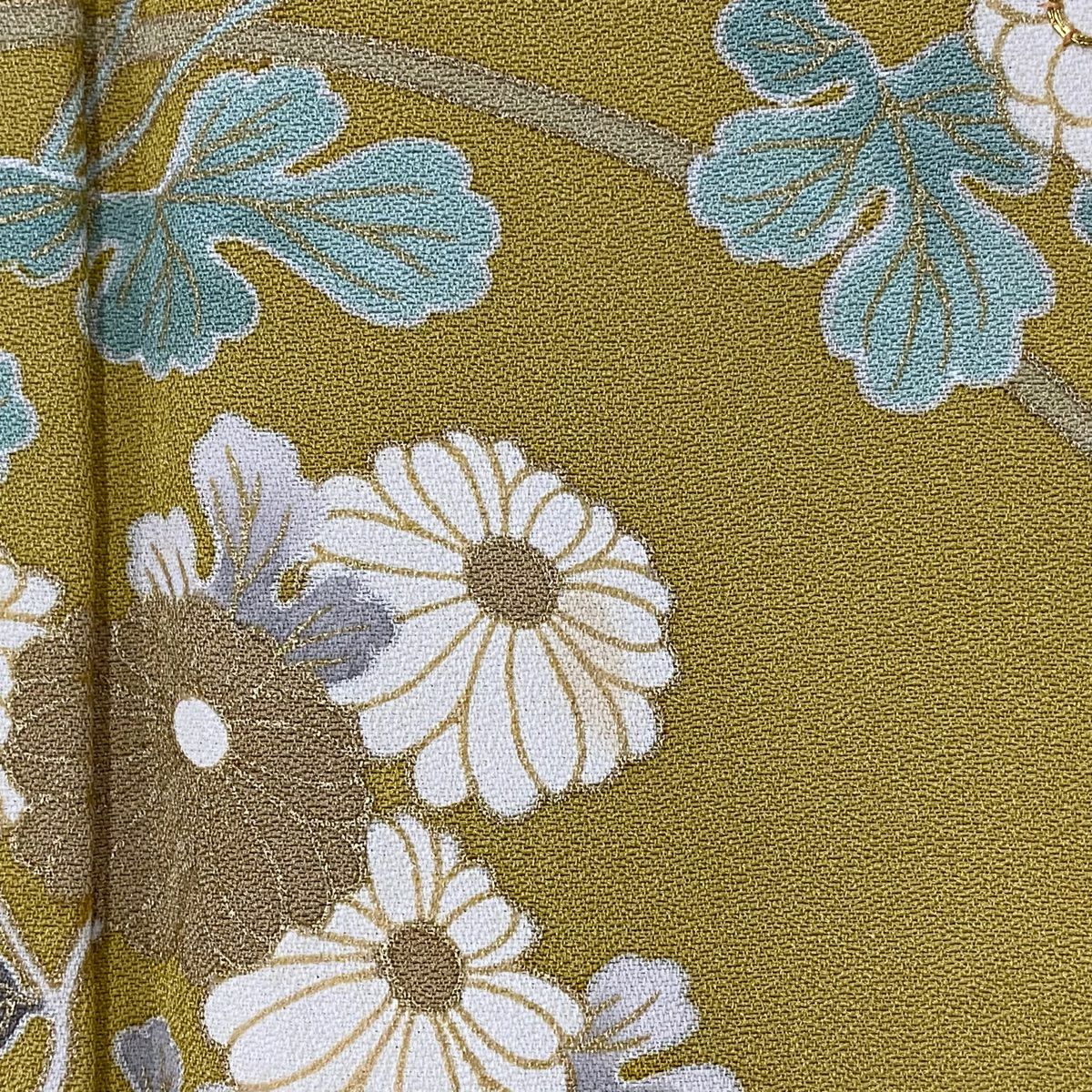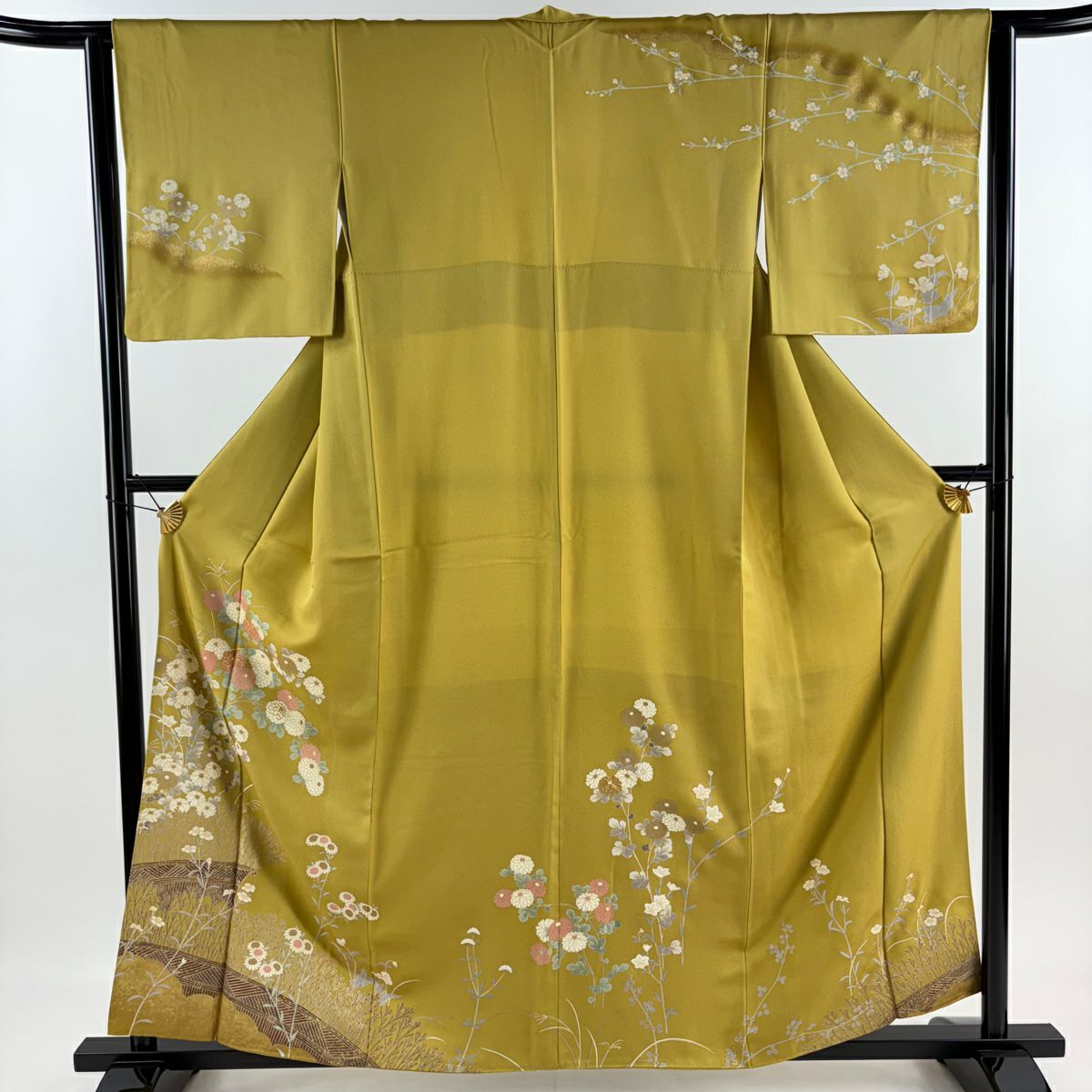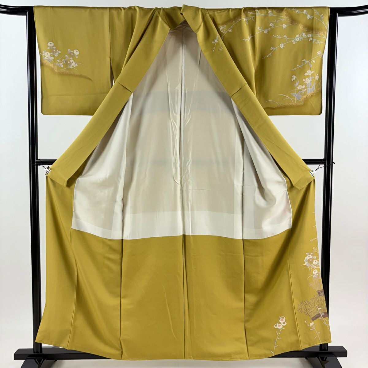 【在庫一掃】 訪問着 身丈159cm 裄丈62.5cm S 袷 菊 柴垣 金糸 金彩 からし色 正絹 秀品
