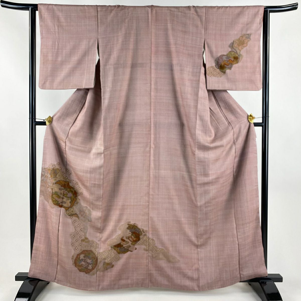【在庫一掃】 訪問着 身丈165cm 裄丈64.5cm M 袷 秋草 霞 刺繍 絞り ピンク 正絹 秀品