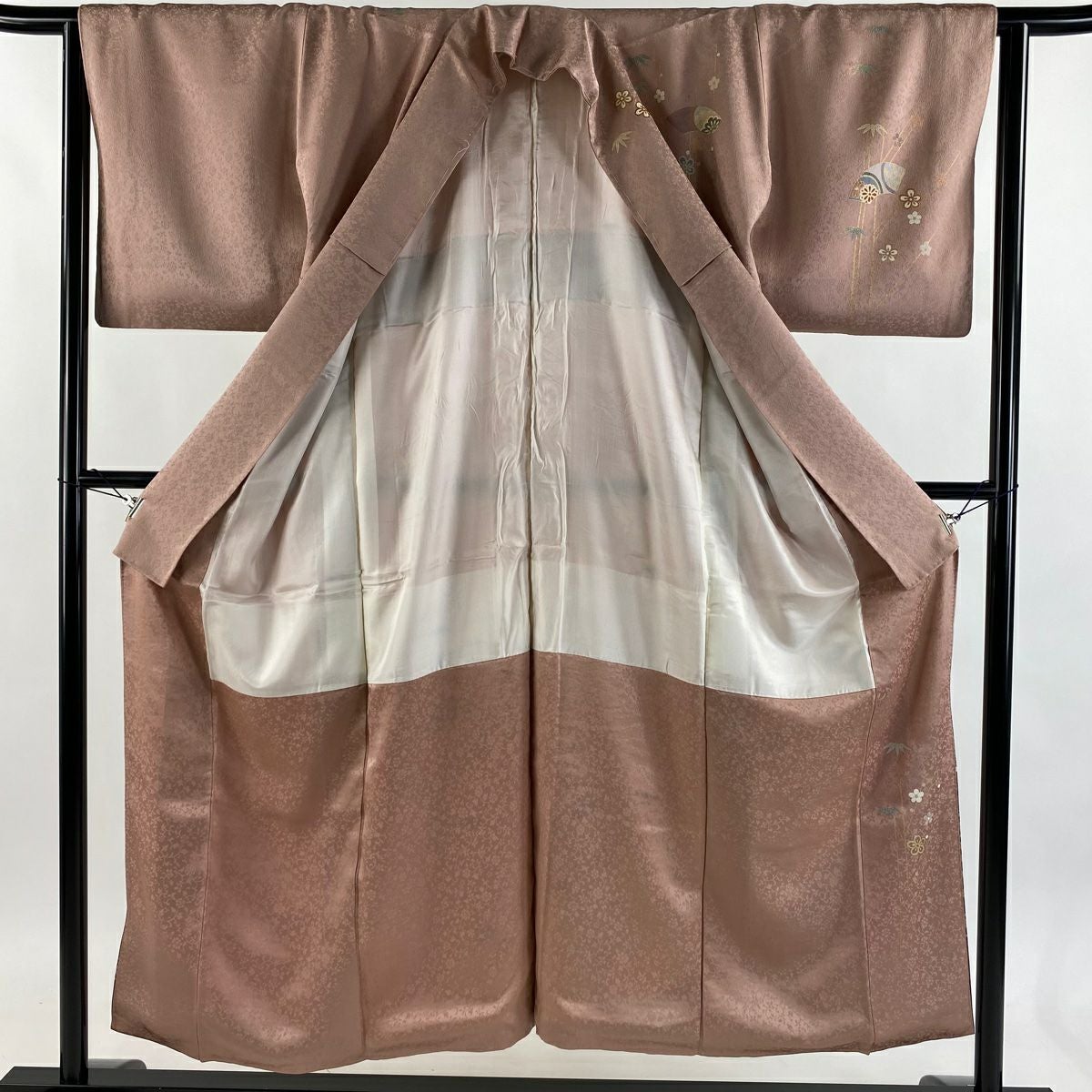 【在庫一掃】 訪問着 身丈160.5cm 裄丈64.5cm M 袷 御所車 草花 金彩 金糸 茶色 正絹 秀品