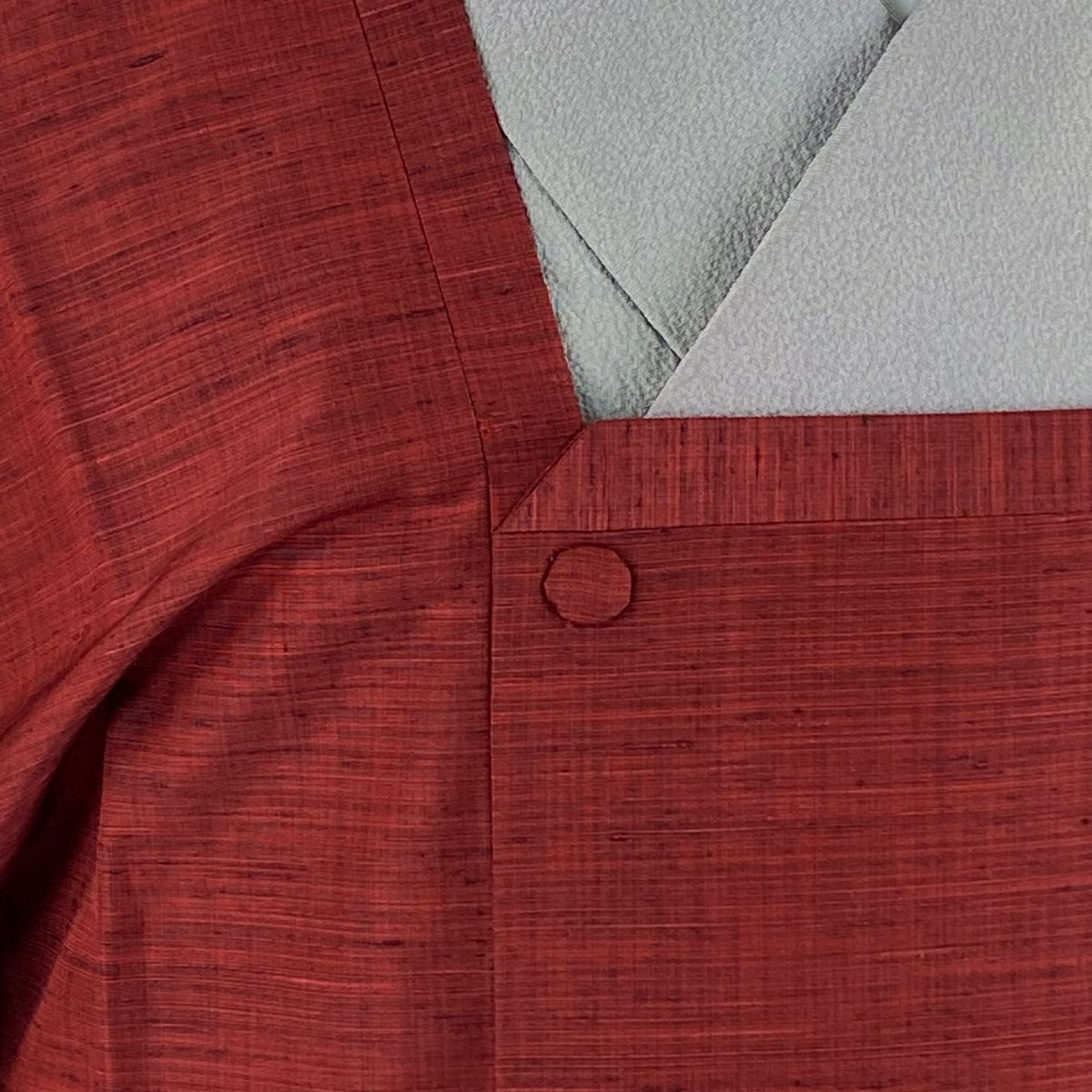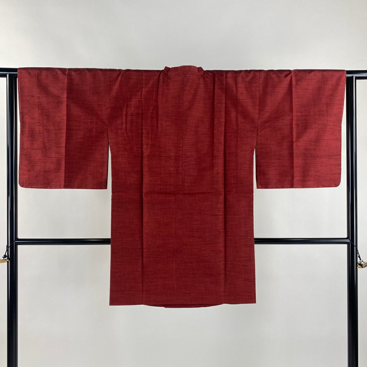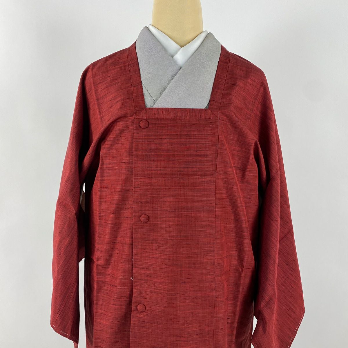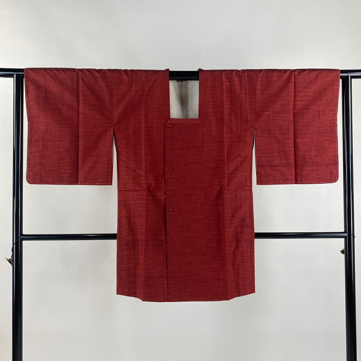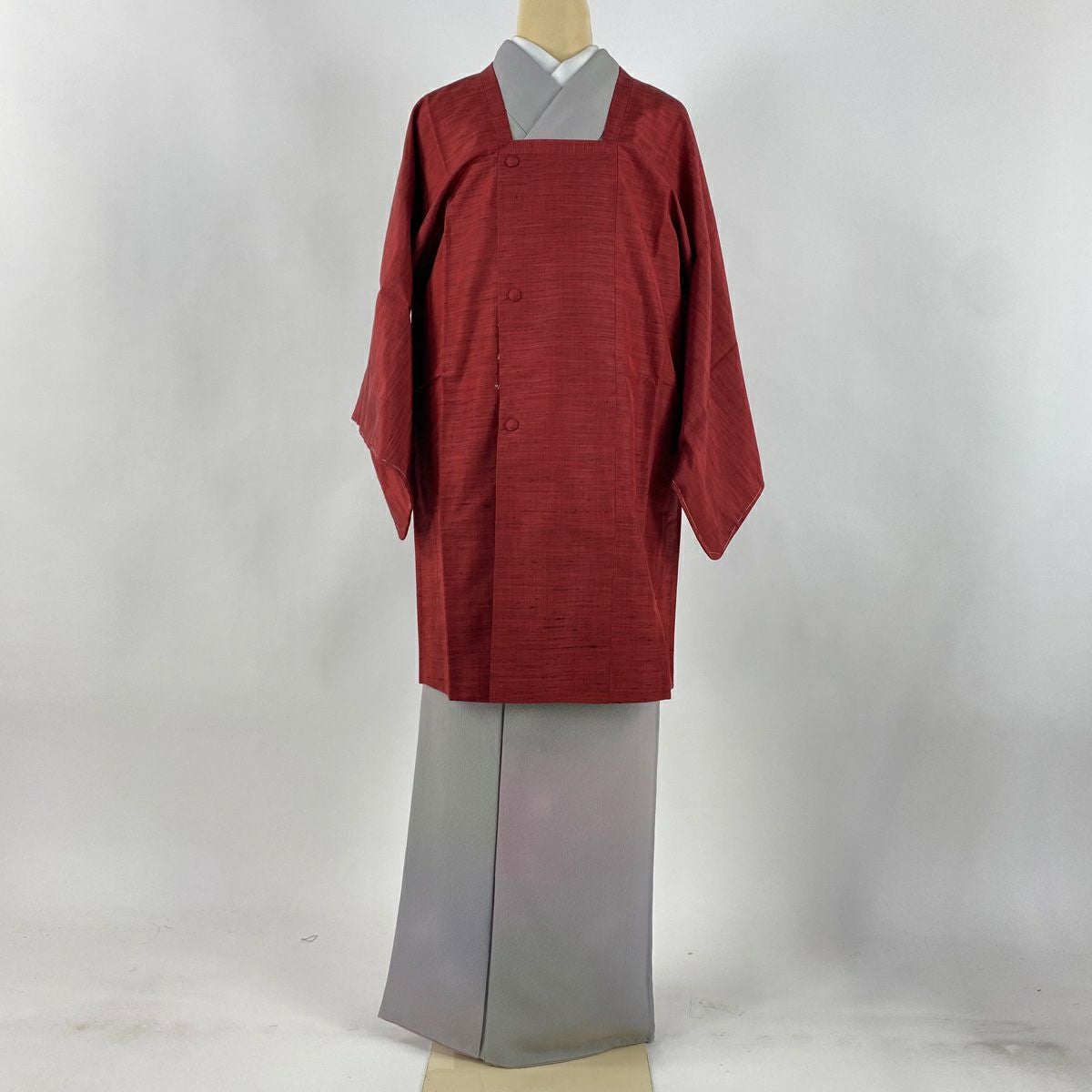 【在庫一掃】 【美品】 道行 身丈91cm 裄丈65cm M 和装コート 角衿 紬地 縞 茜色 正絹 秀品
