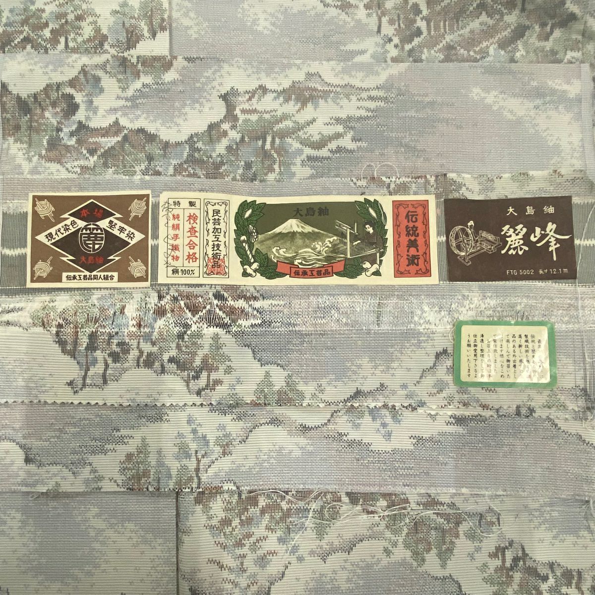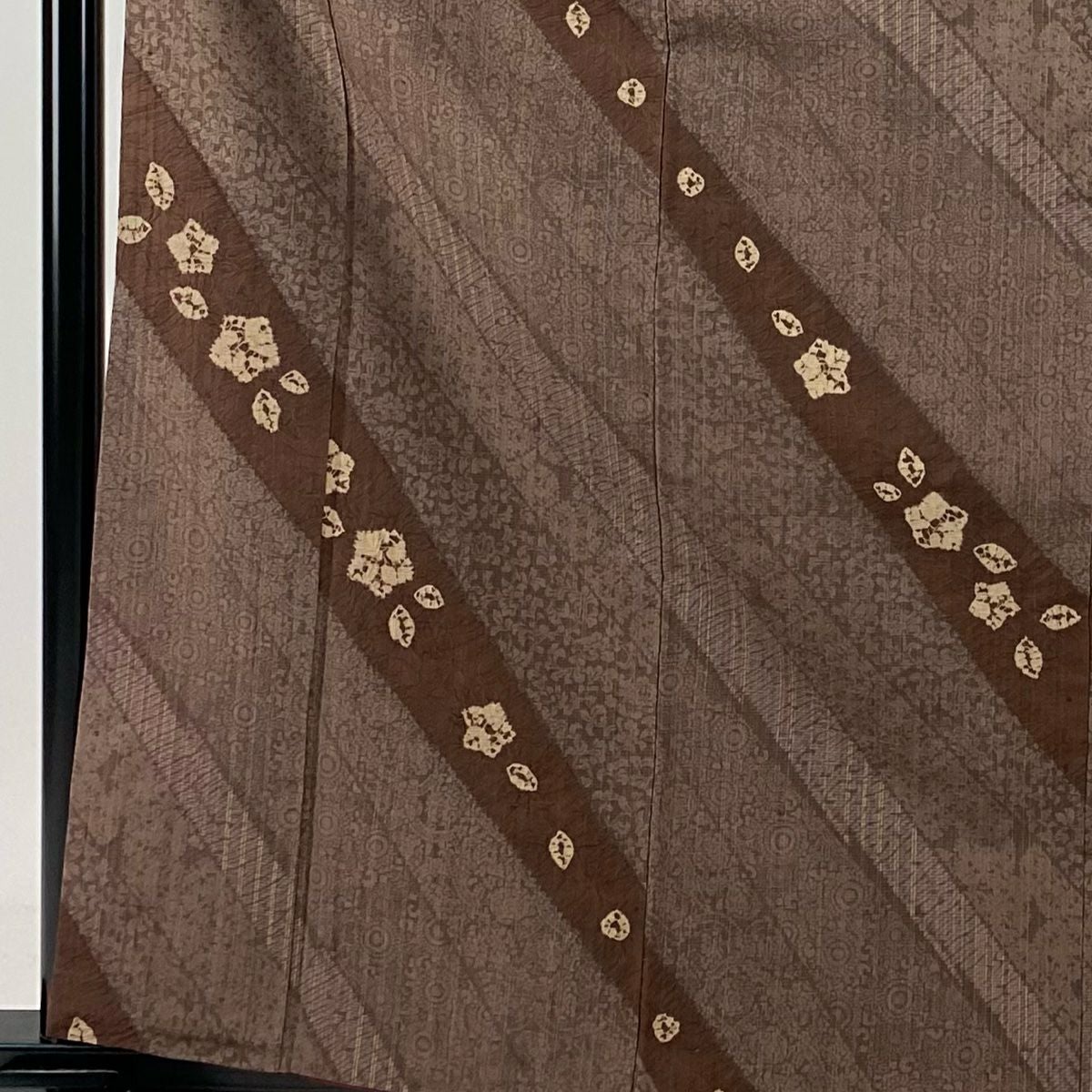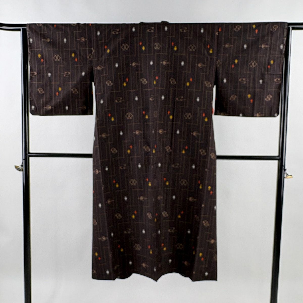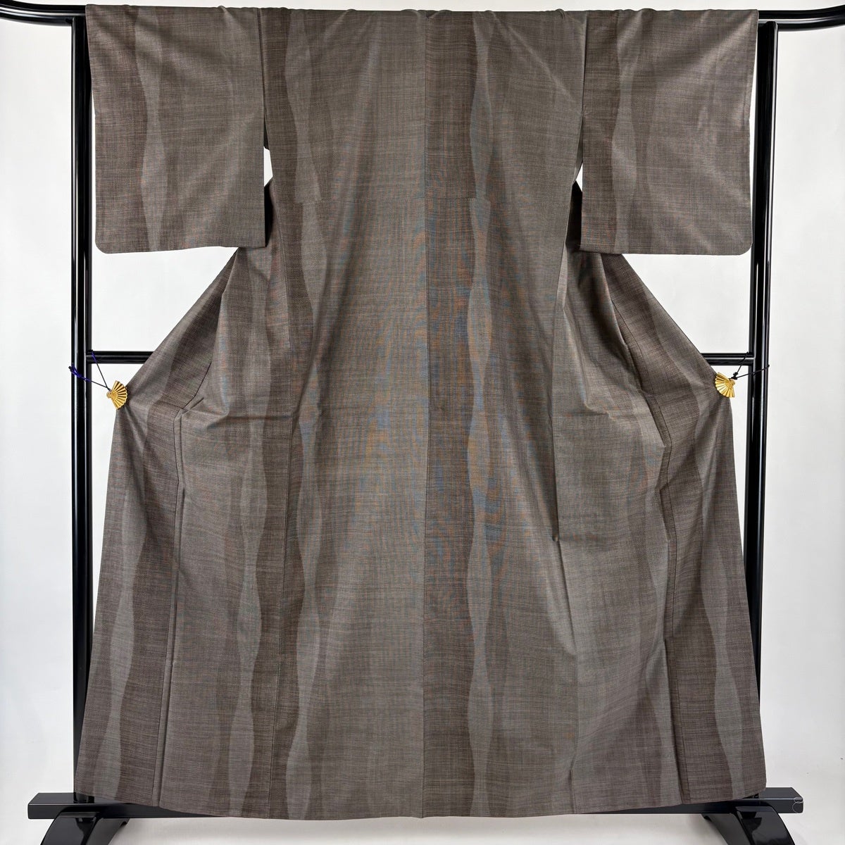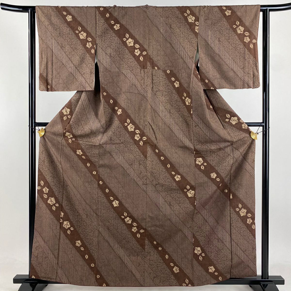 【美品】 大島紬 身丈160.5cm 裄丈64cm M 袷 純泥染 証紙あり よろけ縞 焦茶色 正絹 秀品