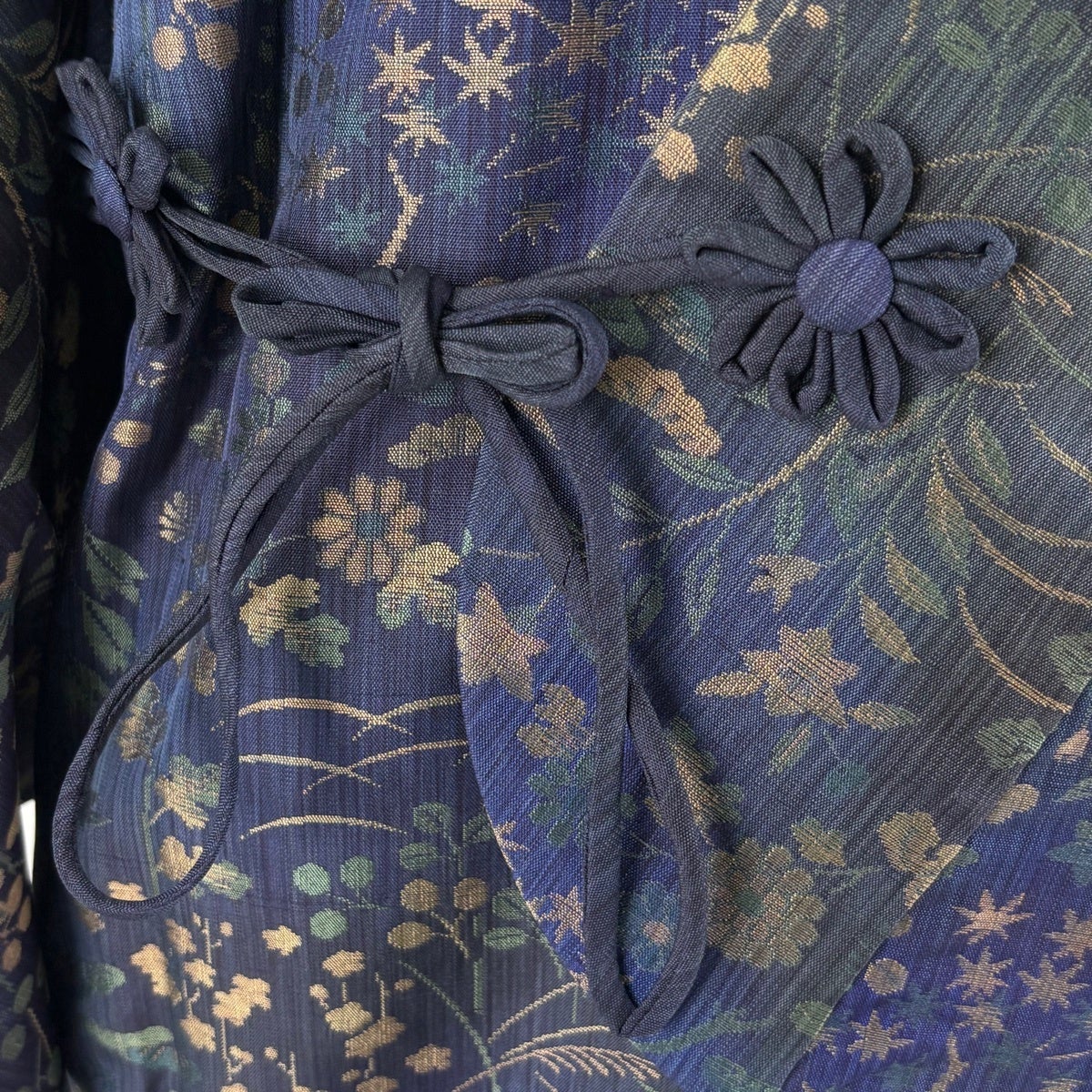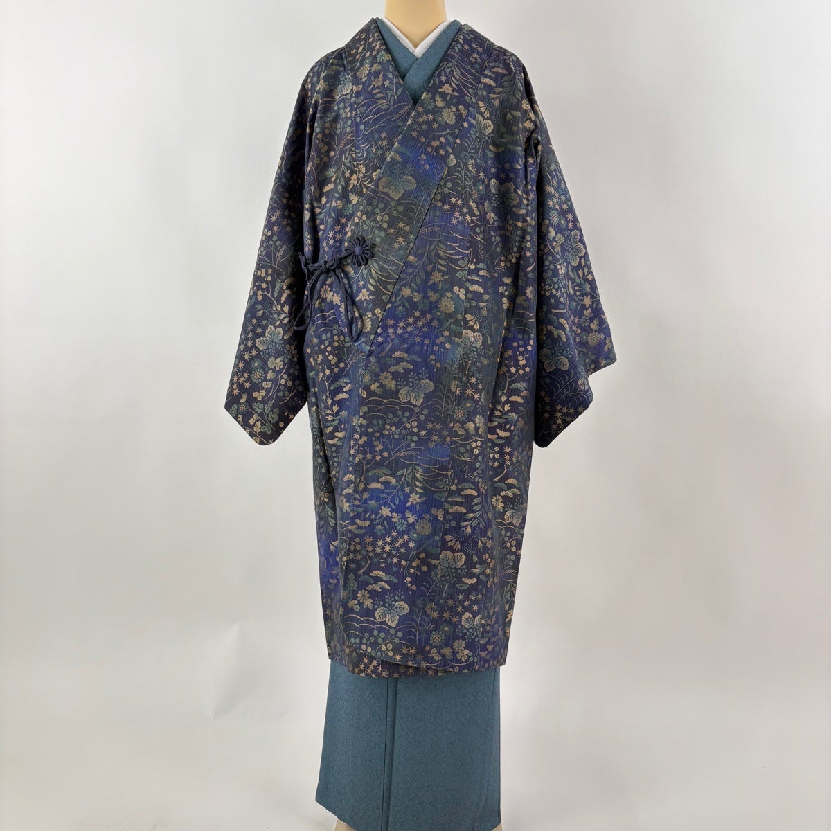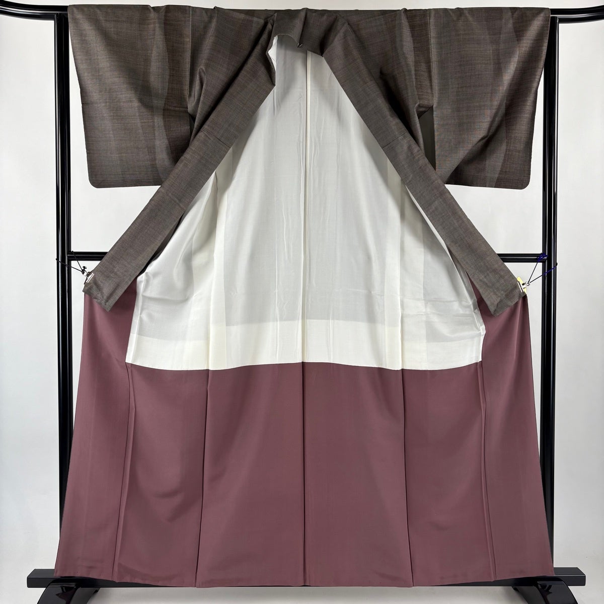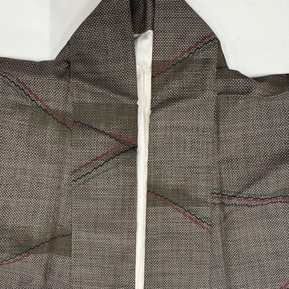 【美品】 道中着 身丈130cm 裄丈64cm M 和装コート 着物衿 紬地 燕 十字絣 茶紫 正絹 秀品
