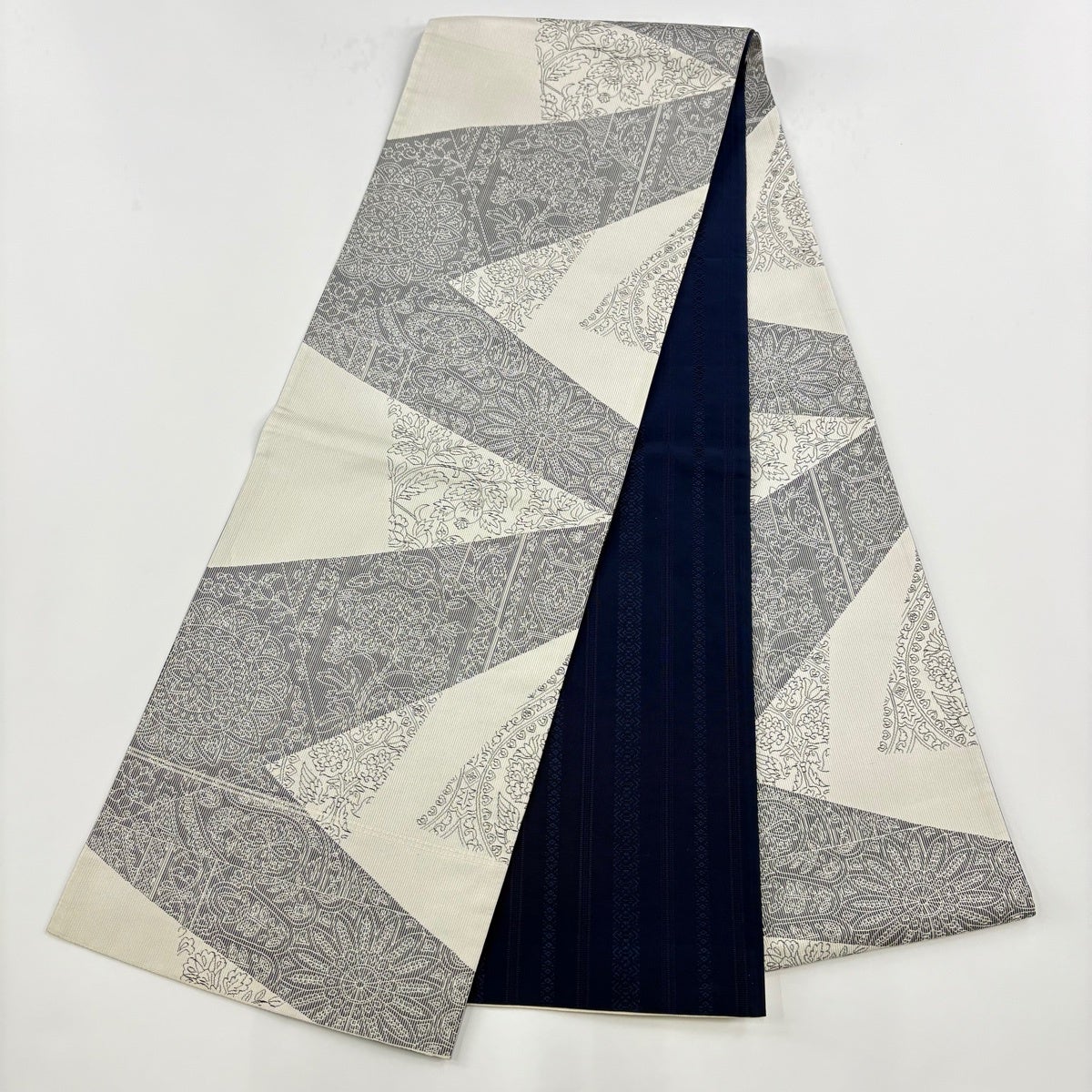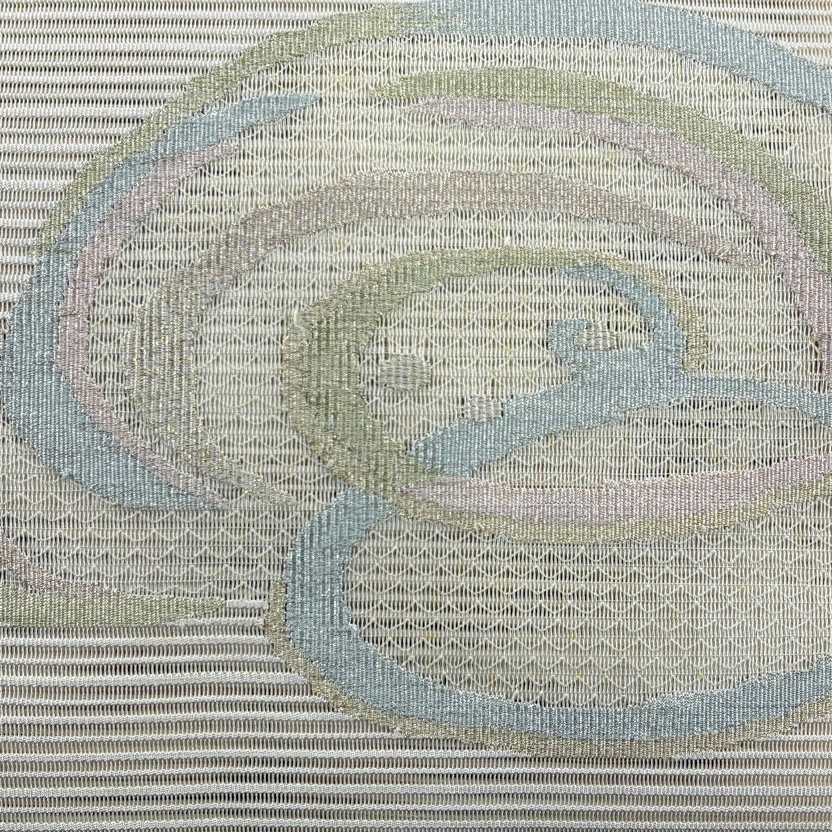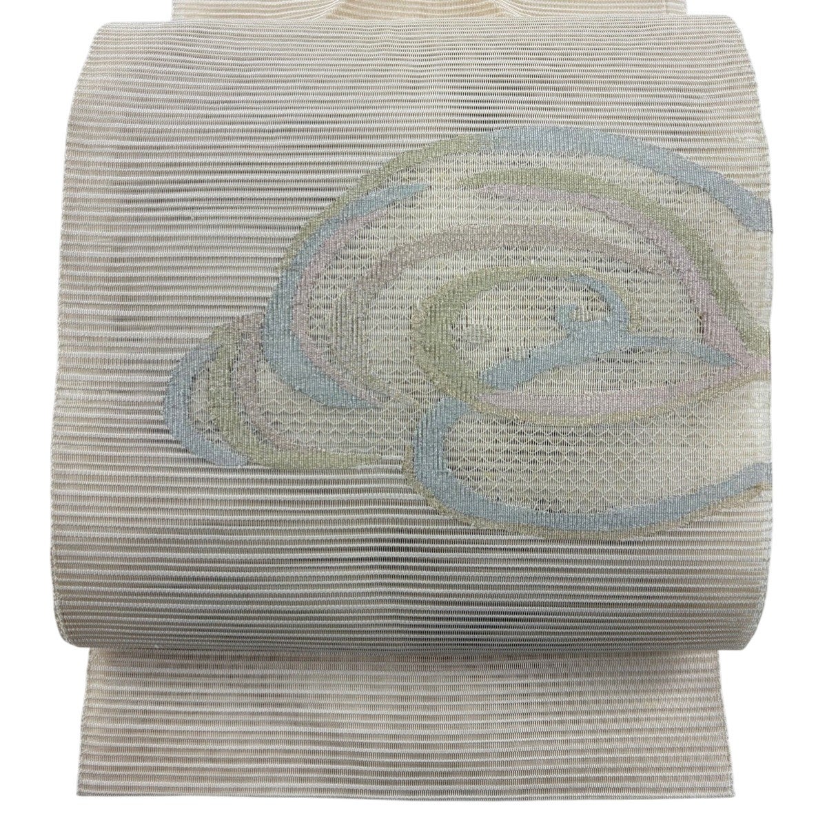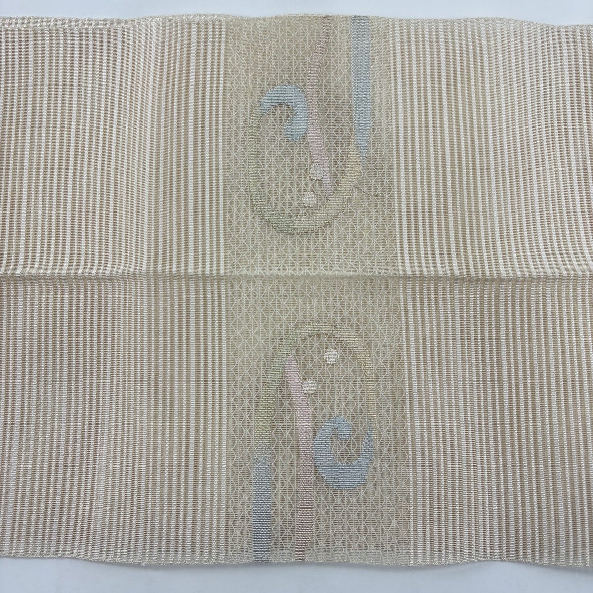 名古屋帯 秀品 八寸名古屋帯 松葉仕立て 夏帯 絽 トンネル仕立て やまと 幾何学模様 金銀糸 ベージュ 正絹