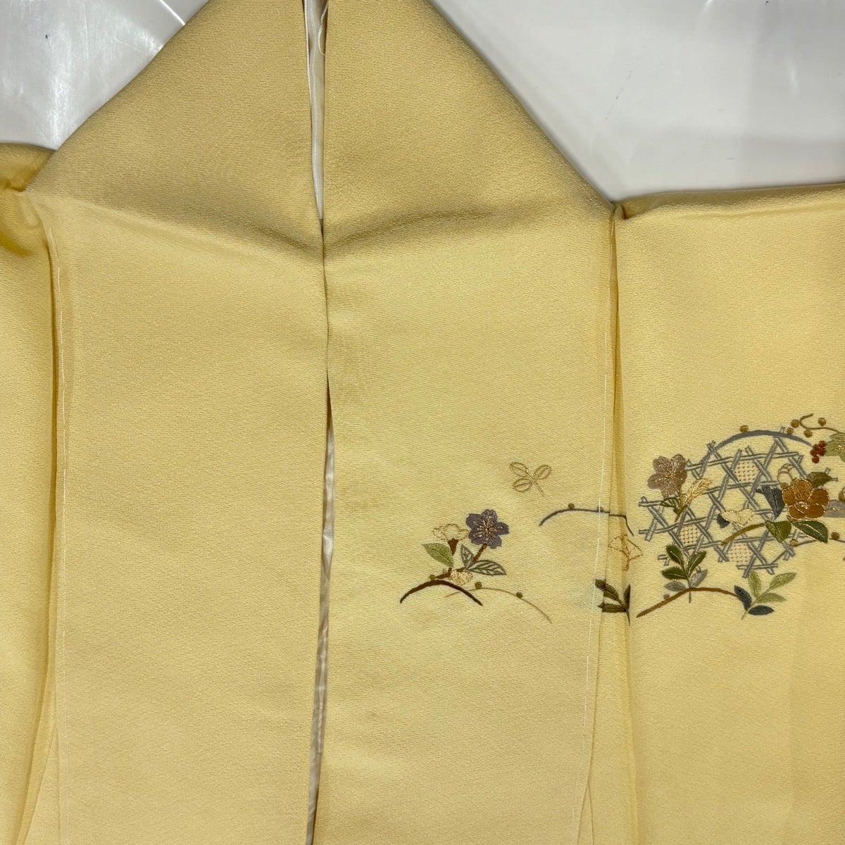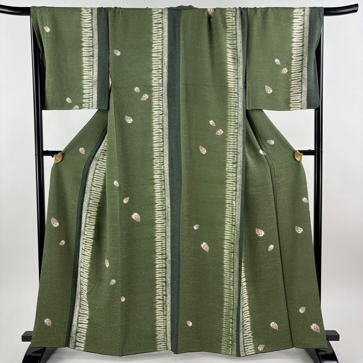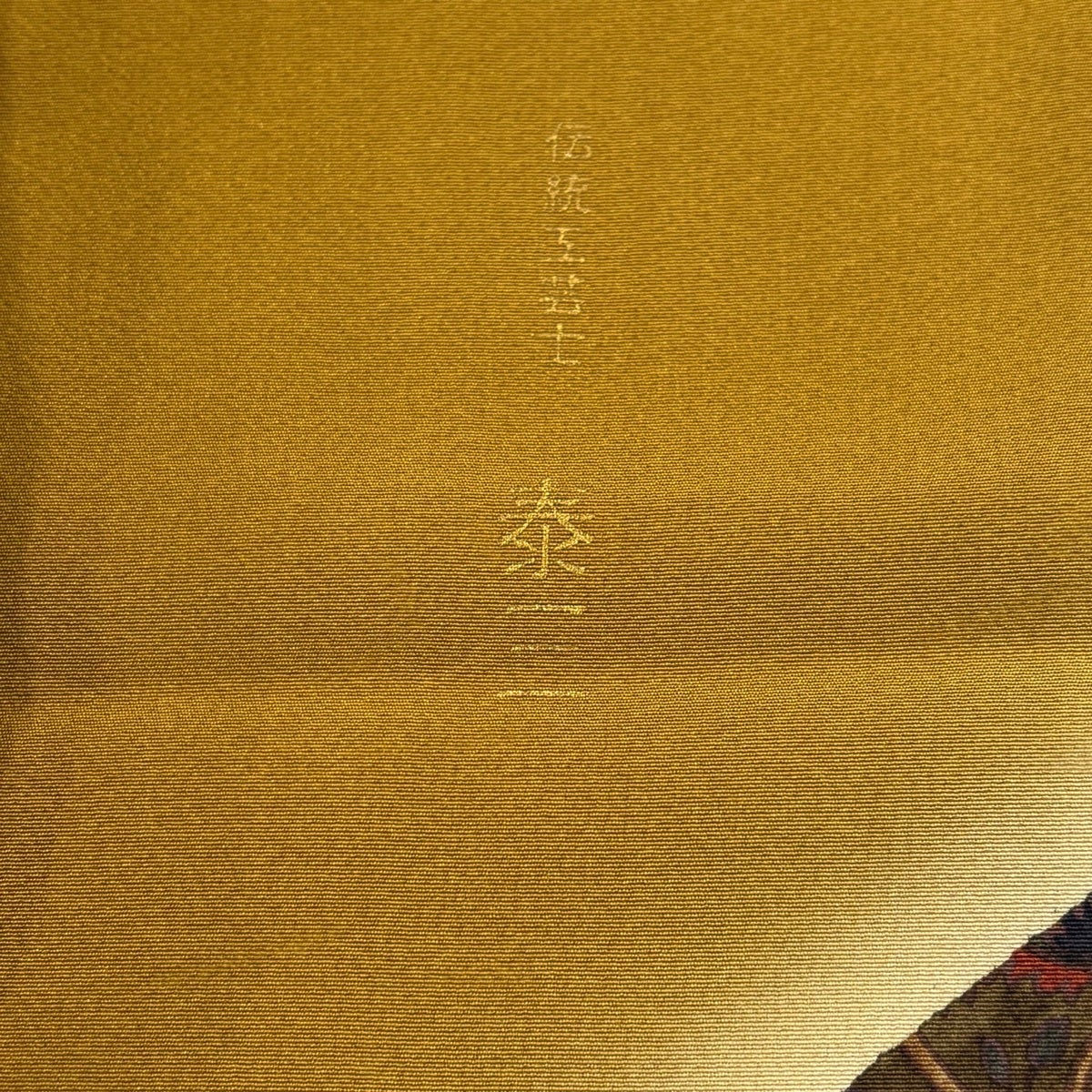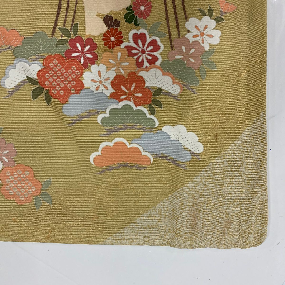 色留袖 身丈164.5cm 裄丈66cm M 袷 落款あり 華文 菱 金糸 金彩 茶緑色 正絹 秀品 三つ紋