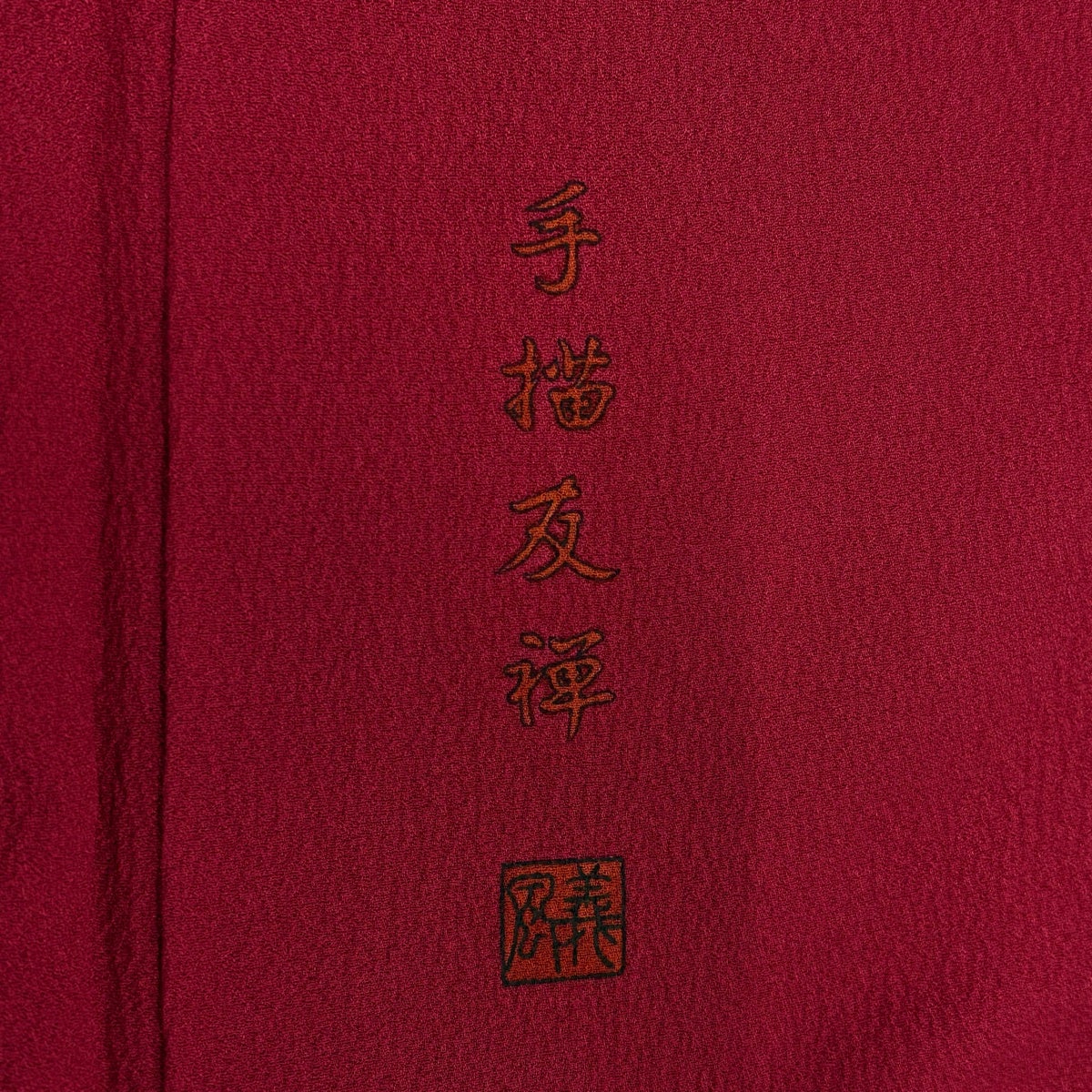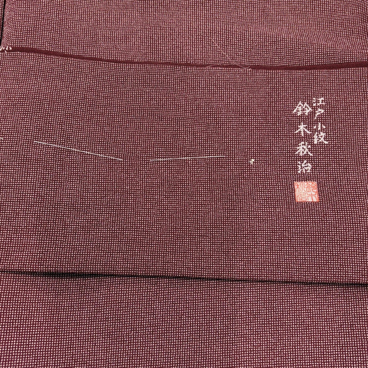 江戸小紋 身丈163.5cm 裄丈65cm M 袷 鈴木秋治 落款あり 角通し えんじ色 正絹 秀品 一つ紋