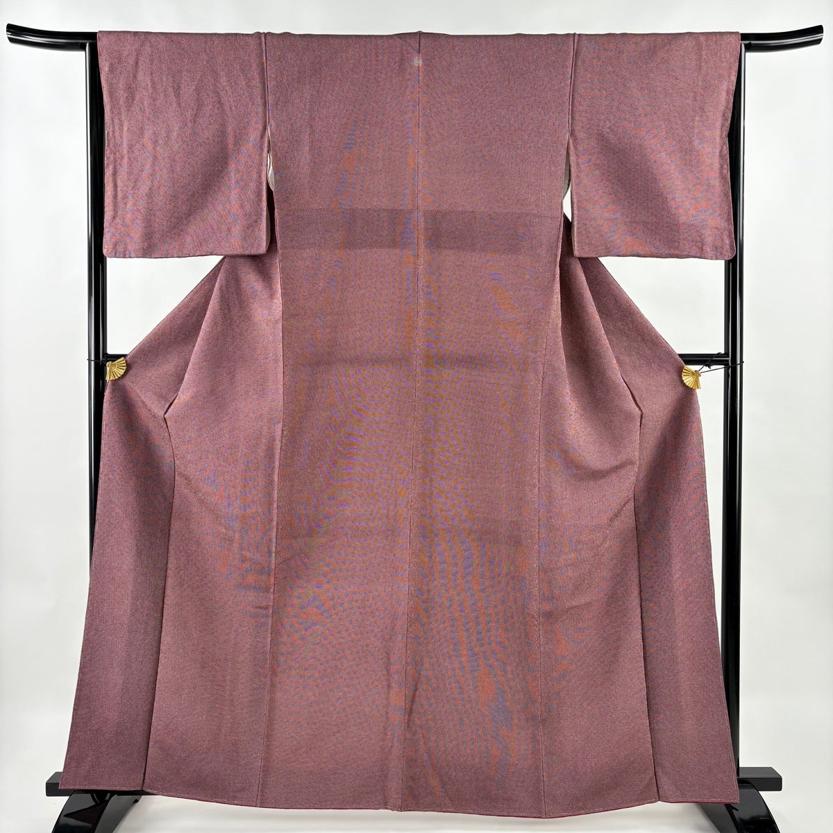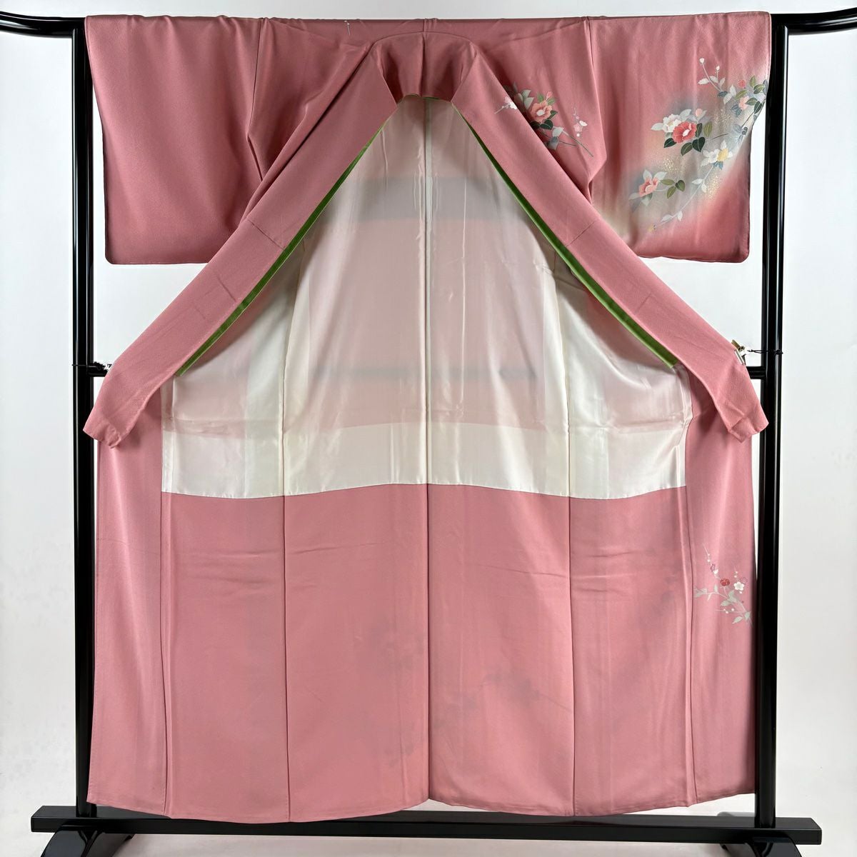色無地 身丈157.5cm 裄丈67.5cm L 袷 梶山伸監修 落款あり 地紋 濃ピンク 正絹 秀品 一つ紋