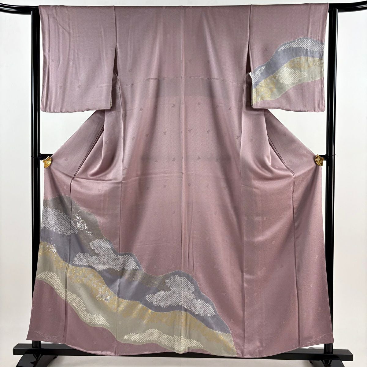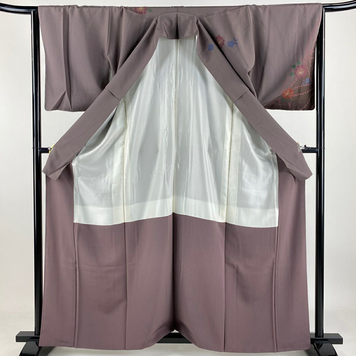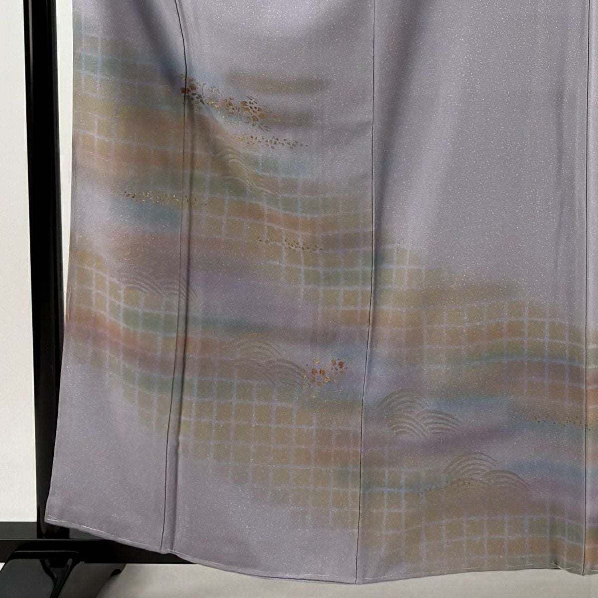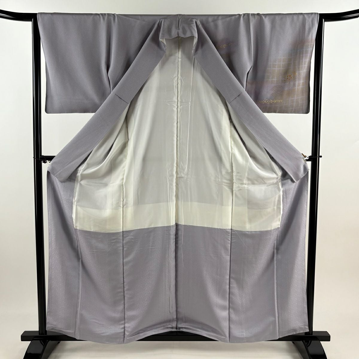 付下げ 身丈160cm 裄丈64.5cm M 袷 紬地 草花 幾何学模様 絞り 染め分け 灰紫 正絹 秀品