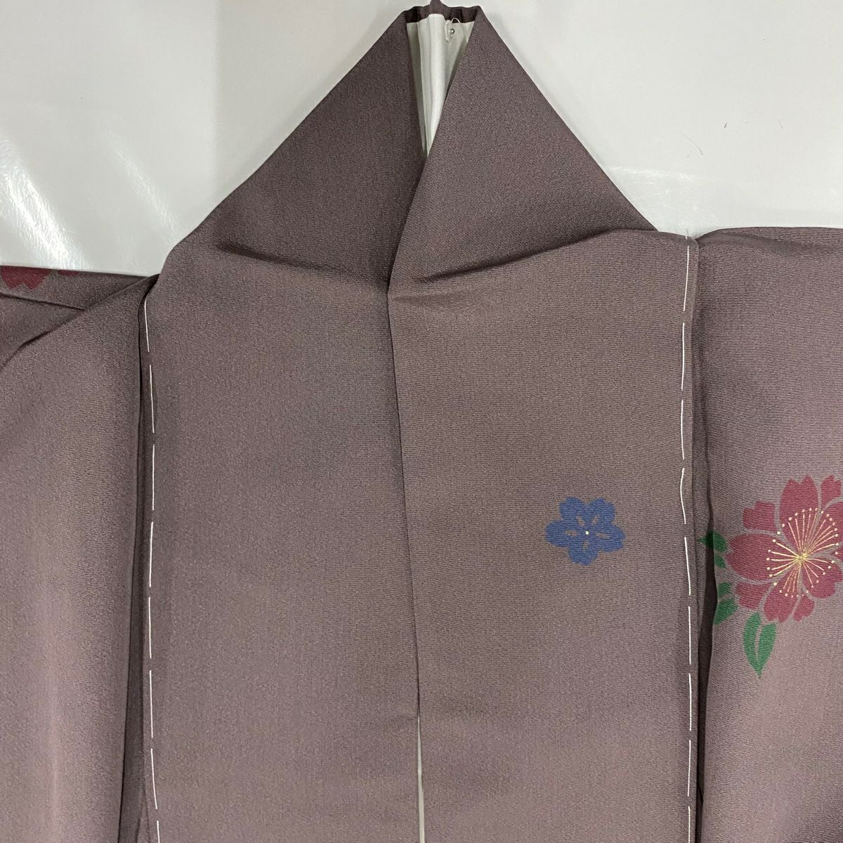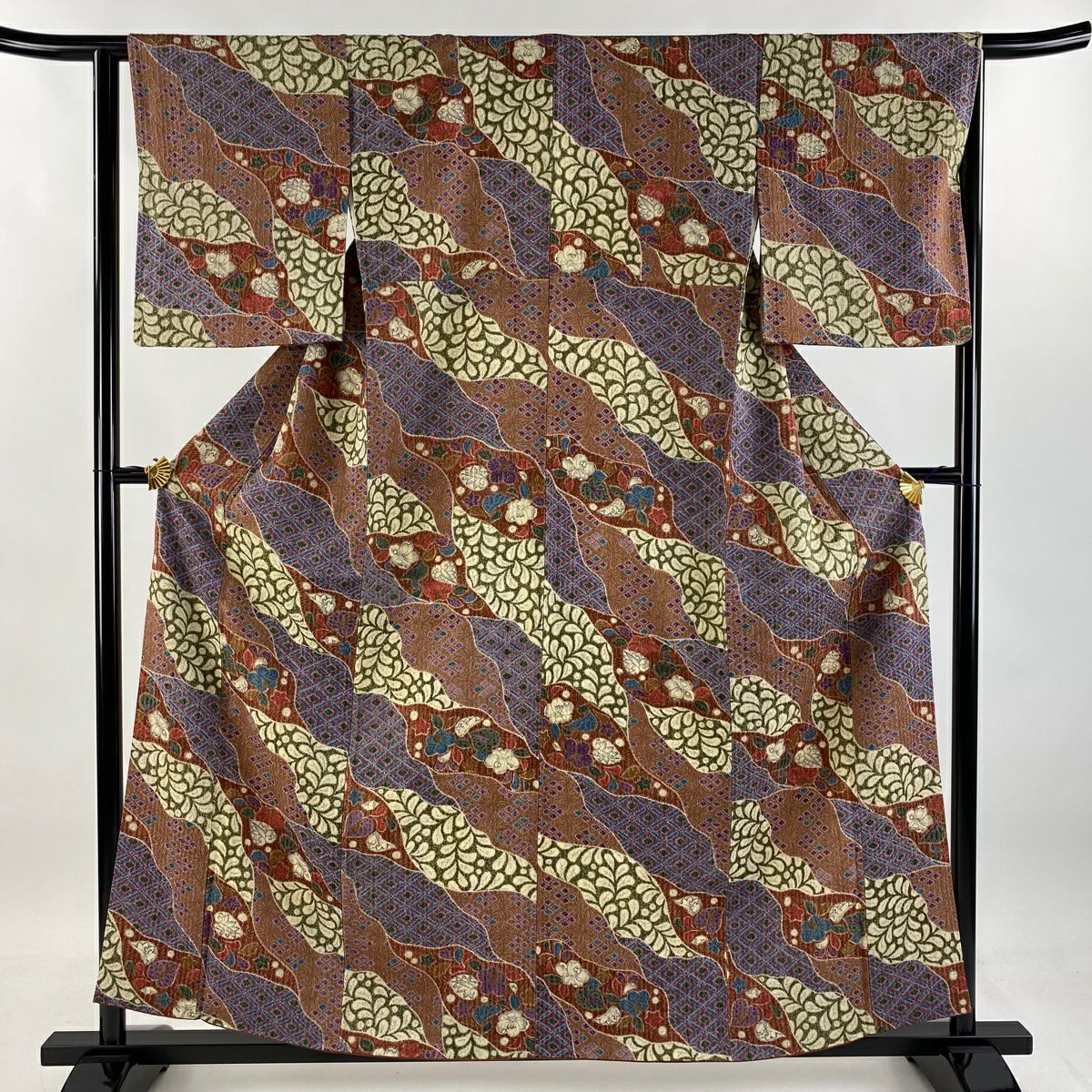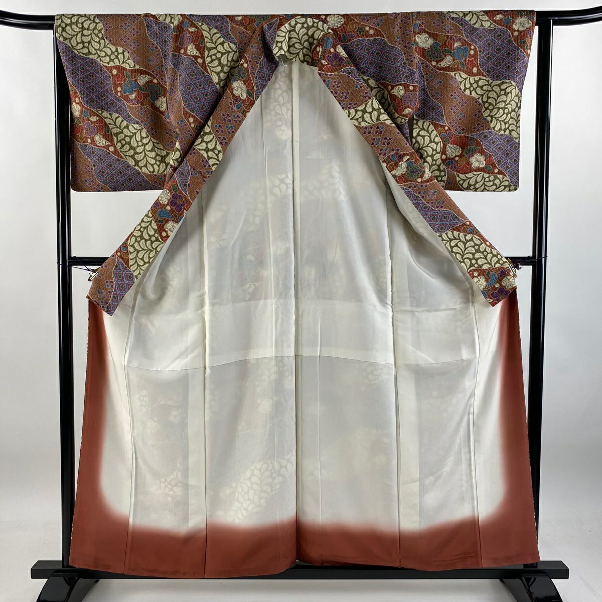 付下げ 身丈160cm 裄丈64.5cm M 袷 紬地 草花 幾何学模様 絞り 染め分け 灰紫 正絹 秀品