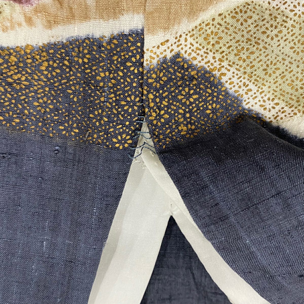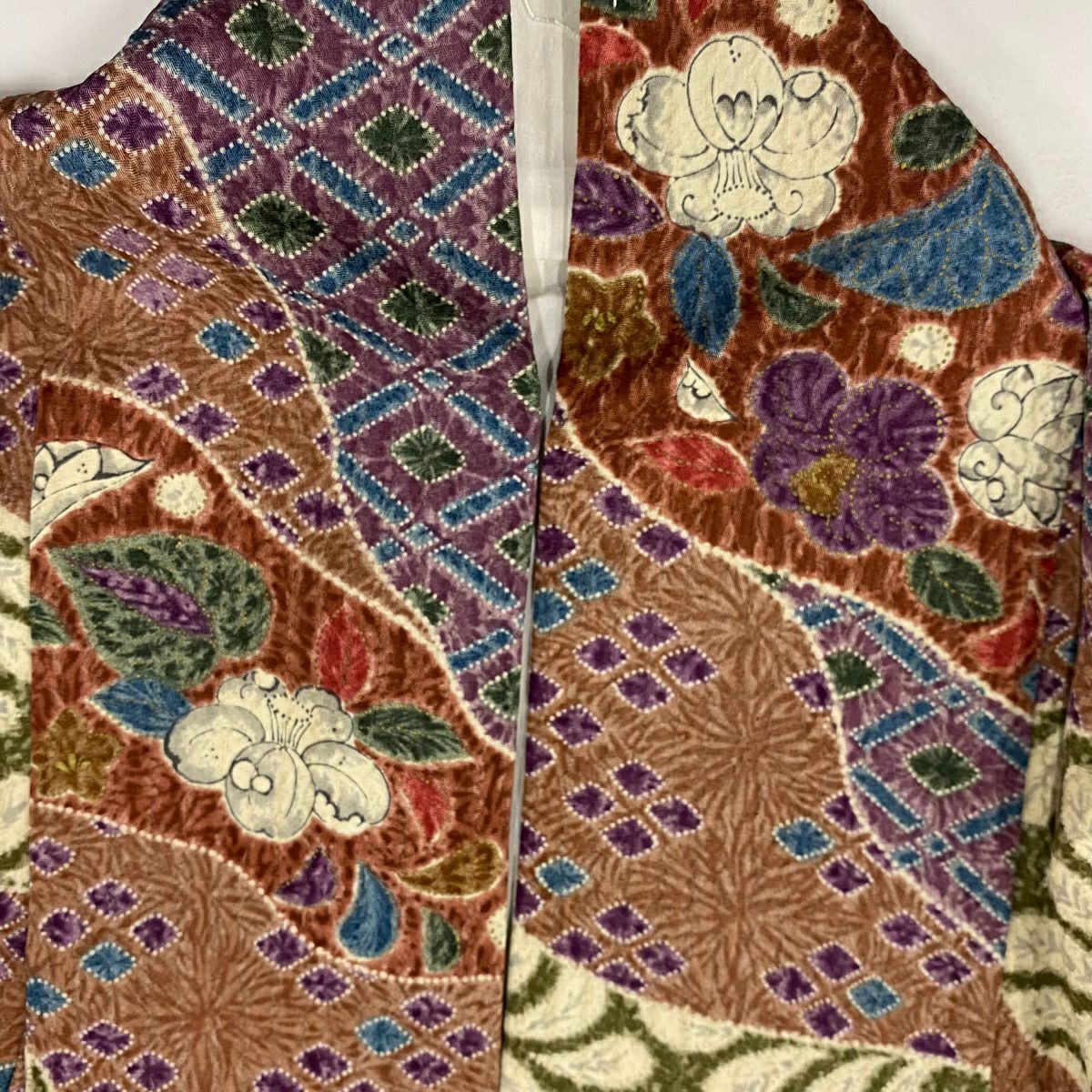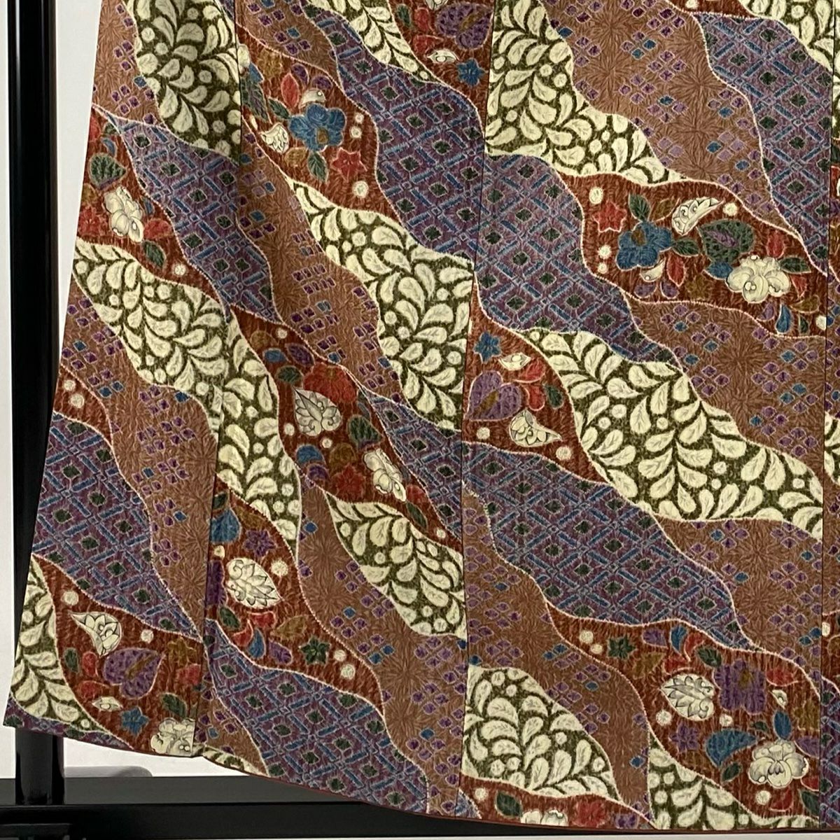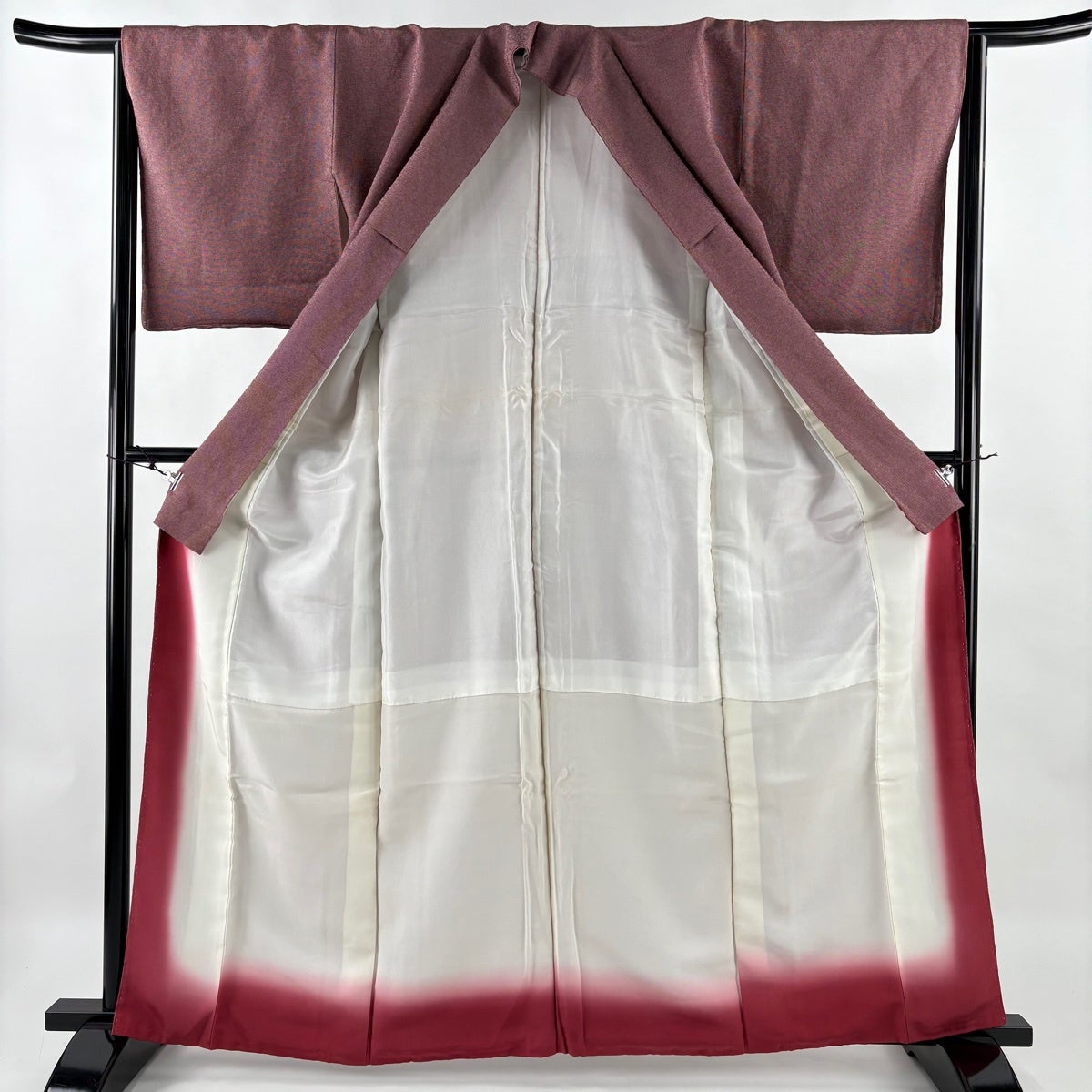 付下げ 身丈160cm 裄丈64.5cm M 袷 紬地 草花 幾何学模様 絞り 染め分け 灰紫 正絹 秀品