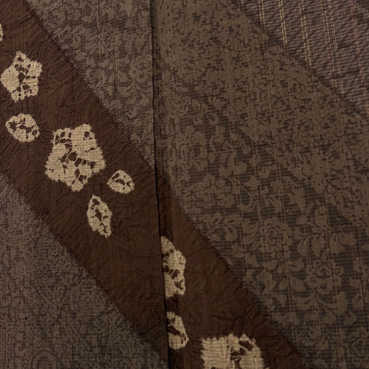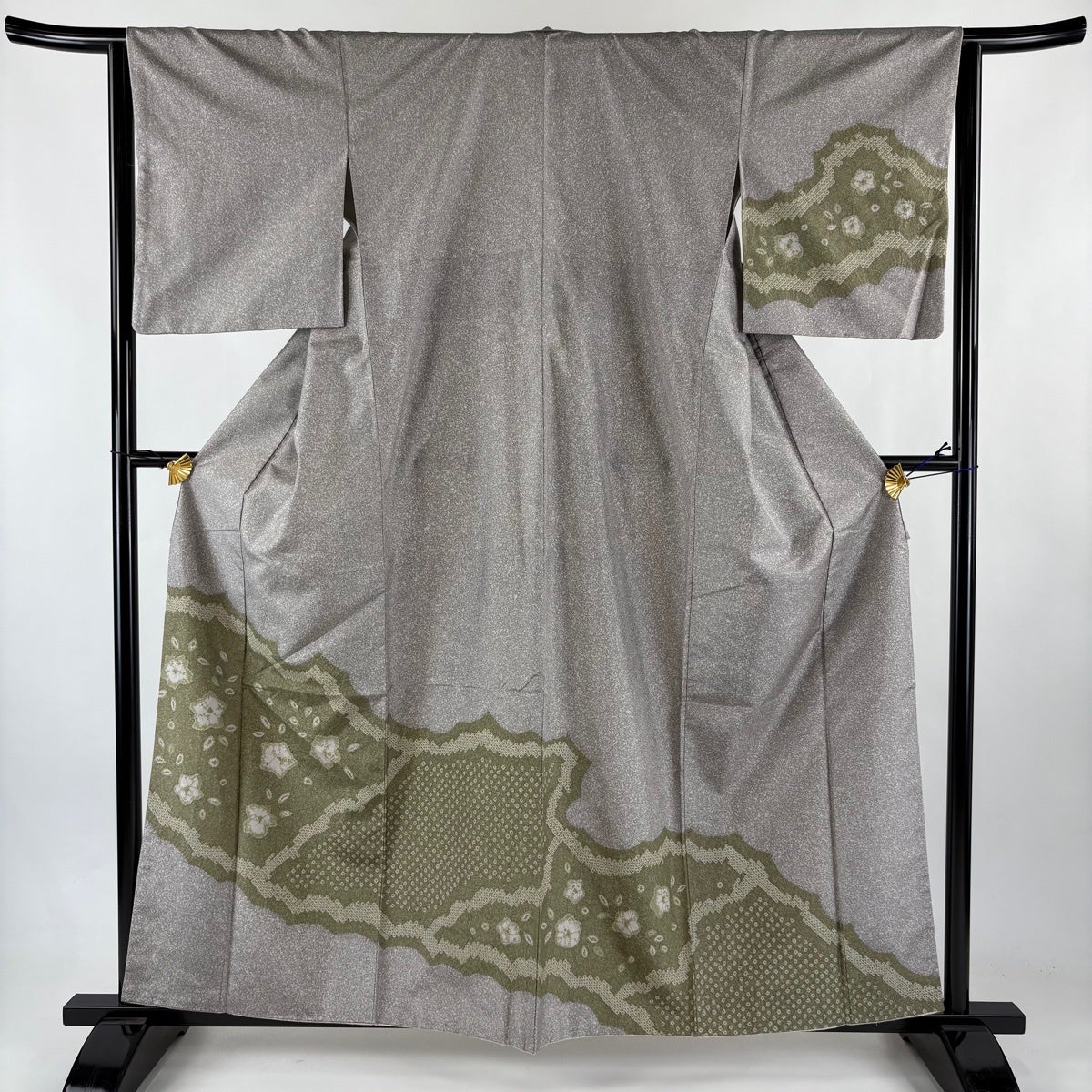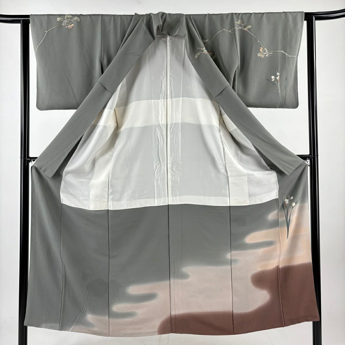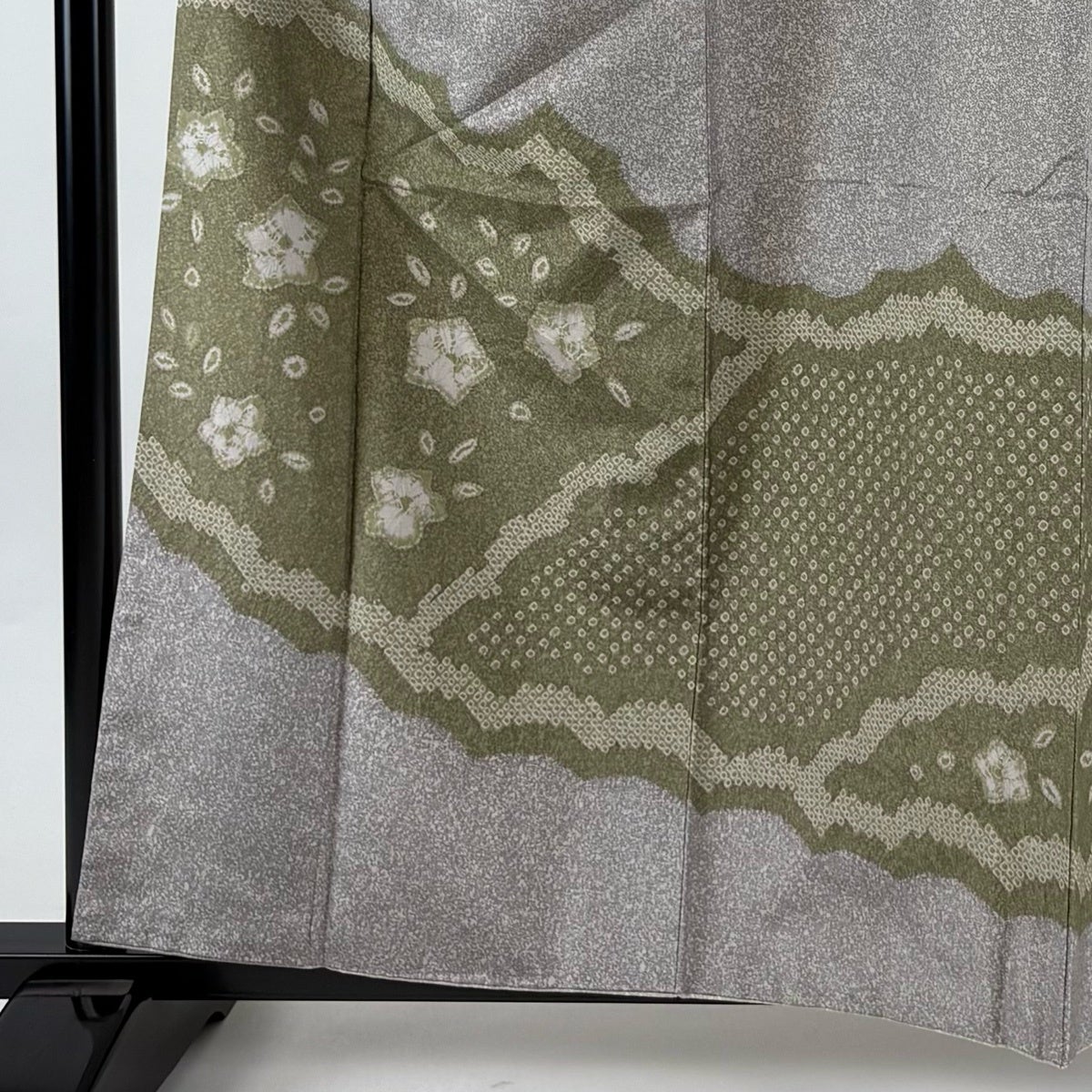 付下げ 身丈163.5cm 裄丈68cm L 袷 辻が花柄 道長取 絞り ぼかし 灰色 正絹 秀品 一つ紋
