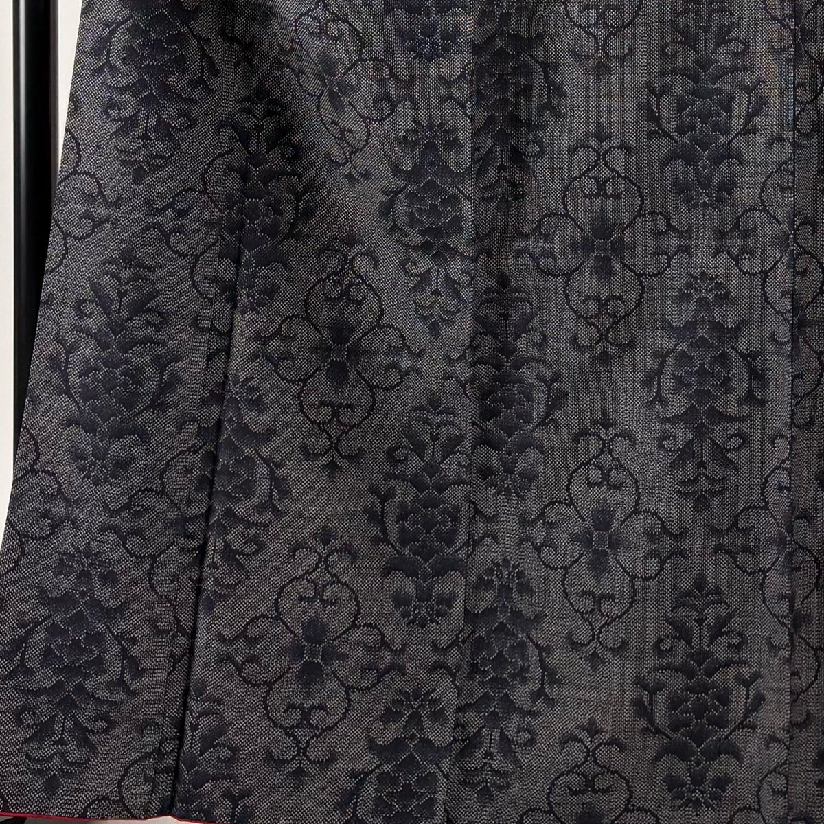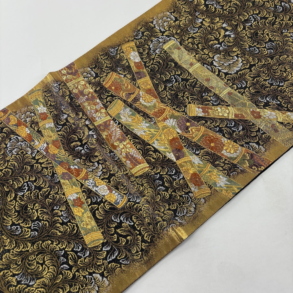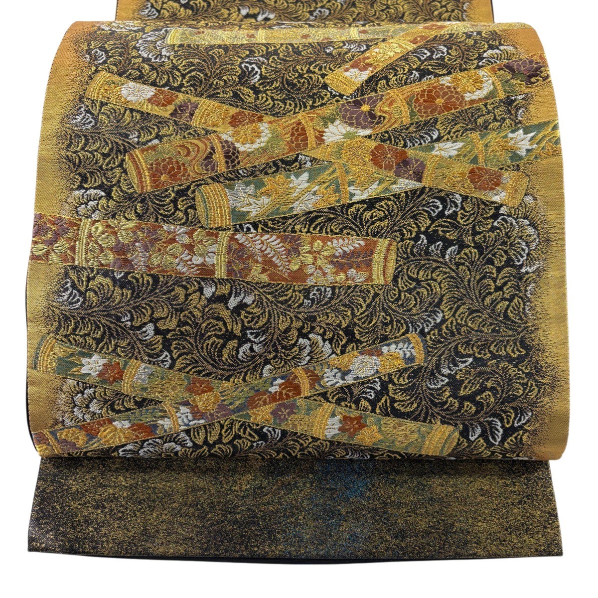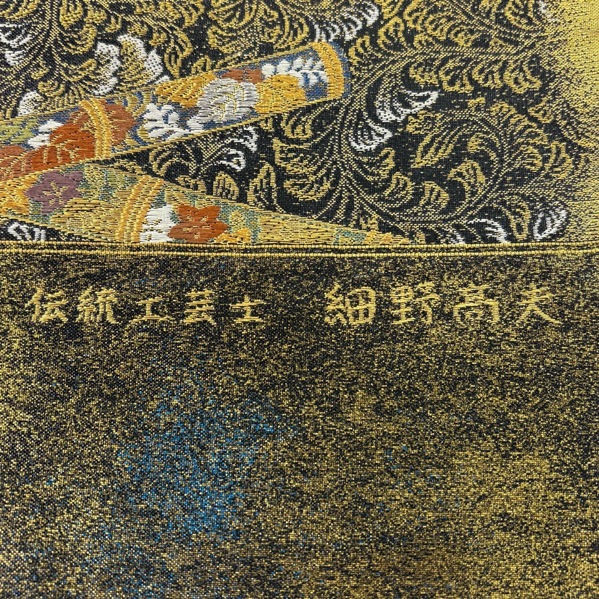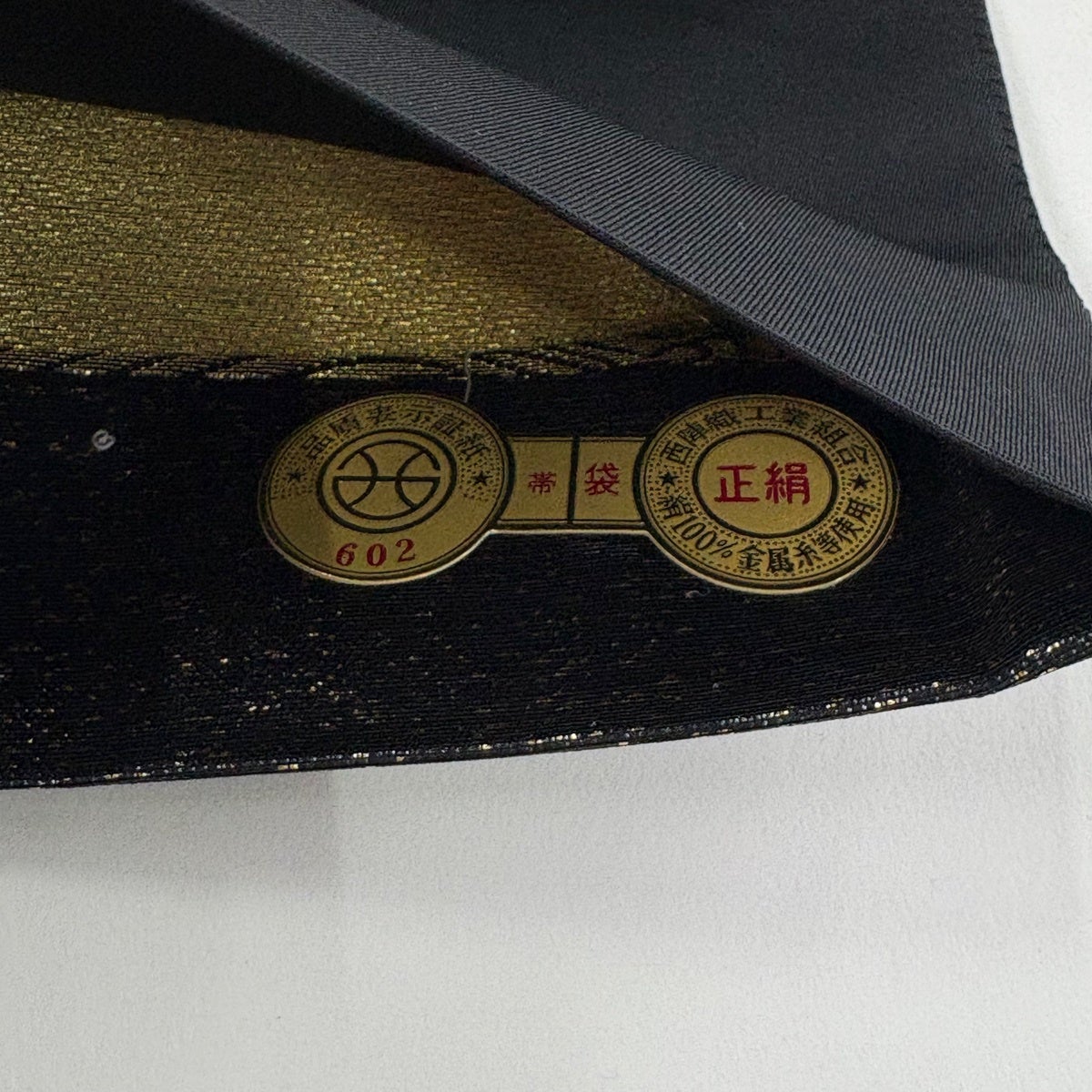 【美品】 紬 身丈165.5cm 裄丈65cm M 袷 袋名古屋帯セット 証紙あり 花唐草 墨色 正絹 秀品