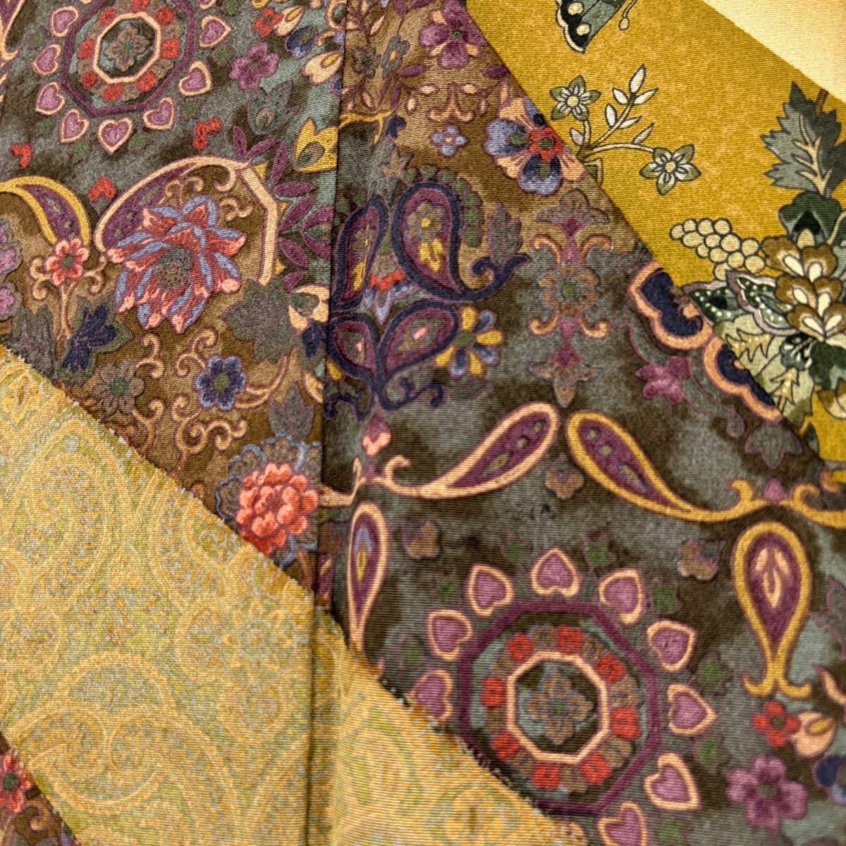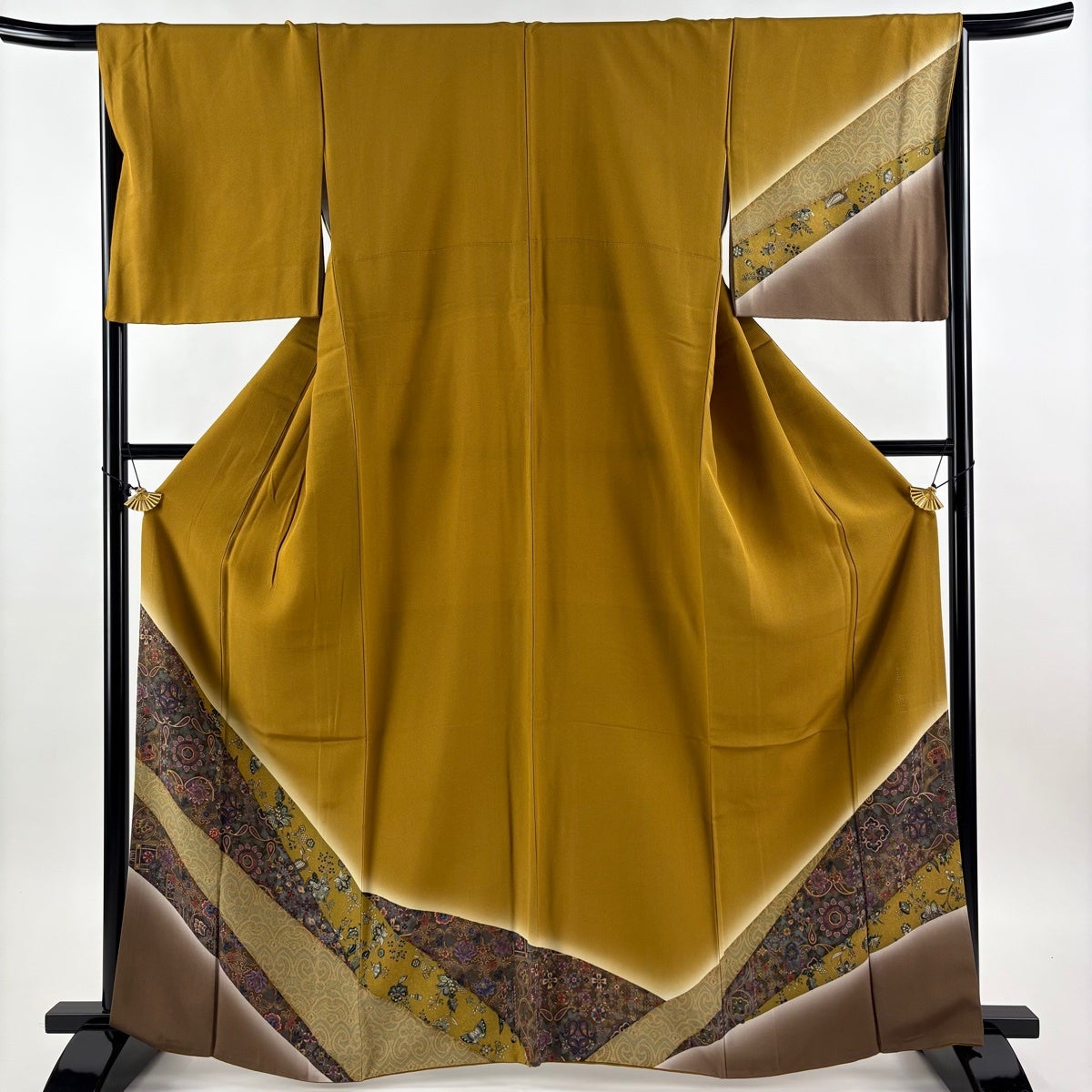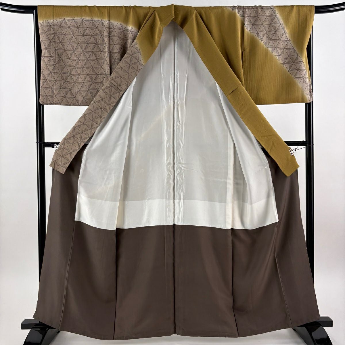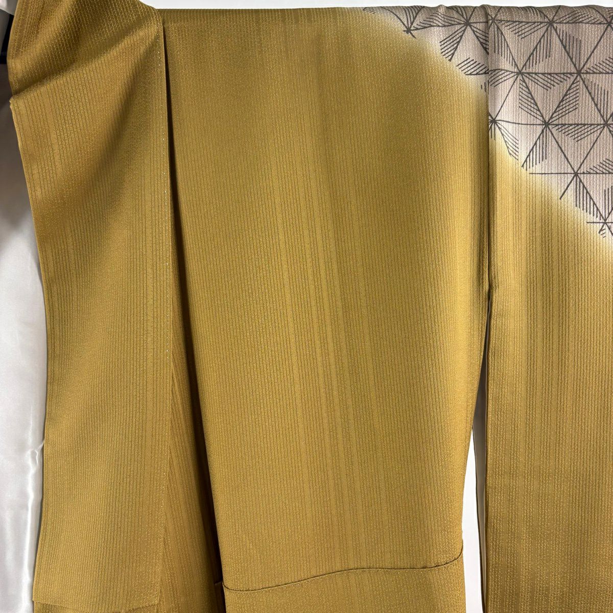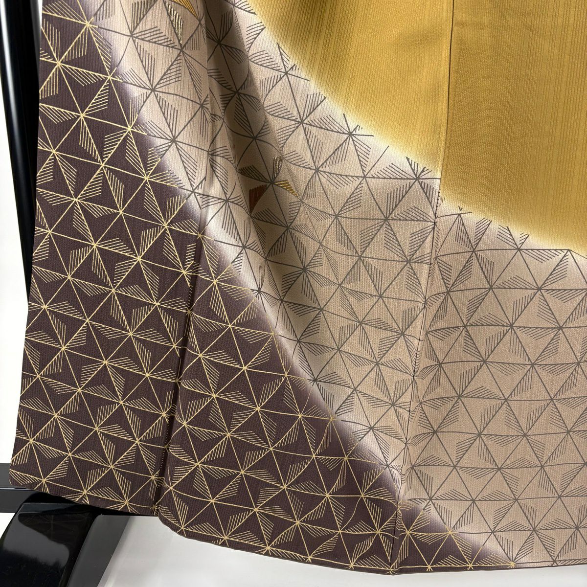 訪問着 身丈163cm 裄丈67cm M 袷 袋帯セット 鱗 幾何学模様 刺繍 金糸 山吹茶色 正絹 秀品