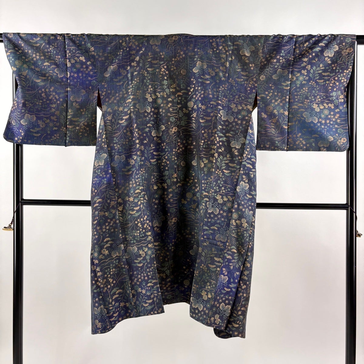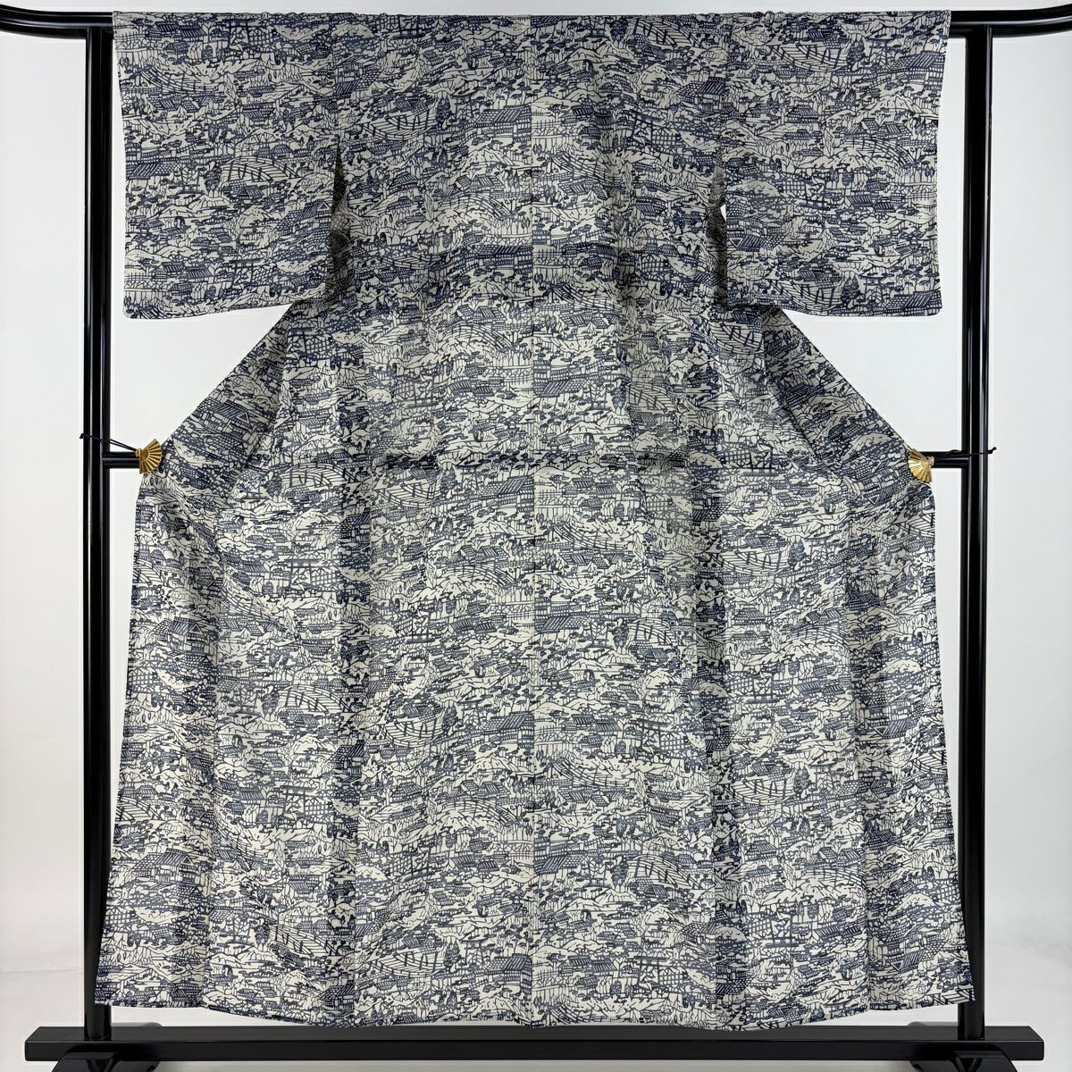 付下げ 身丈160.5cm 裄丈68cm L 薄物 縦絽 ますいわや 観世水 水玉 銀糸 紺色 正絹 秀品