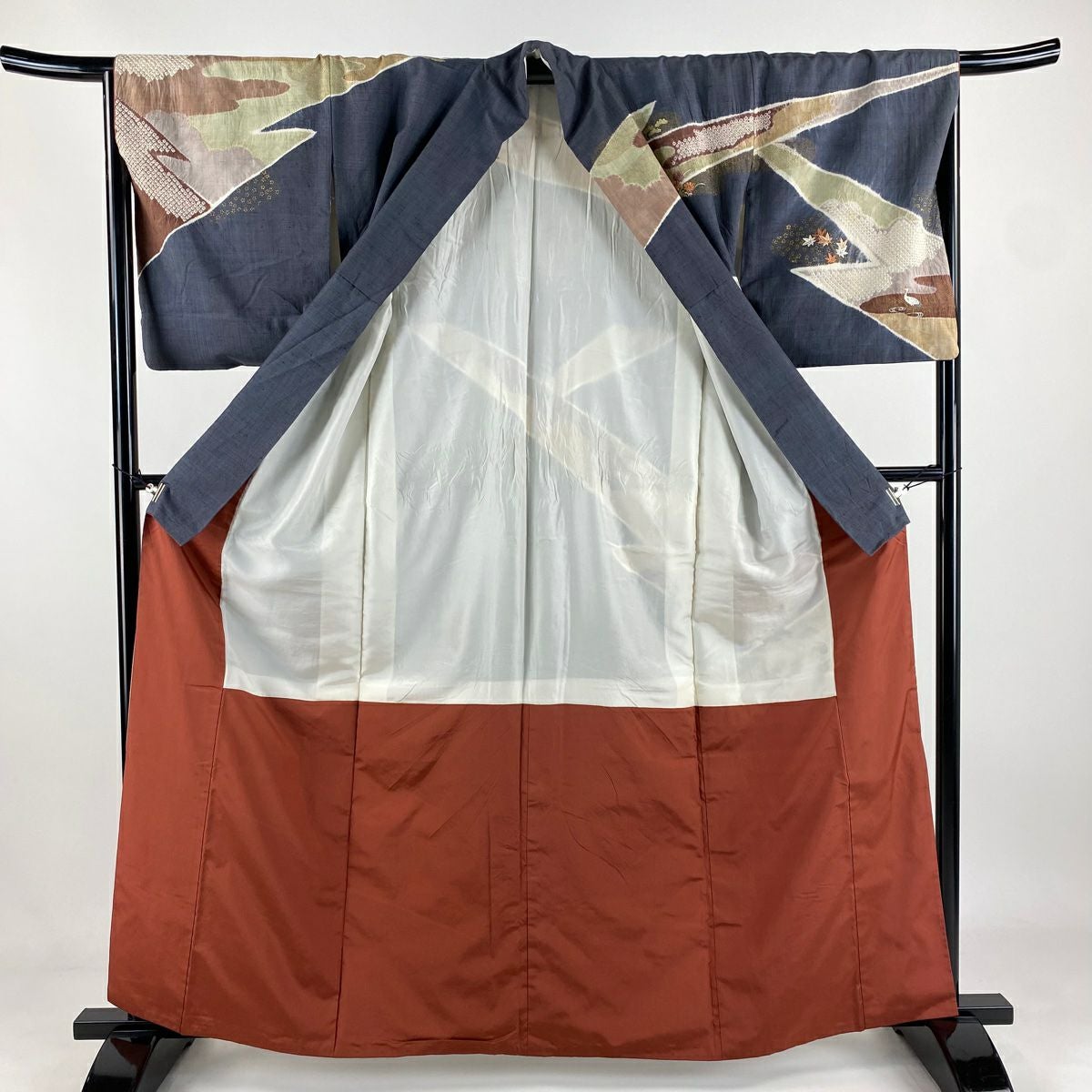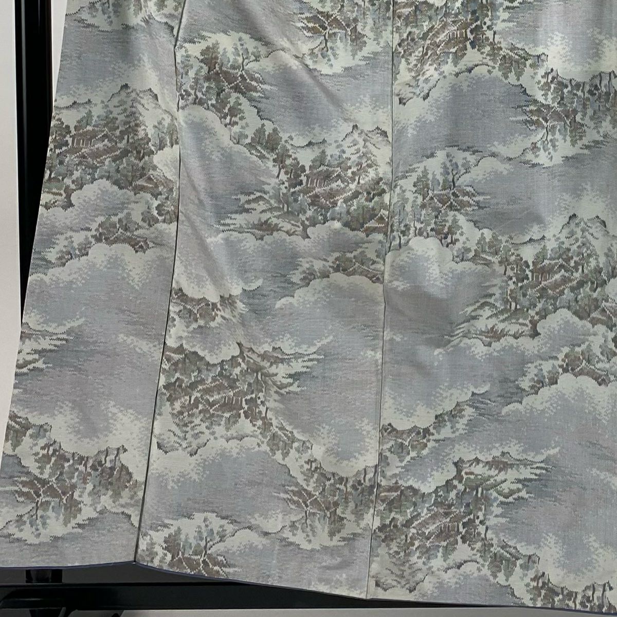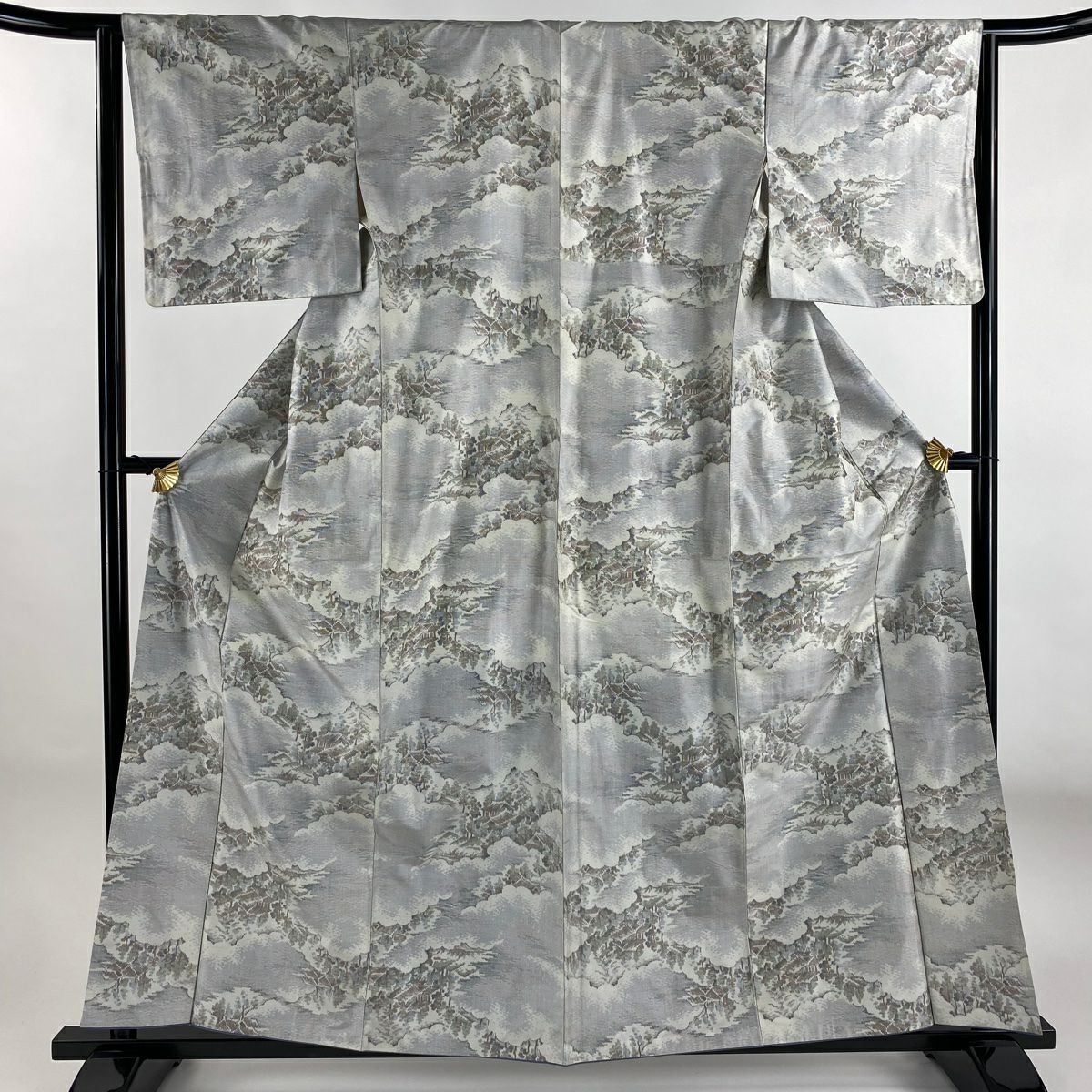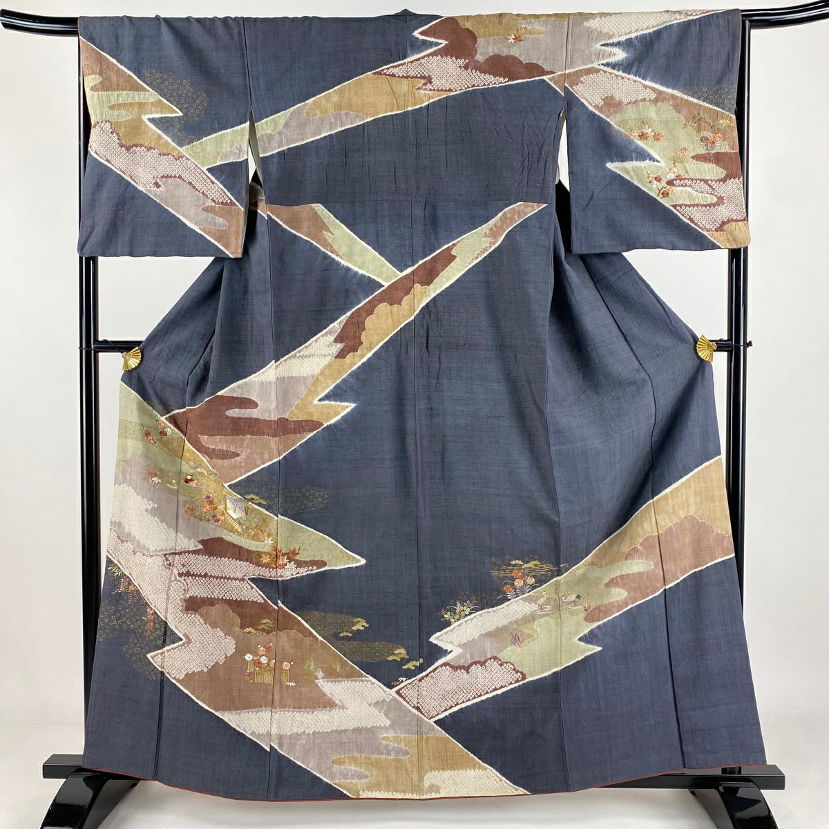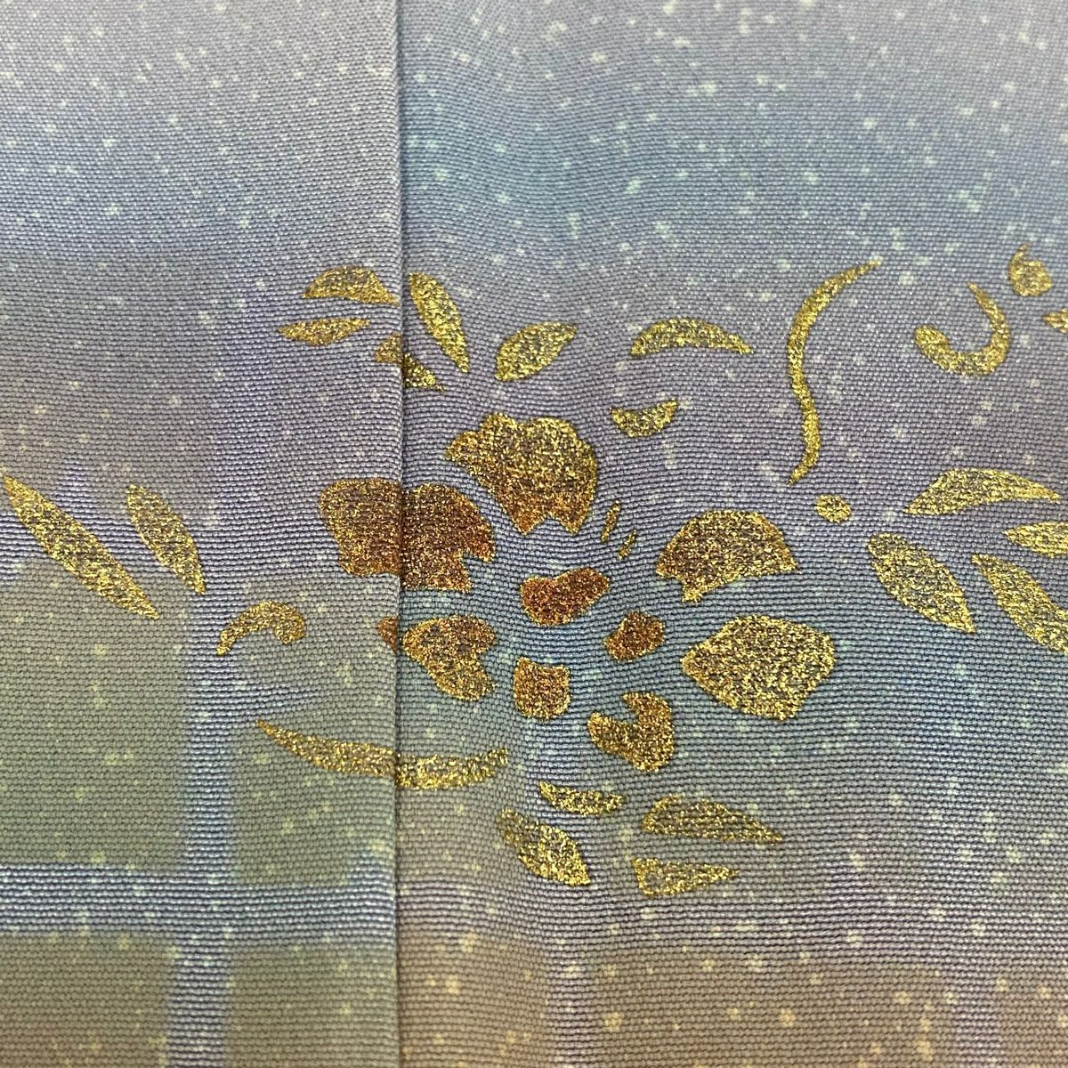 付下げ 身丈158cm 裄丈65.5cm M 袷 袋帯セット 幾何学 染め分け 金銀彩 青灰色 正絹 秀品