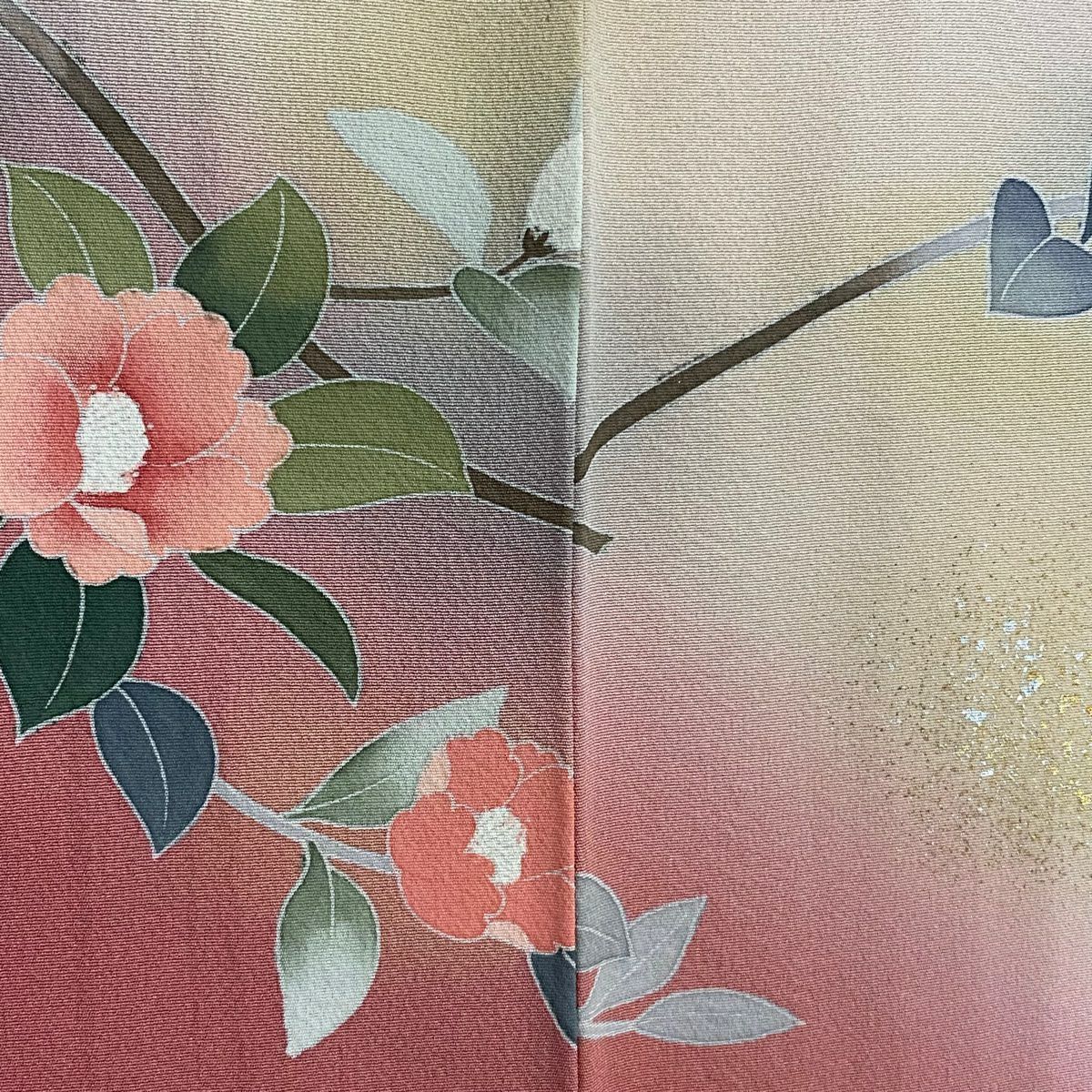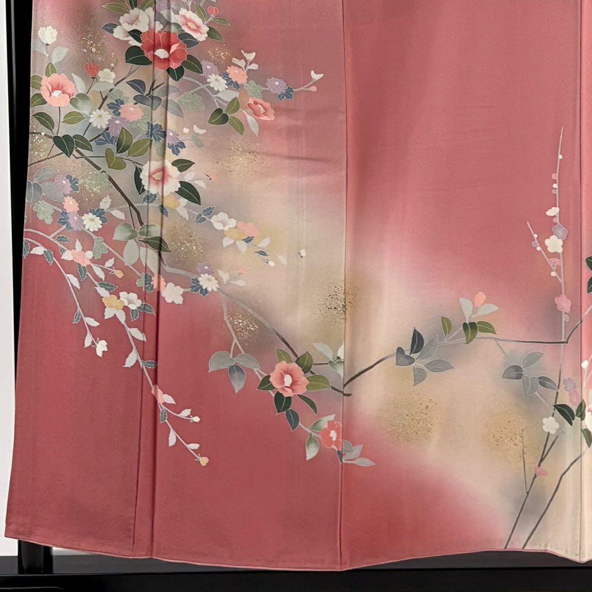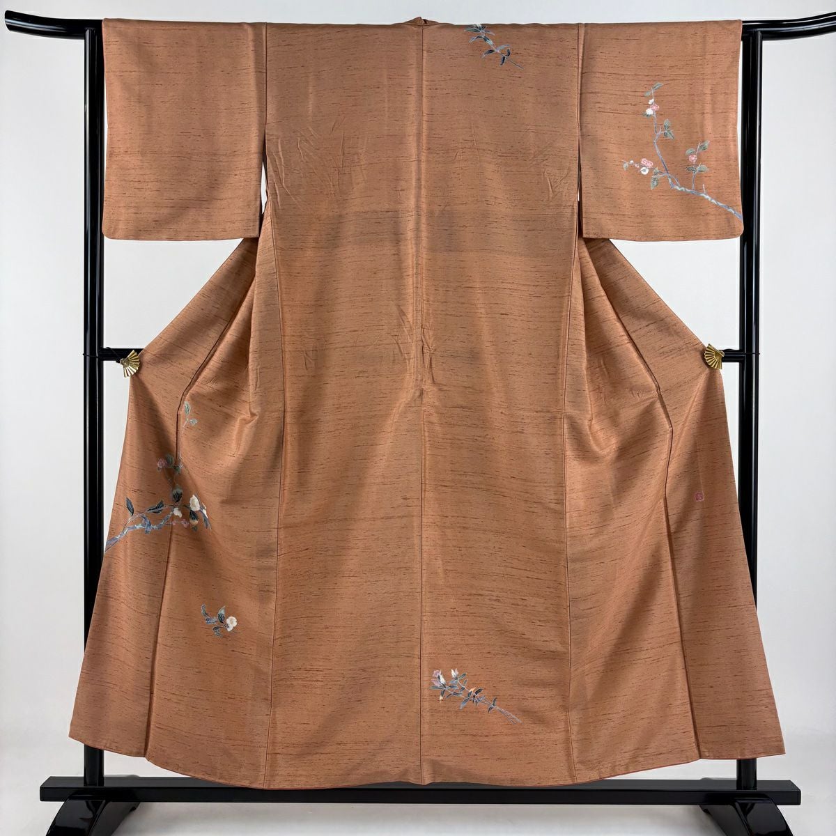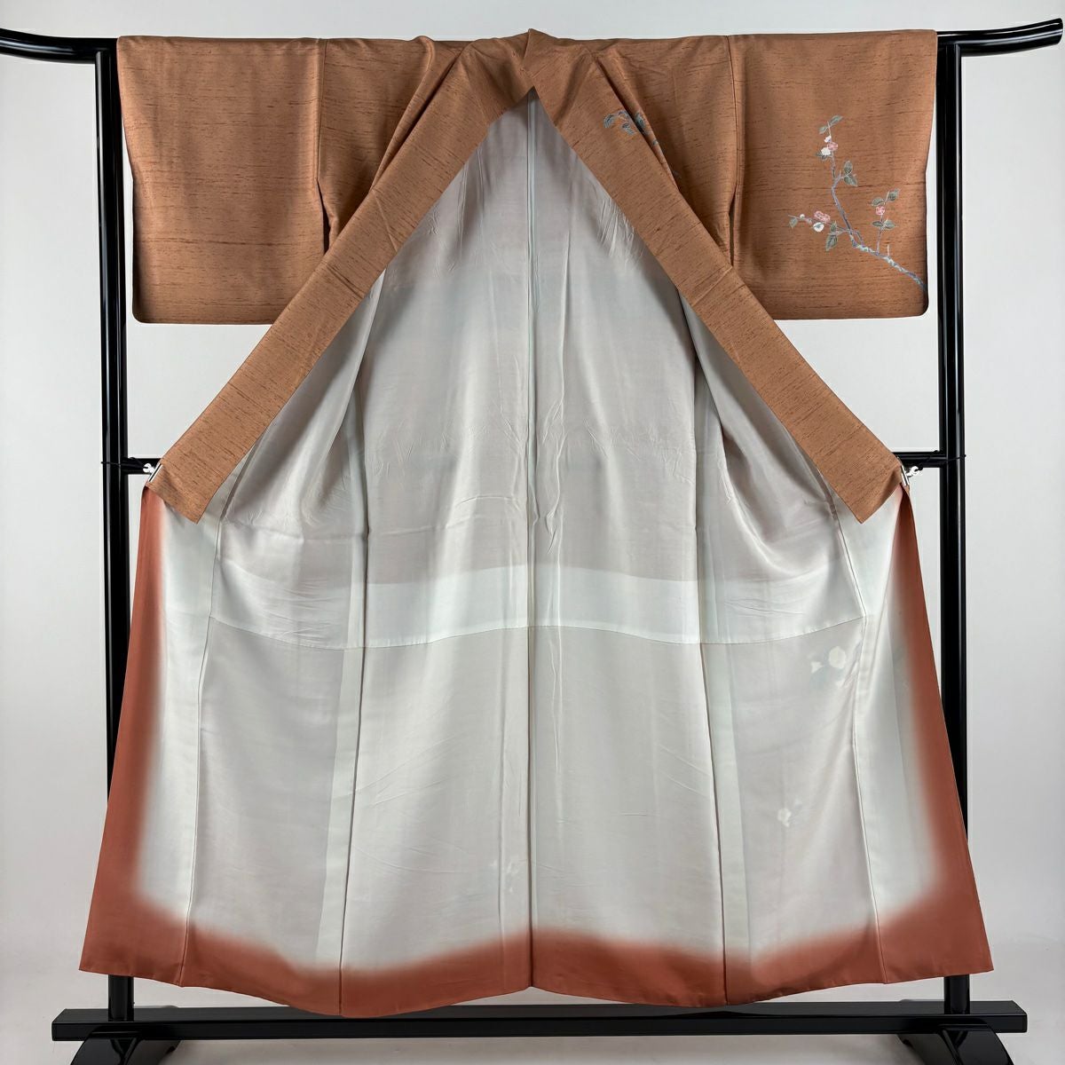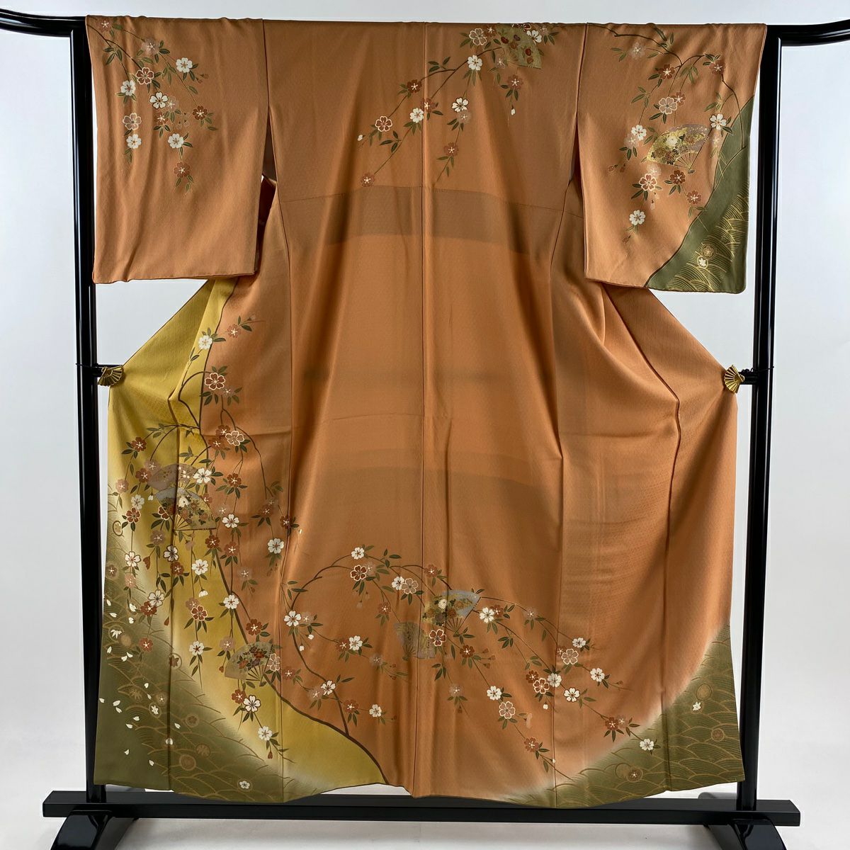 訪問着 身丈155.5cm 裄丈63cm S 袷 御所車 枝梅 刺繍 ぼかし サーモンピンク 正絹 秀品