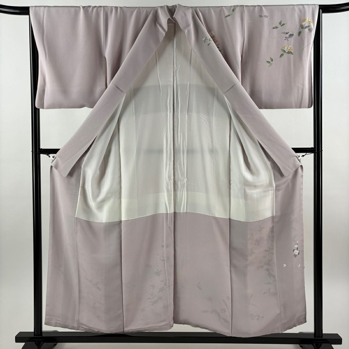 【美品】 訪問着 身丈155cm 裄丈66.5cm M 袷 落款あり 草花 葉と実 ぼかし 薄紫 正絹 秀品